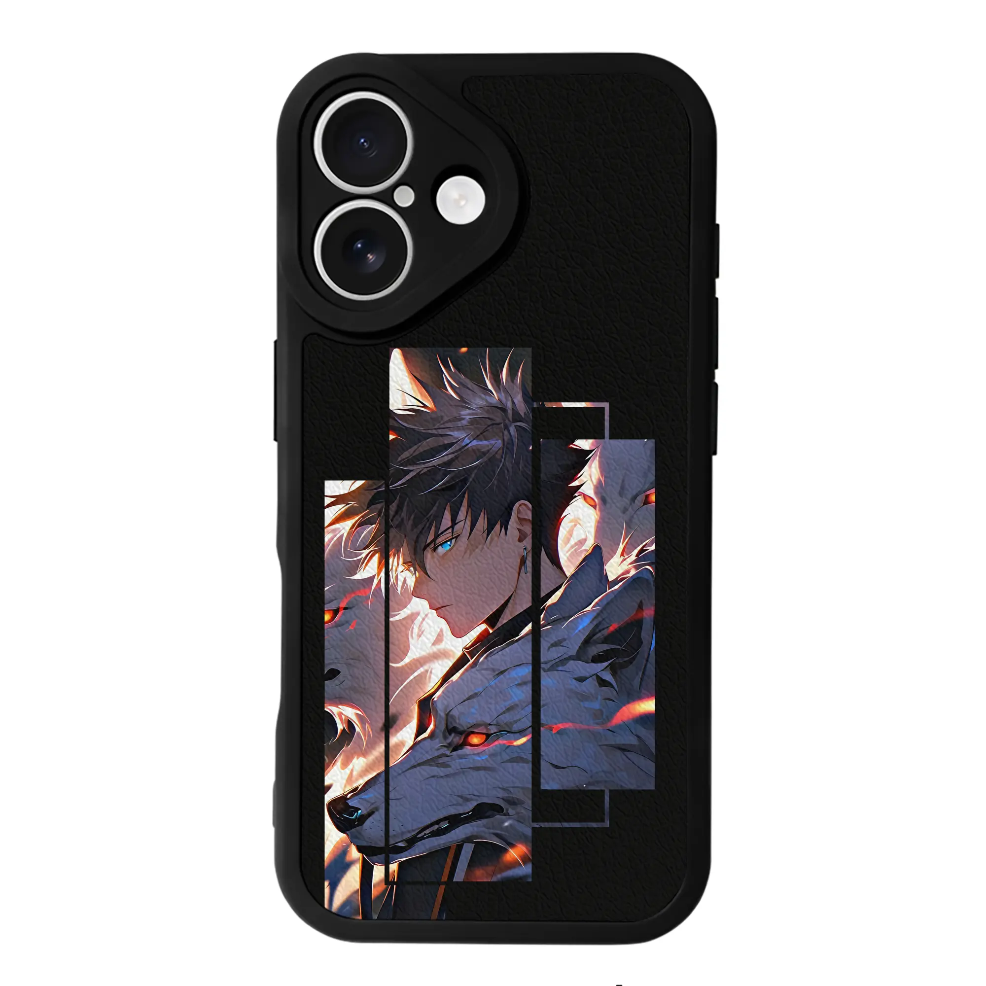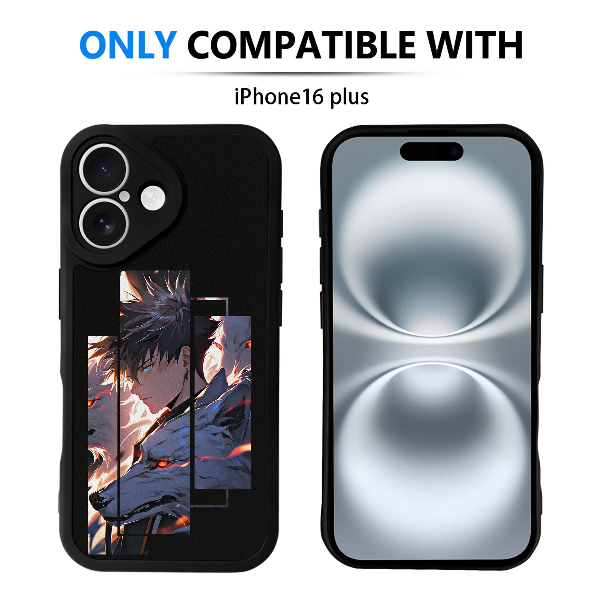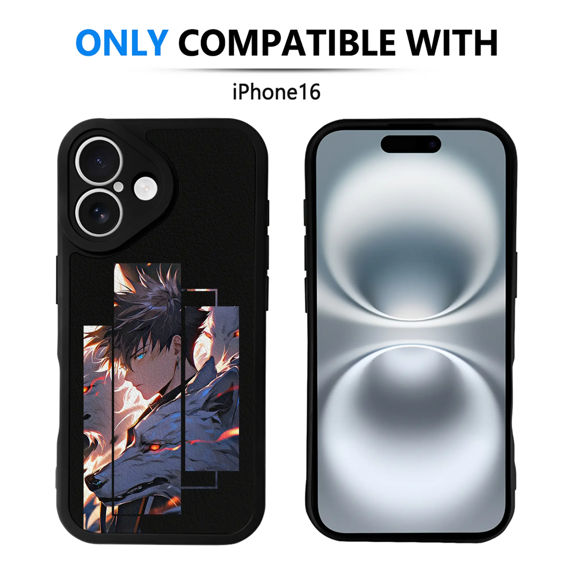 呪術廻戦 グッズ,伏黒 恵 - IPhone 16シリーズ対応 ・ シリコンスマホケース ・ レザー調 ・ 高精度フィット ・ 耐衝撃 ・ ワイヤレス充電対応 ・ 精密カット