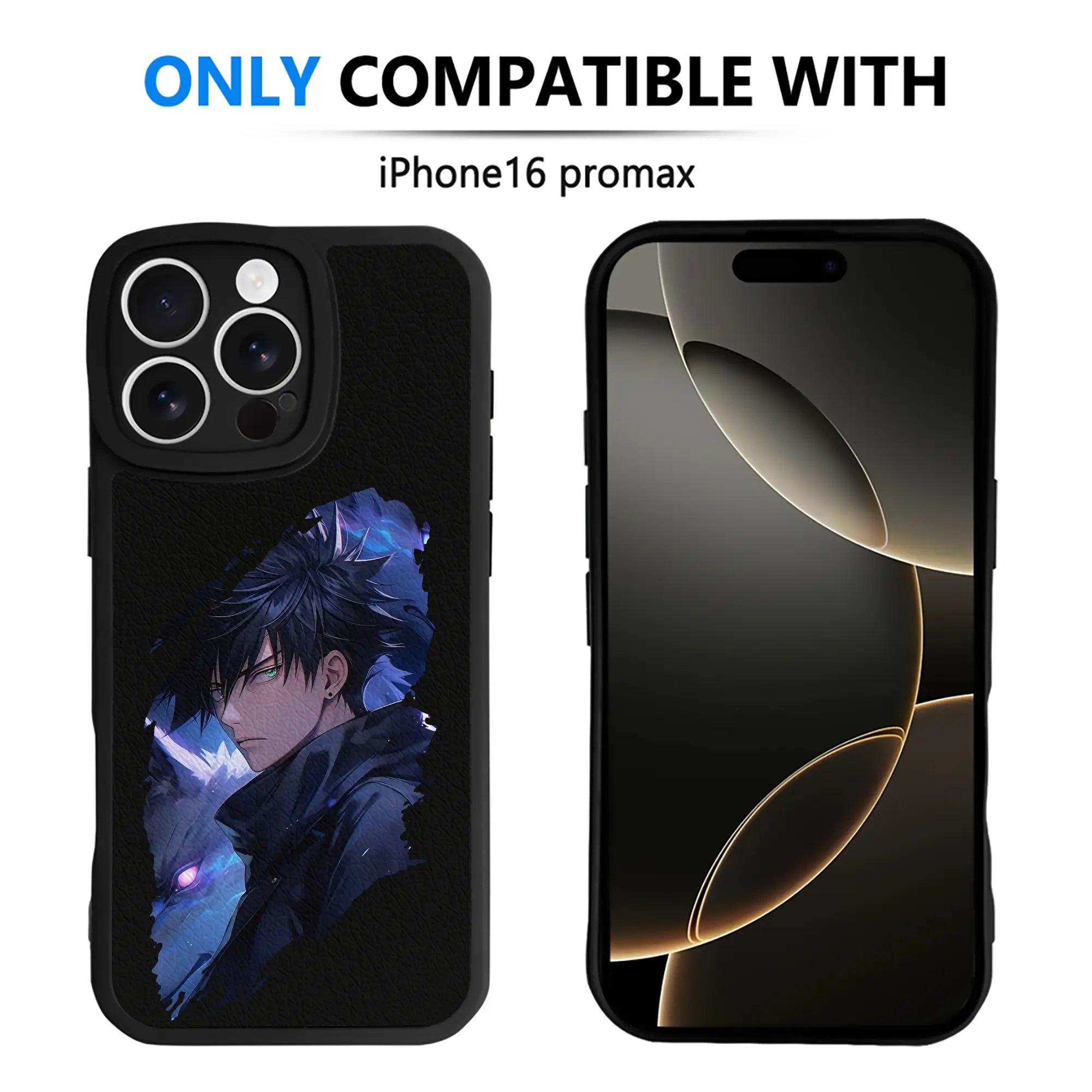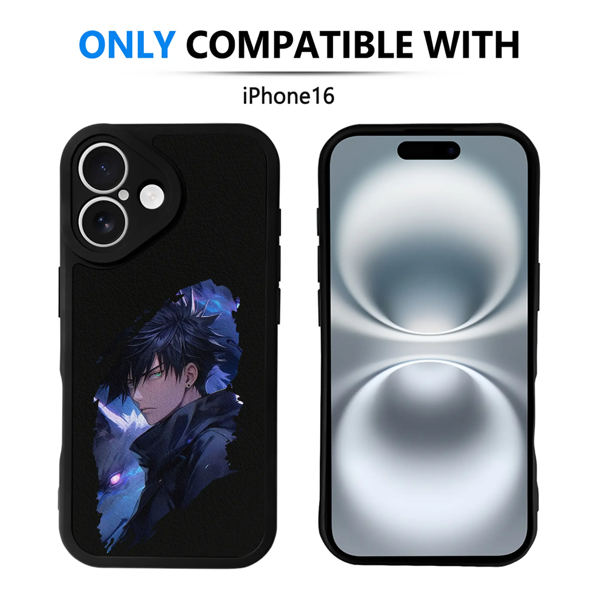 呪術廻戦 グッズ,伏黒 恵 - IPhone 16シリーズ対応 ・ シリコンスマホケース ・ レザー調 ・ 高精度フィット ・ 耐衝撃 ・ ワイヤレス充電対応 ・ 精密カット