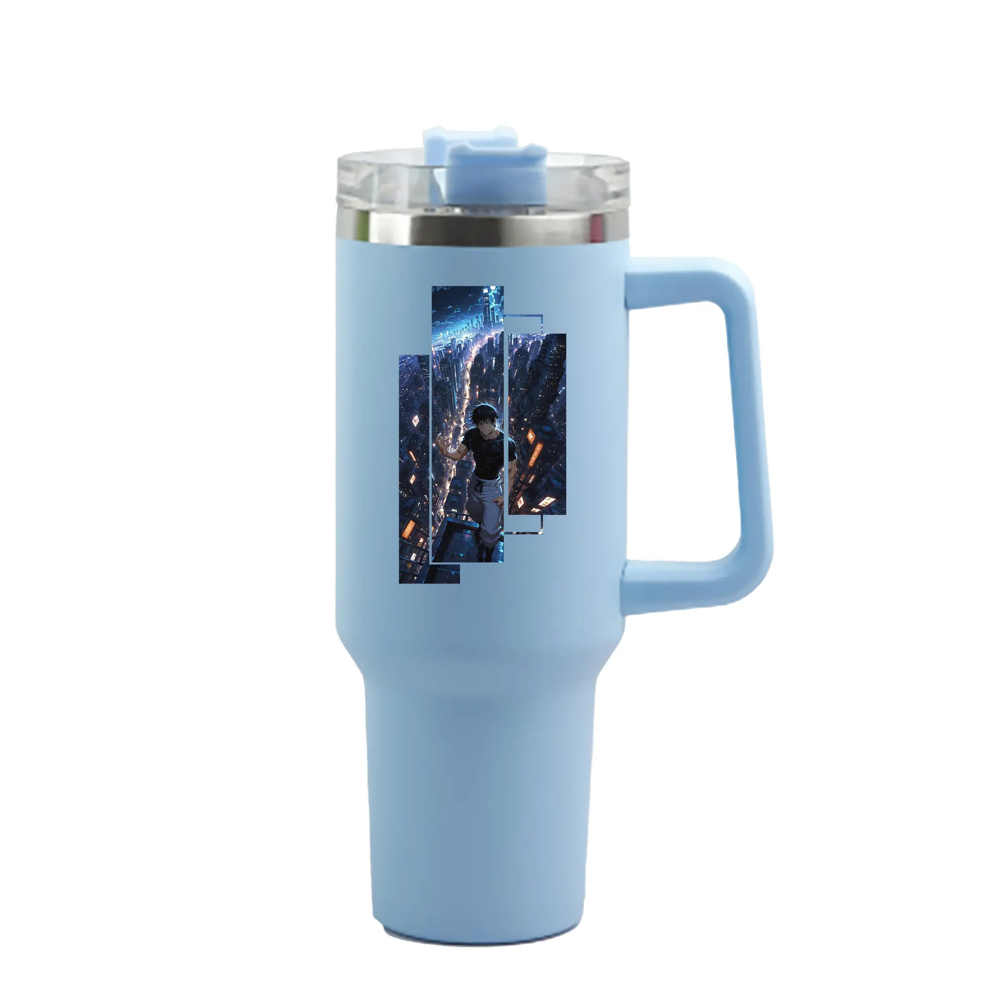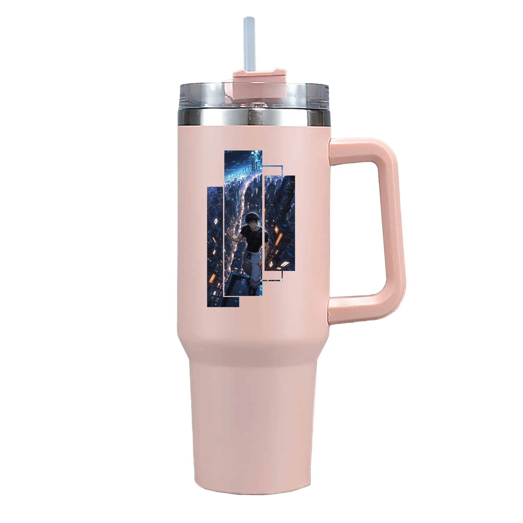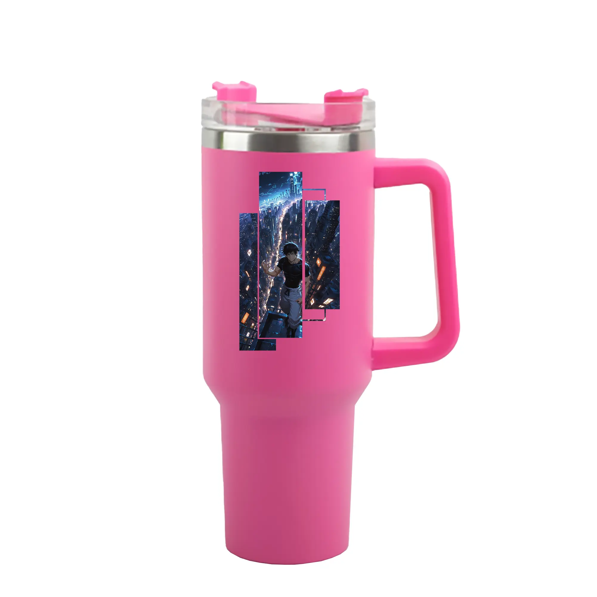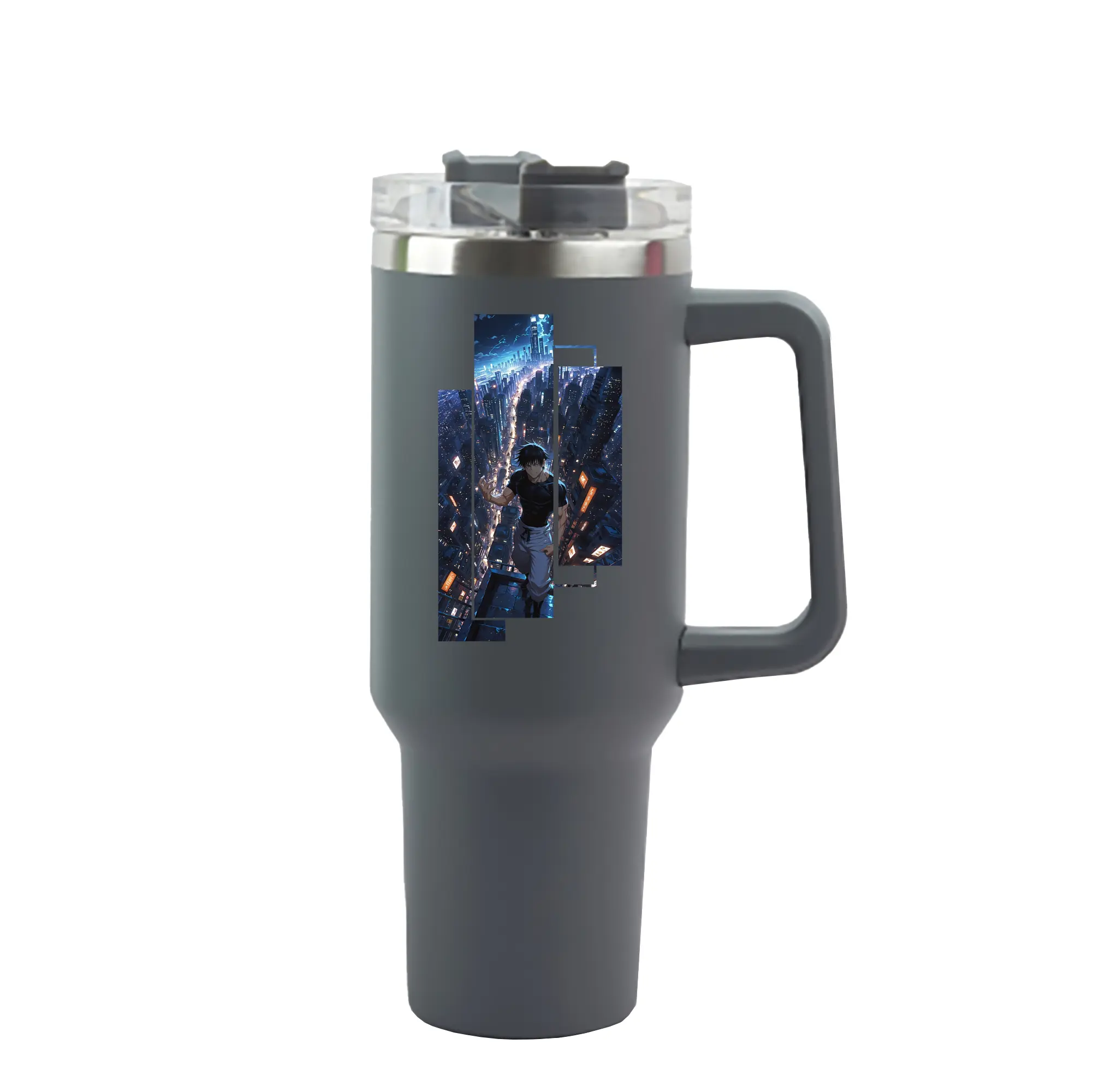 1200mL(40オンス)の大容量ハンドル付きカータンブラー。キラキラと輝くクリスタルステッカーデザインが、毎日の使用に華やかさをプラスします。食品グレード304ステンレスの内側と頑丈な201ステンレスの外側を採用し、耐久性・耐腐食性・安全性を兼ね備えています。