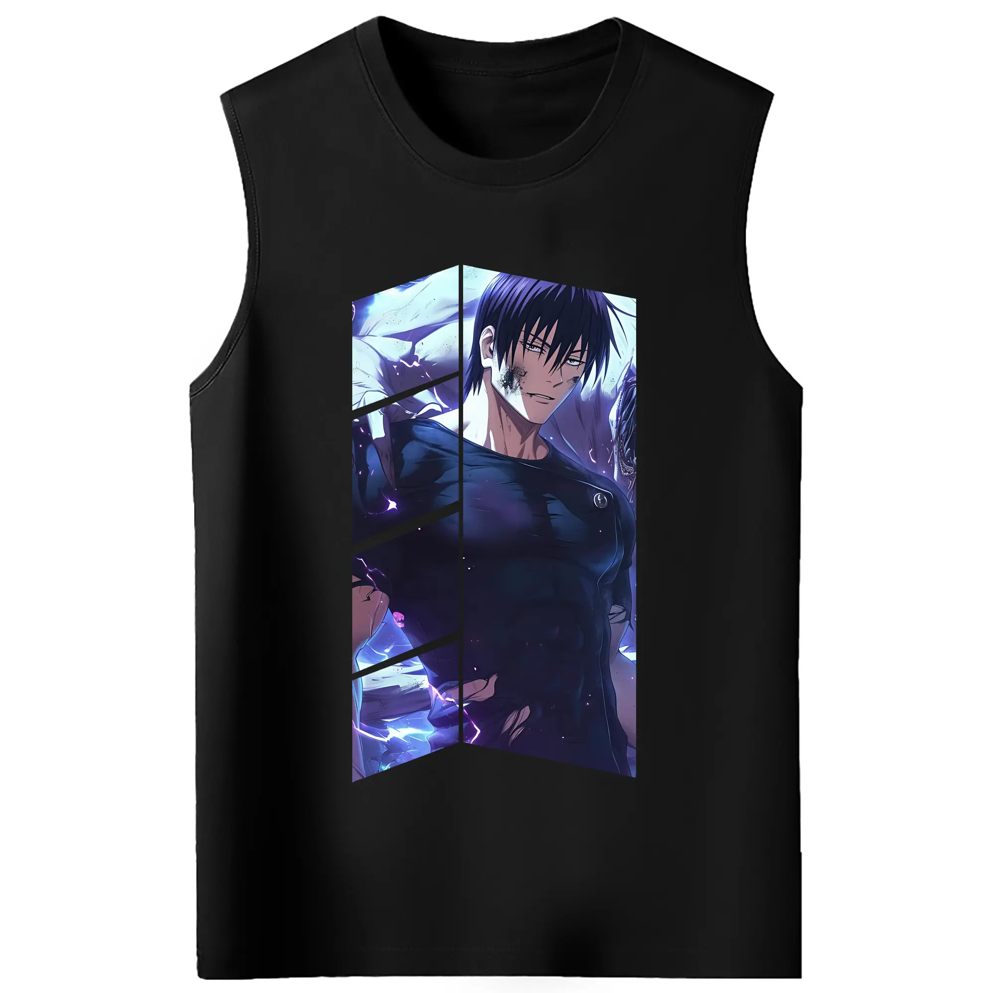 呪術廻戦 グッズ,伏黒 甚爾 - コットン100% タンクトップ ・ フロントプリント ・ タイトフィット ・ 快適 通気性 ・ スポーツ カジュアル 散歩用