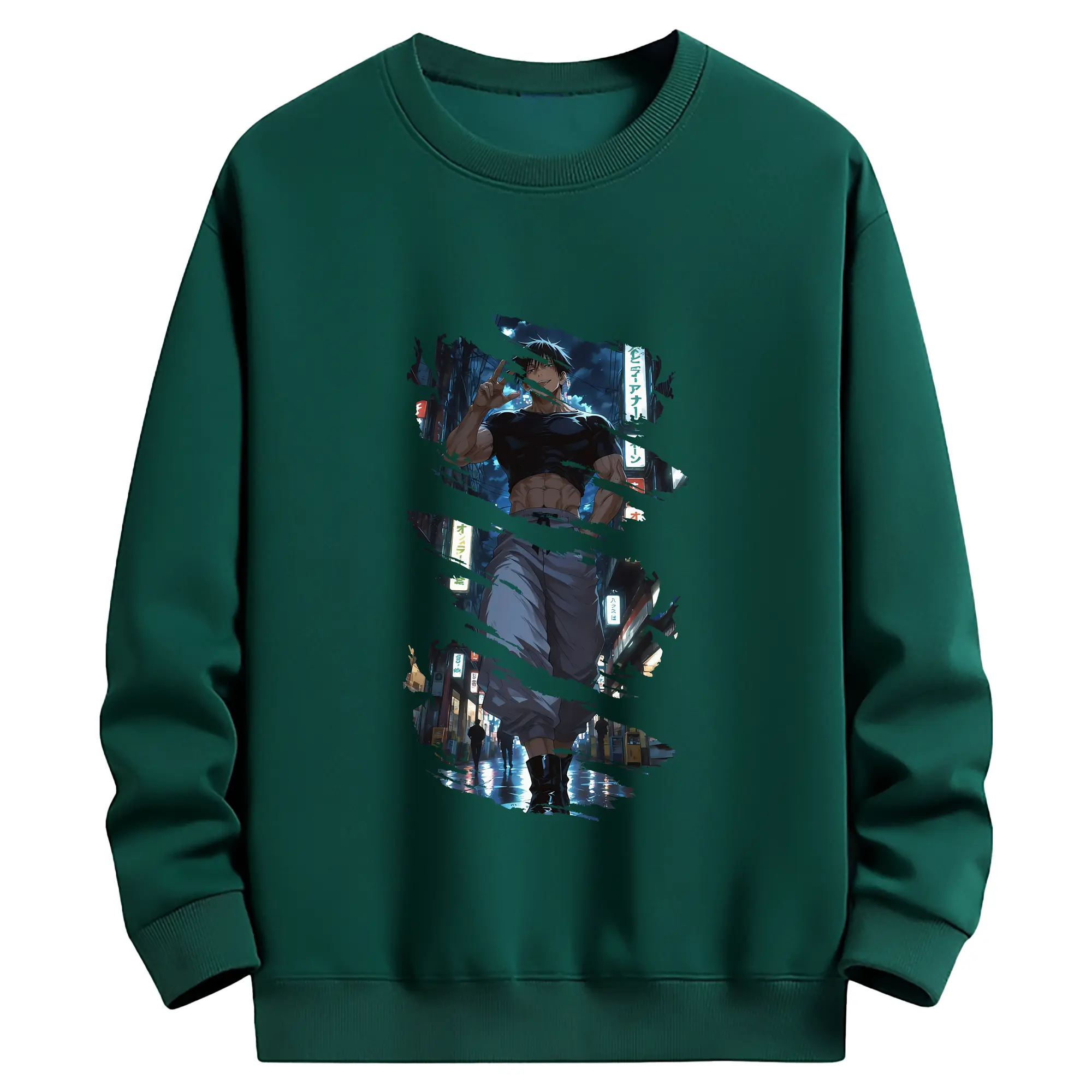 呪術廻戦 グッズ,伏黒 甚爾 - 薄手 クルーネック スウェット 裏毛260g · ポリエステル 春秋向け カジュアル 男女兼用 · トレーナー デイリー スポーツ 散歩に最適