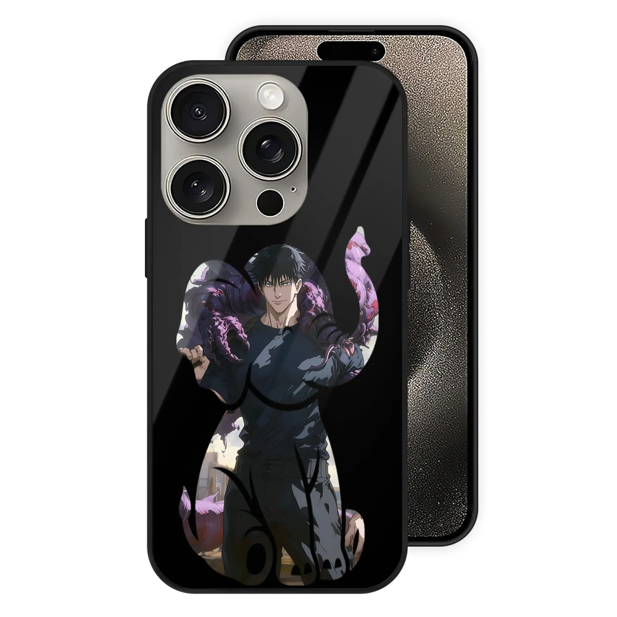 呪術廻戦 グッズ,伏黒 甚爾 - IPhone15Pro対応 ・ スマホケース ・ 背面ガラス ・ TPU+強化ガラス ・ 耐衝撃 ・ 黄変防止 ・ ワイヤレス充電対応 ・ 3D立体ボタン