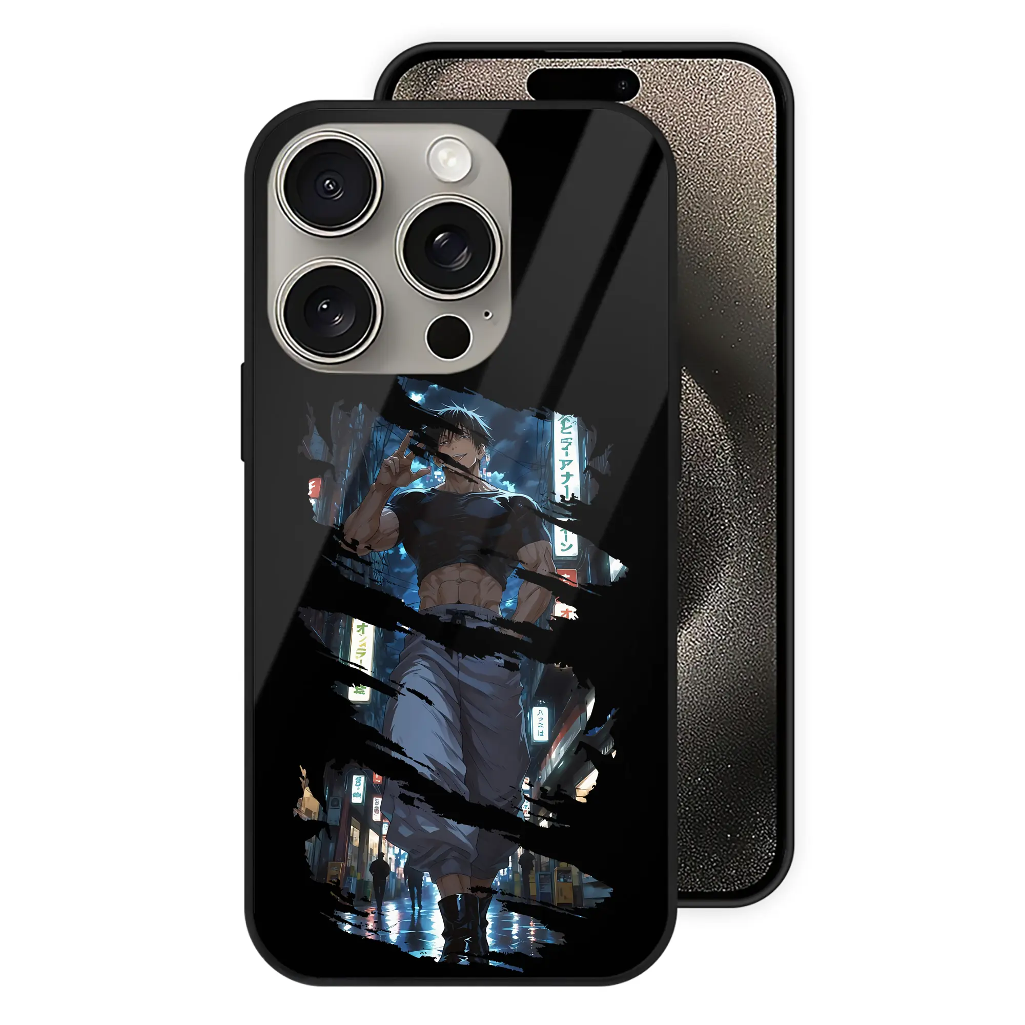 呪術廻戦 グッズ,伏黒 甚爾 - IPhone15Pro対応 ・ スマホケース ・ 背面ガラス ・ TPU+強化ガラス ・ 耐衝撃 ・ 黄変防止 ・ ワイヤレス充電対応 ・ 3D立体ボタン