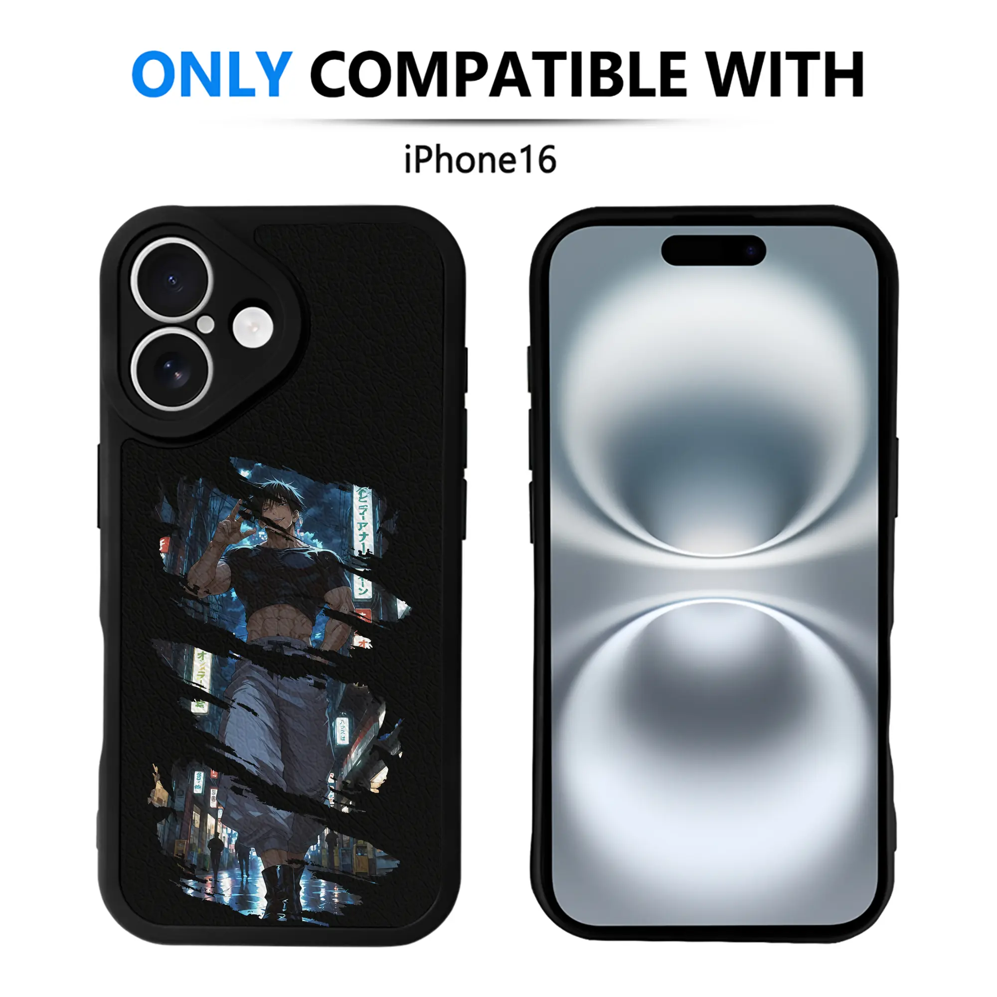 呪術廻戦 グッズ,伏黒 甚爾 - IPhone 16シリーズ対応 ・ シリコンスマホケース ・ レザー調 ・ 高精度フィット ・ 耐衝撃 ・ ワイヤレス充電対応 ・ 精密カット