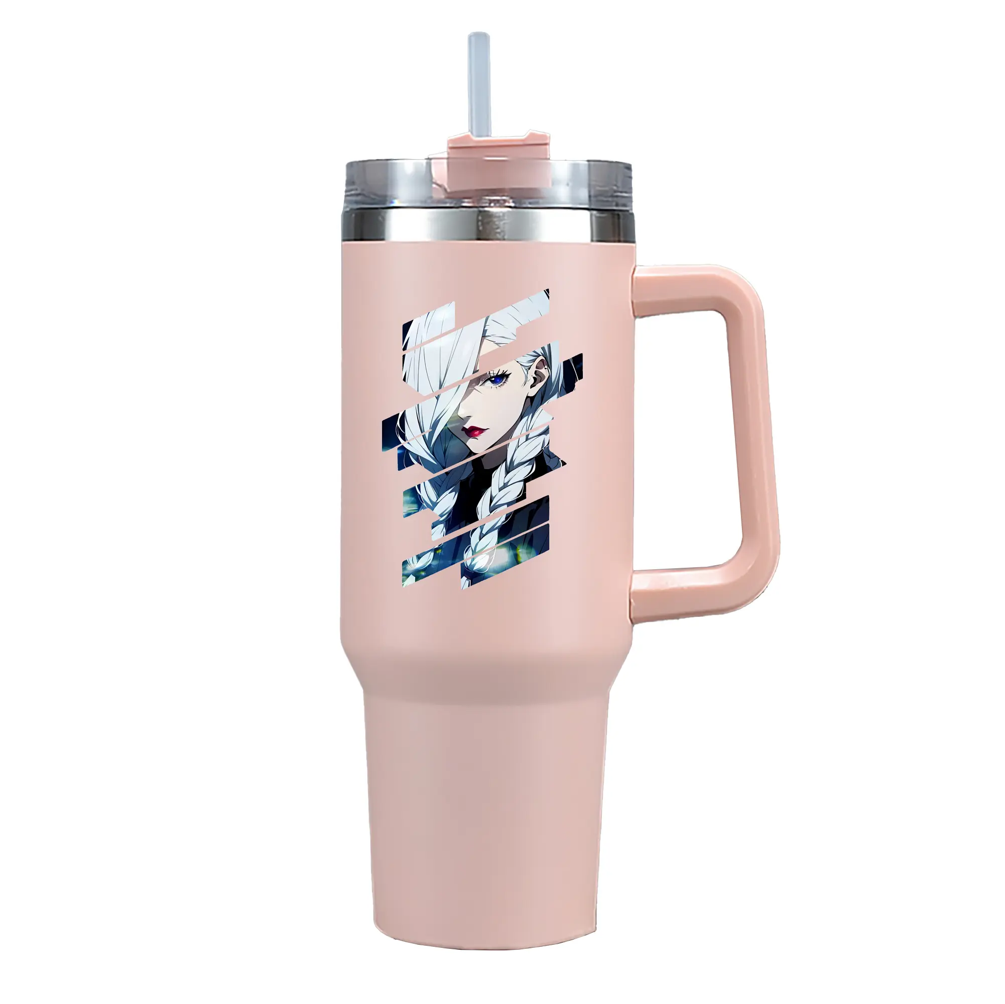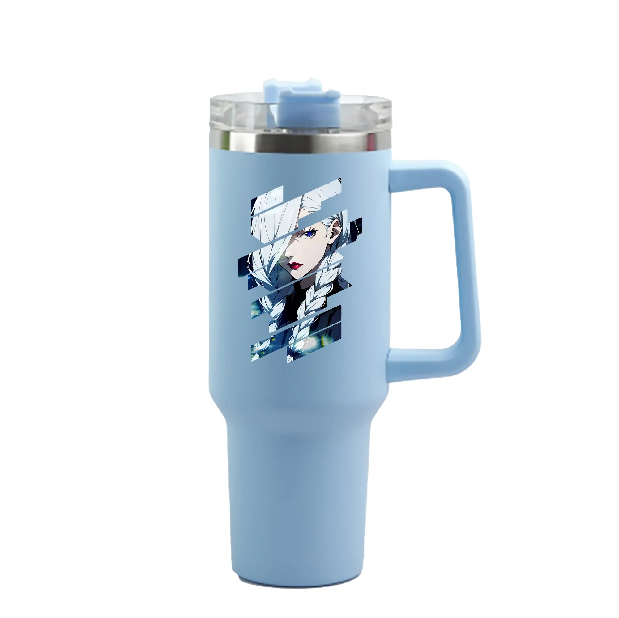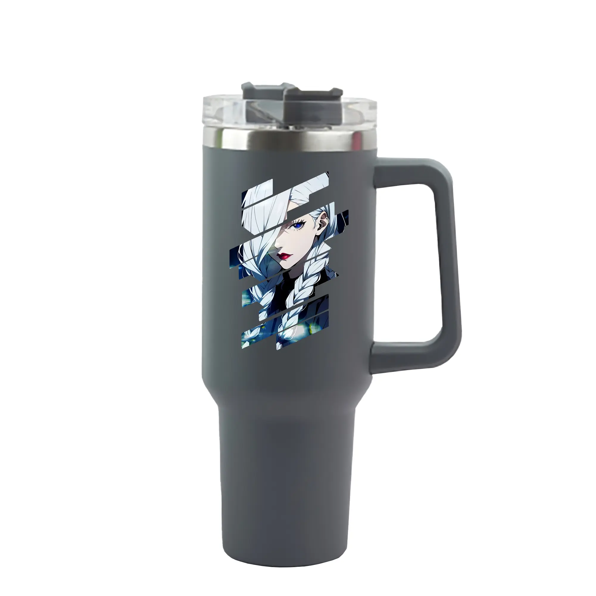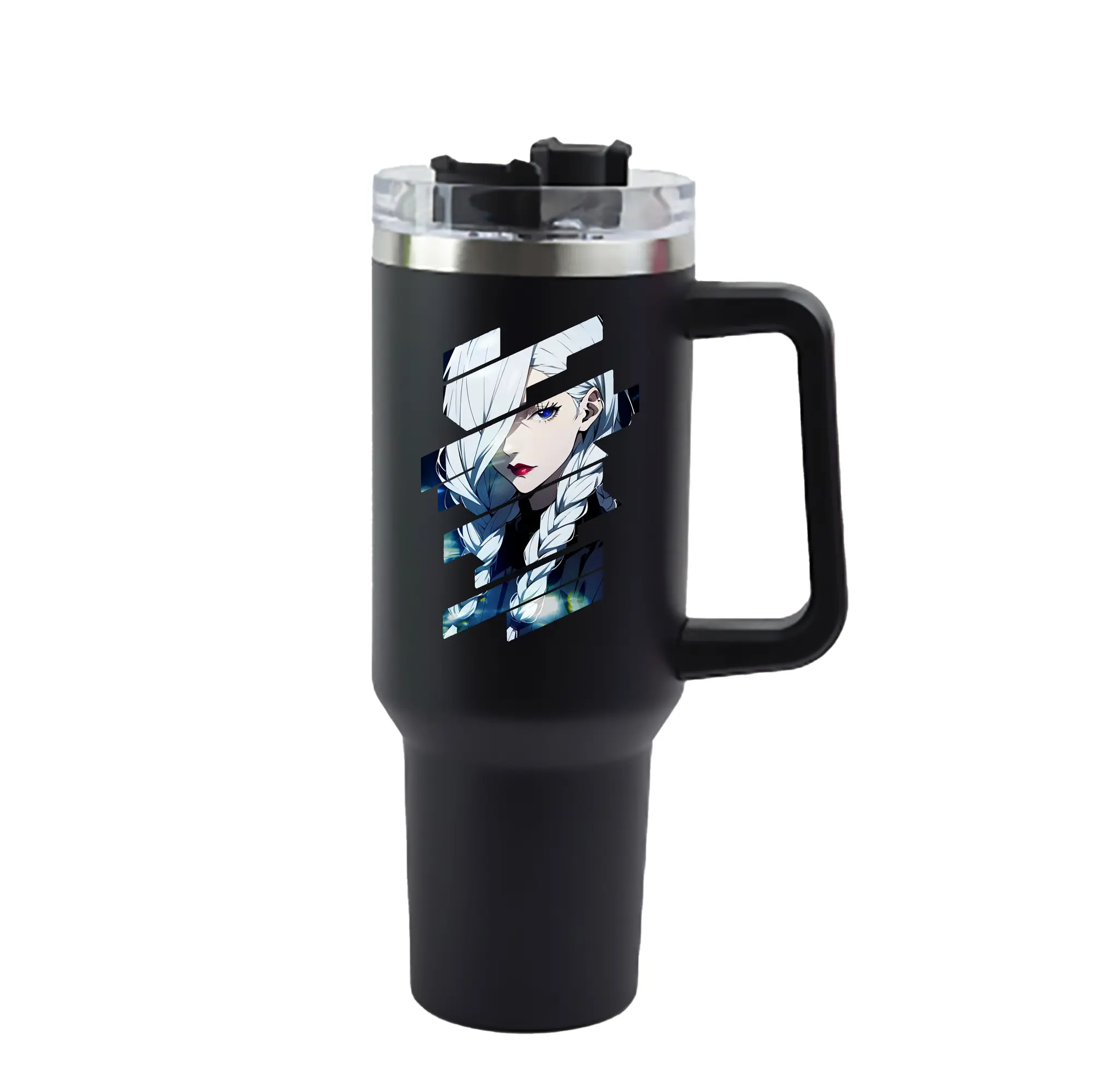 呪術廻戦 グッズ,冥冥 - 1200mL 車用タンブラー ・ クリスタルステッカー ・ 304ステンレス 内側 ・ 201ステンレス 外側 ・ 保温 保冷 ・ ハンドル&ストロー付き ・ 通勤 ドライブ アウトドア用