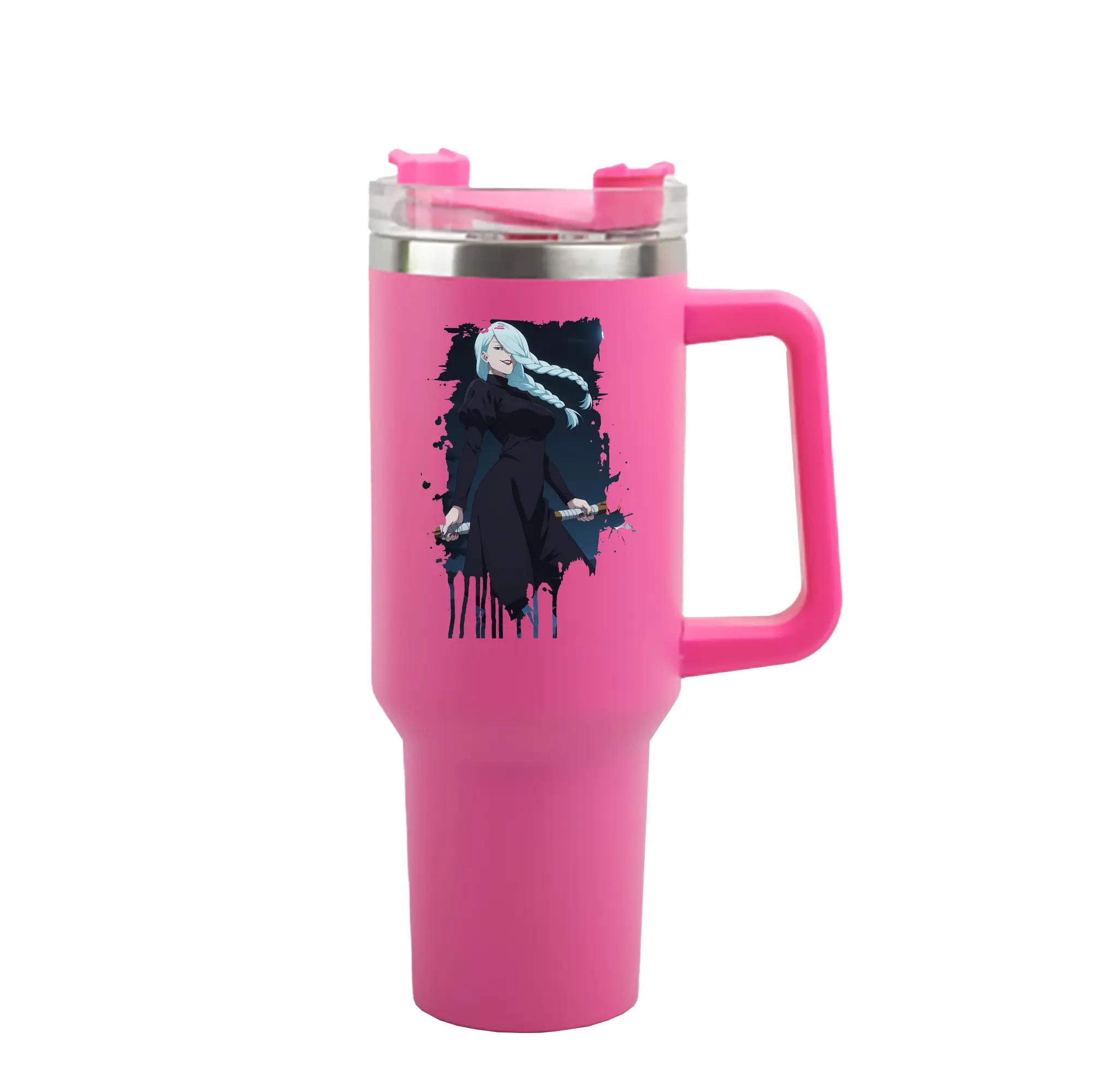呪術廻戦 グッズ,冥冥 - 1200mL 車用タンブラー ・ クリスタルステッカー ・ 304ステンレス 内側 ・ 201ステンレス 外側 ・ 保温 保冷 ・ ハンドル&ストロー付き ・ 通勤 ドライブ アウトドア用
