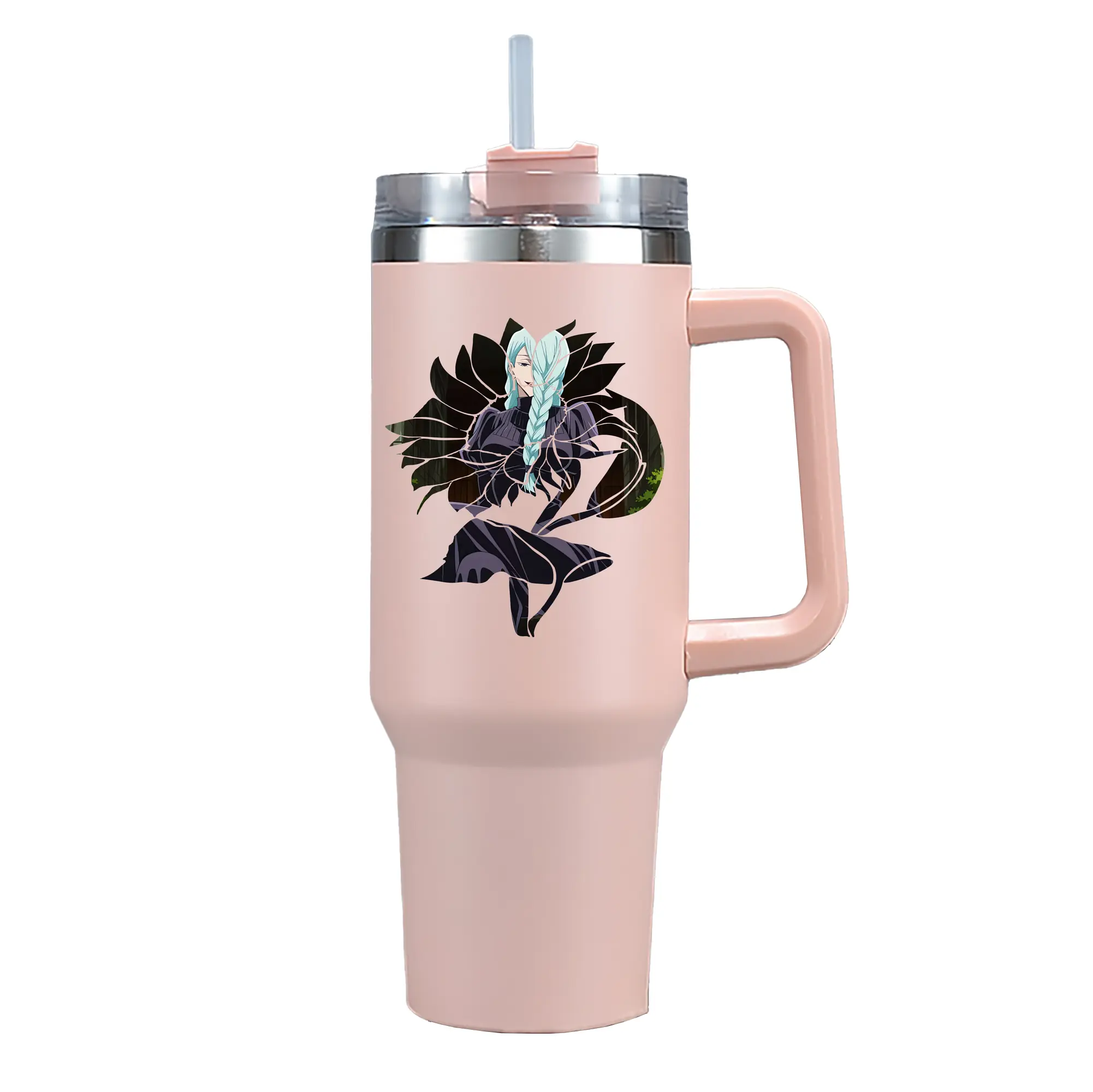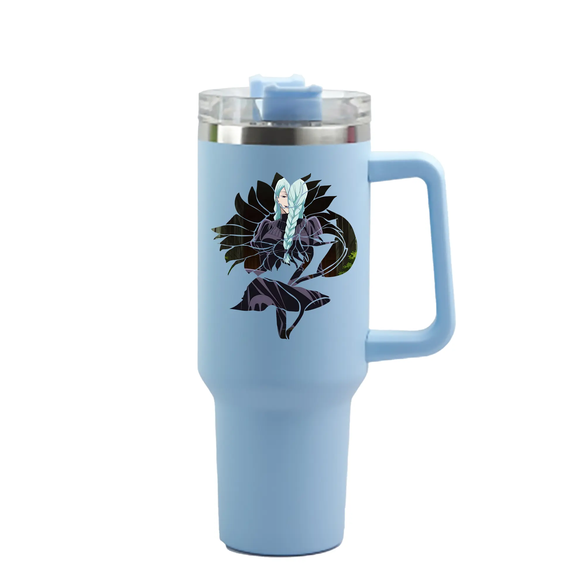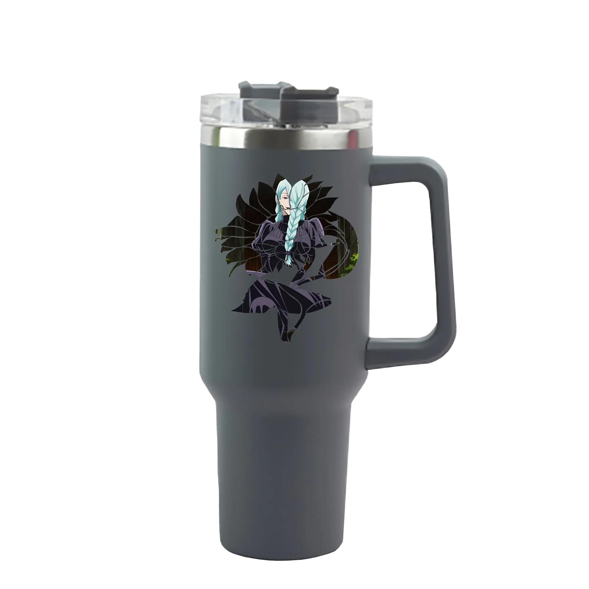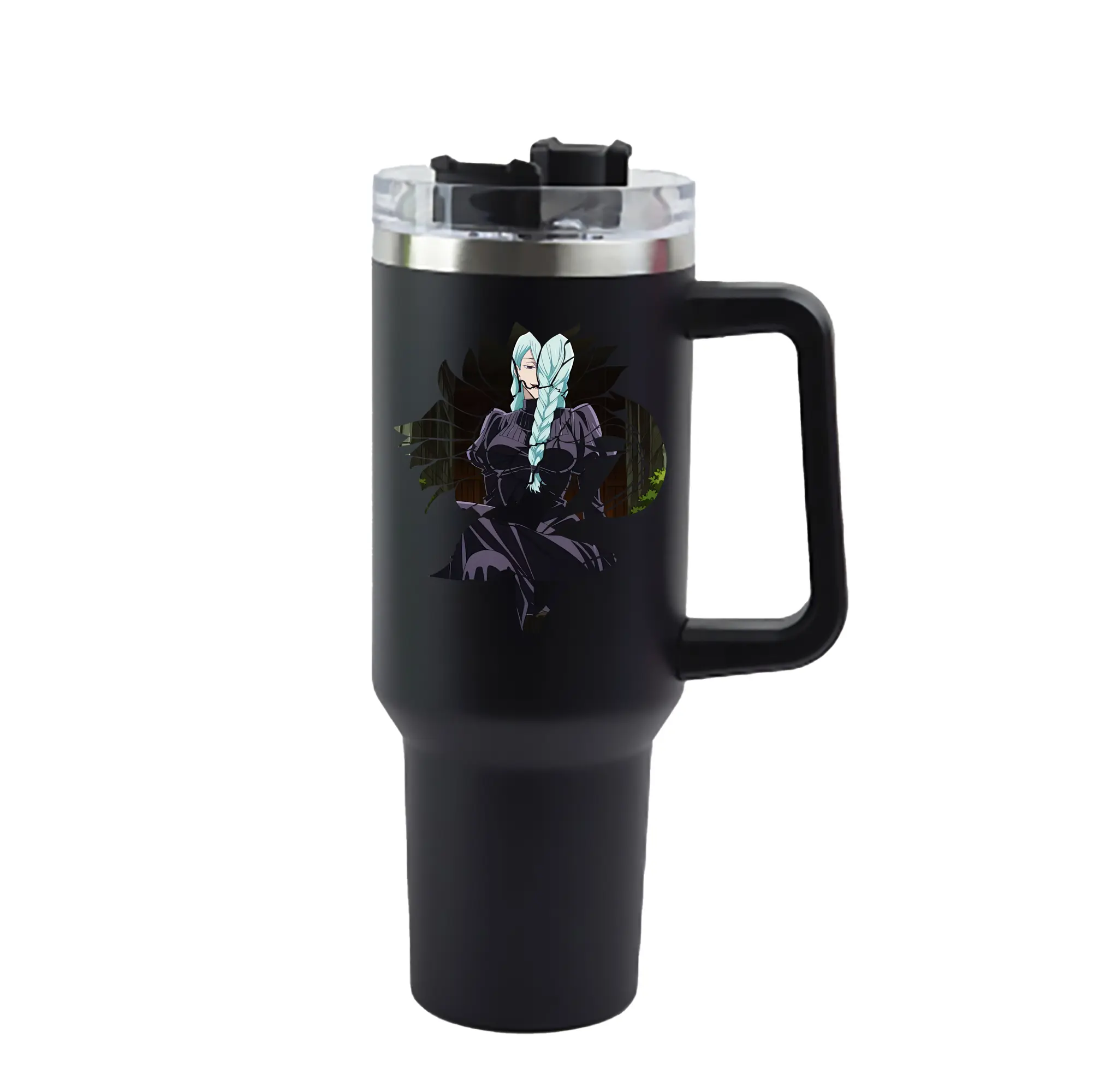 呪術廻戦 グッズ,冥冥 - 1200mL 車用タンブラー ・ クリスタルステッカー ・ 304ステンレス 内側 ・ 201ステンレス 外側 ・ 保温 保冷 ・ ハンドル&ストロー付き ・ 通勤 ドライブ アウトドア用