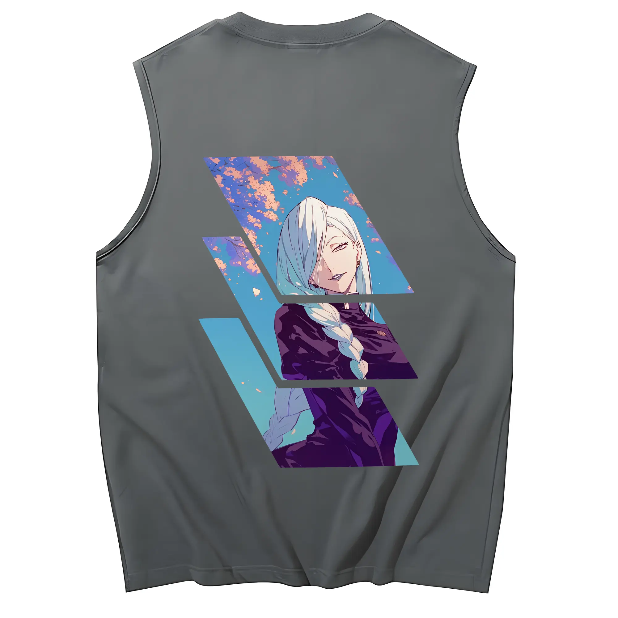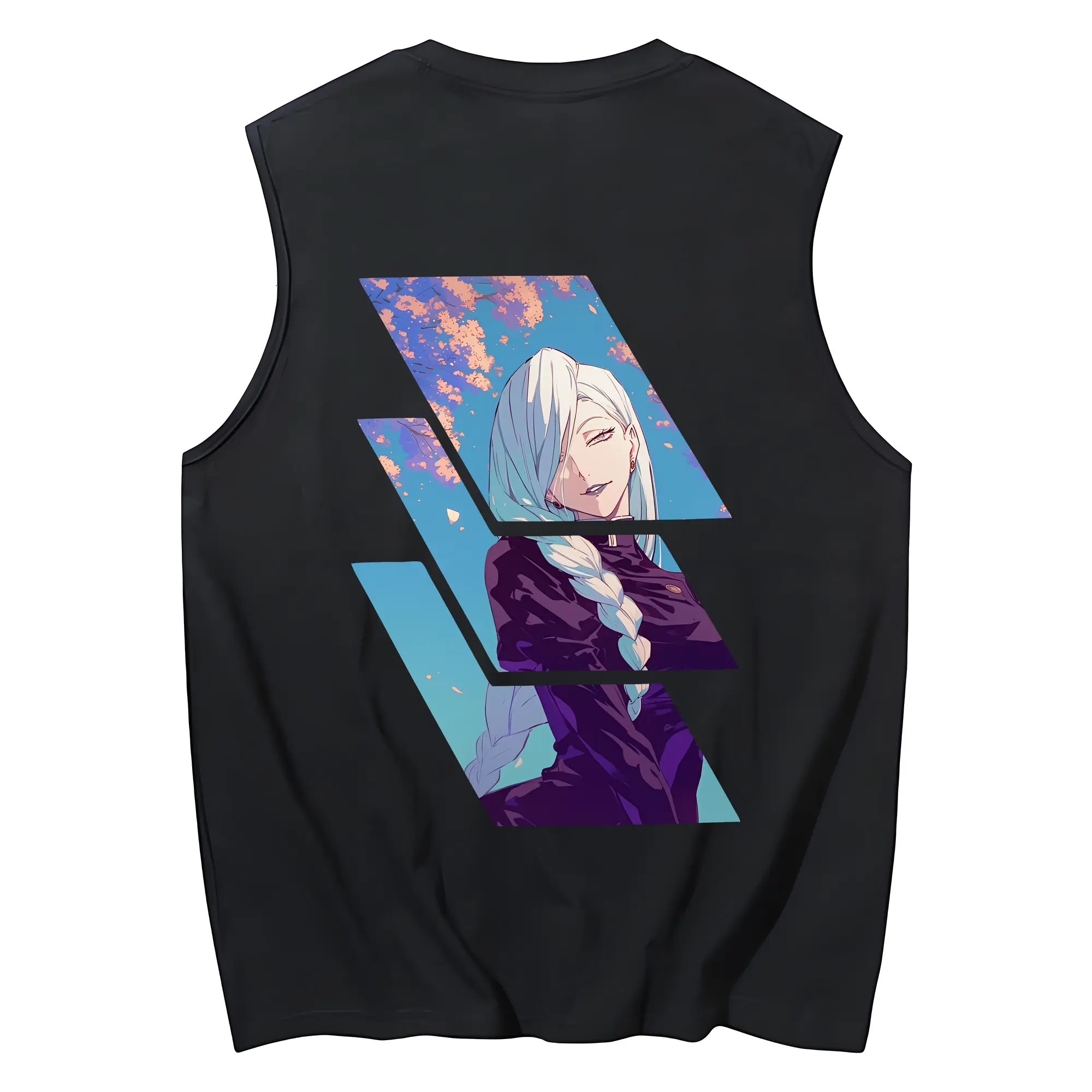 呪術廻戦 グッズ,冥冥 - コットン100% タンクトップ ・ 背面プリント ・ タイトシルエット ・ 快適 通気性 ・ スポーツ カジュアル 散歩用