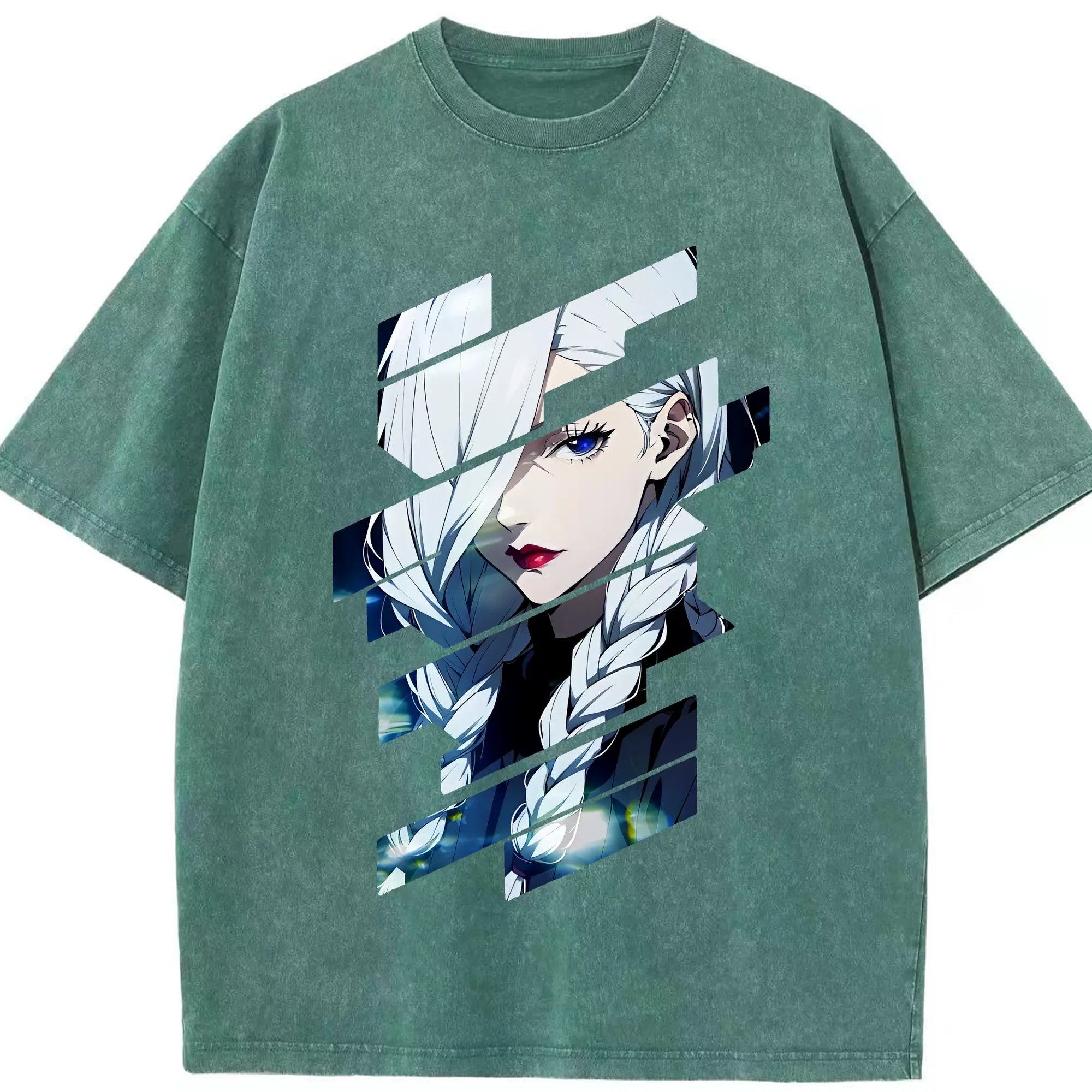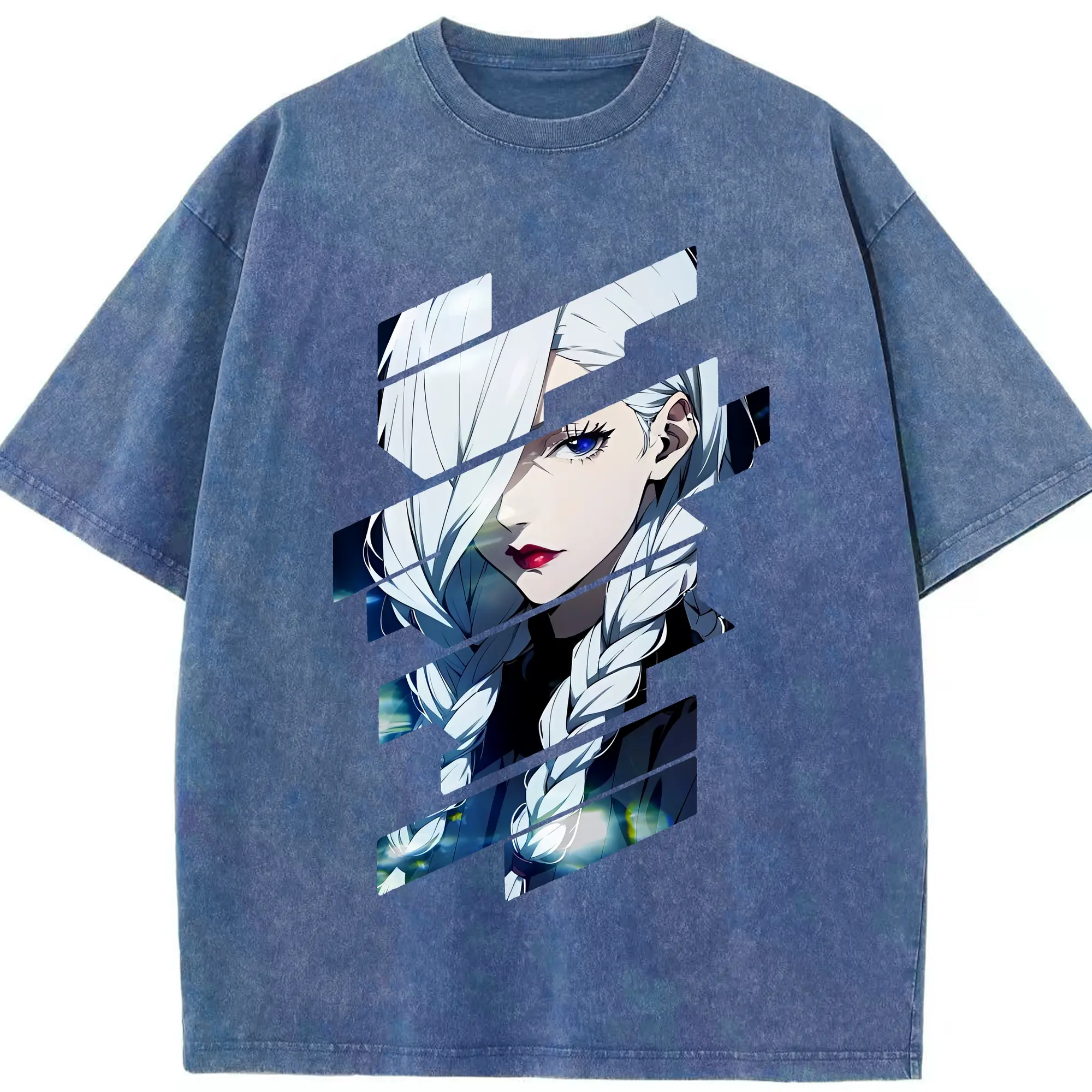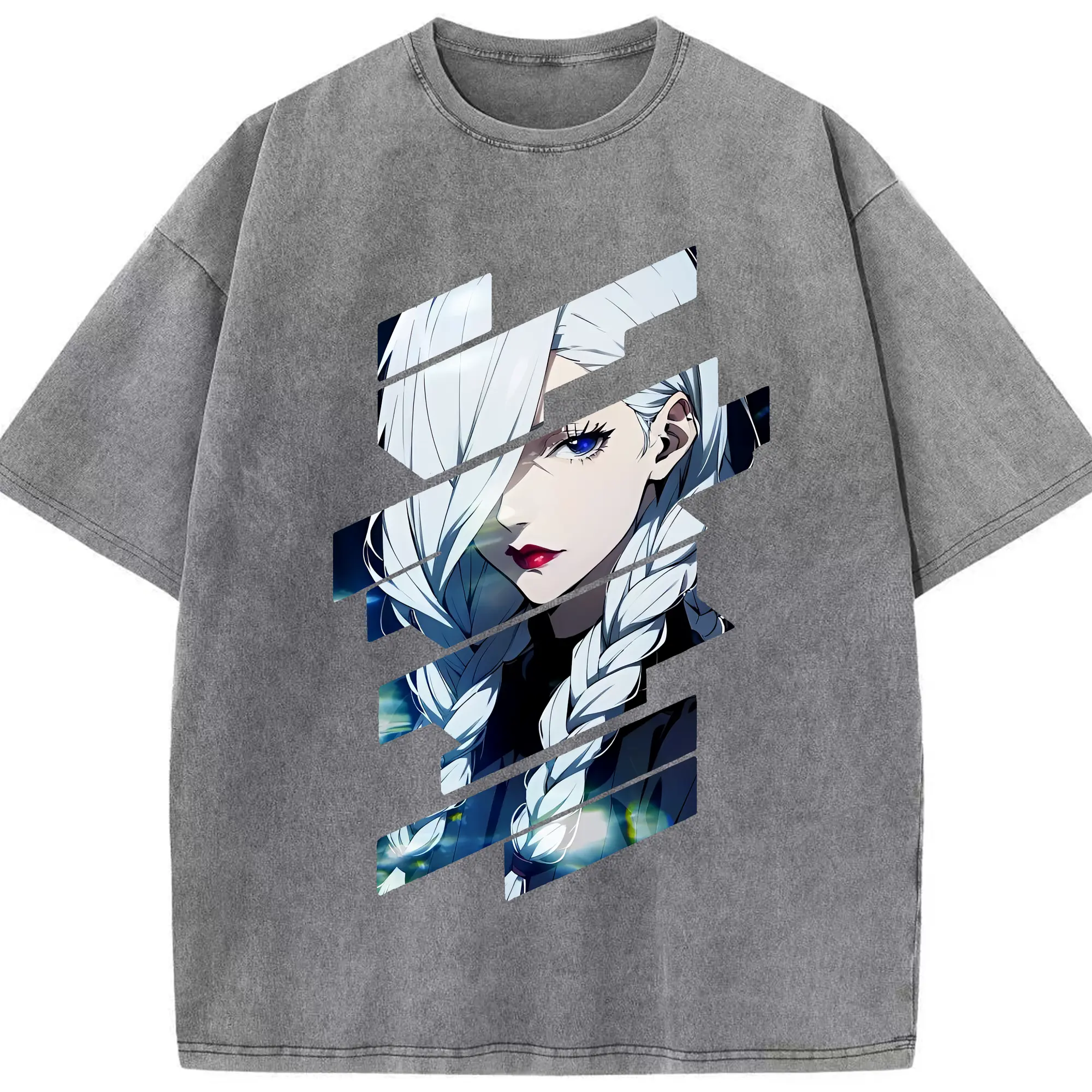 ワンパンマン グッズ ジェノス - 綿100% ヴィンテージ風 半袖Tシャツ ・ フロントプリント ・ 柔らか肌触り ・ 通気性 快適 ・ スポーツ カジュアル 外出用