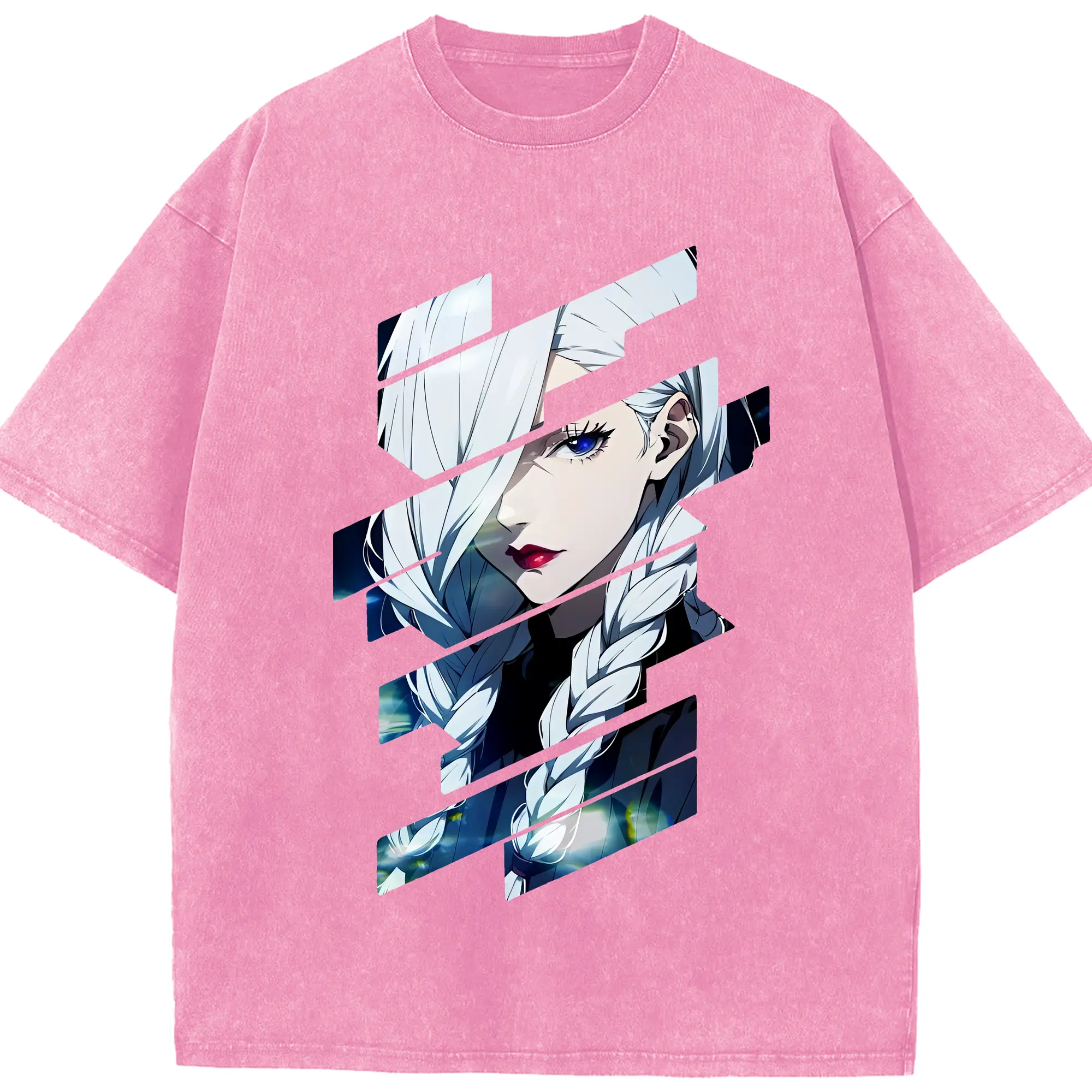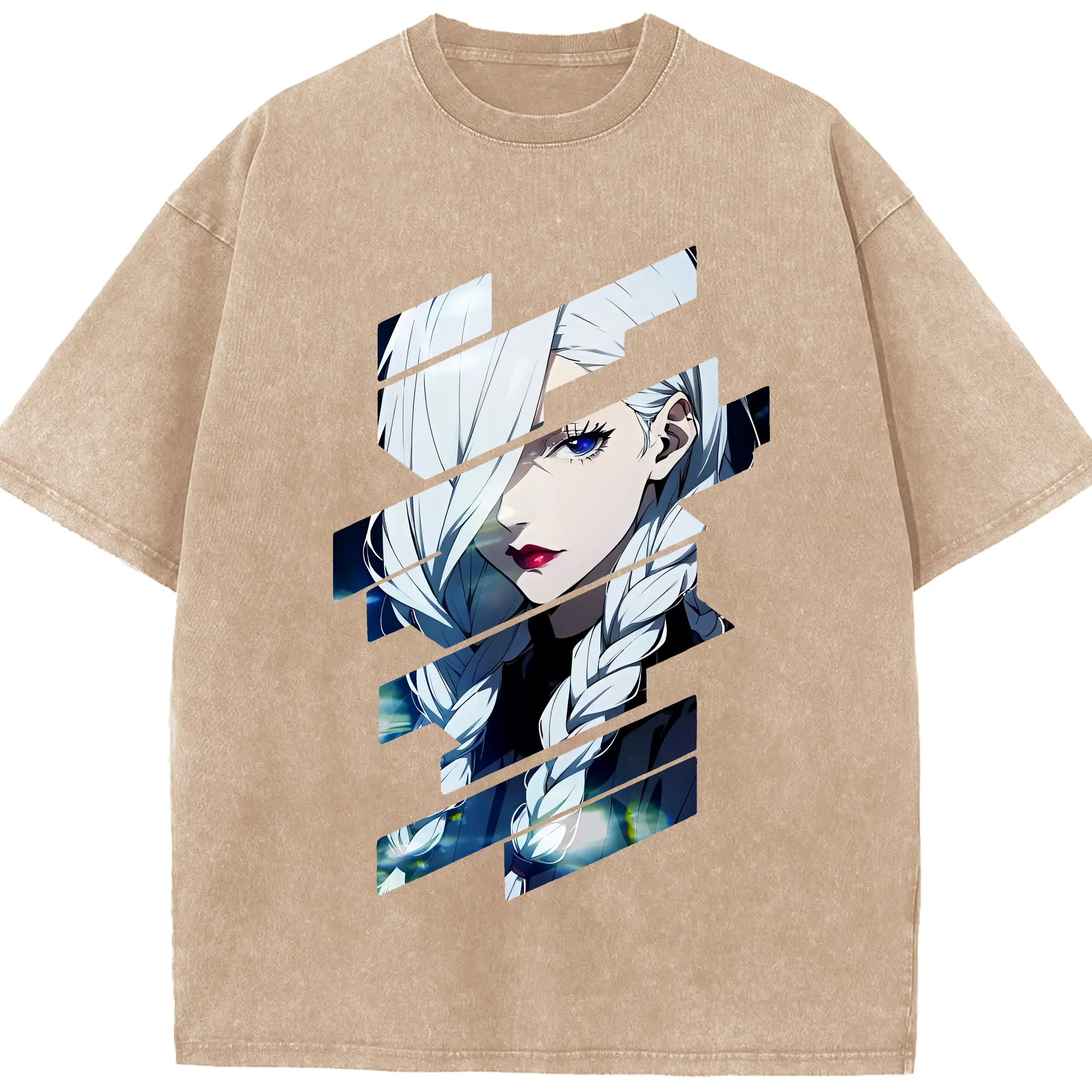 鳴潮 グッズ ヤンヤン - 綿100% ヴィンテージ風 半袖Tシャツ ・ フロントプリント ・ 柔らか肌触り ・ 通気性 快適 ・ スポーツ カジュアル 外出用