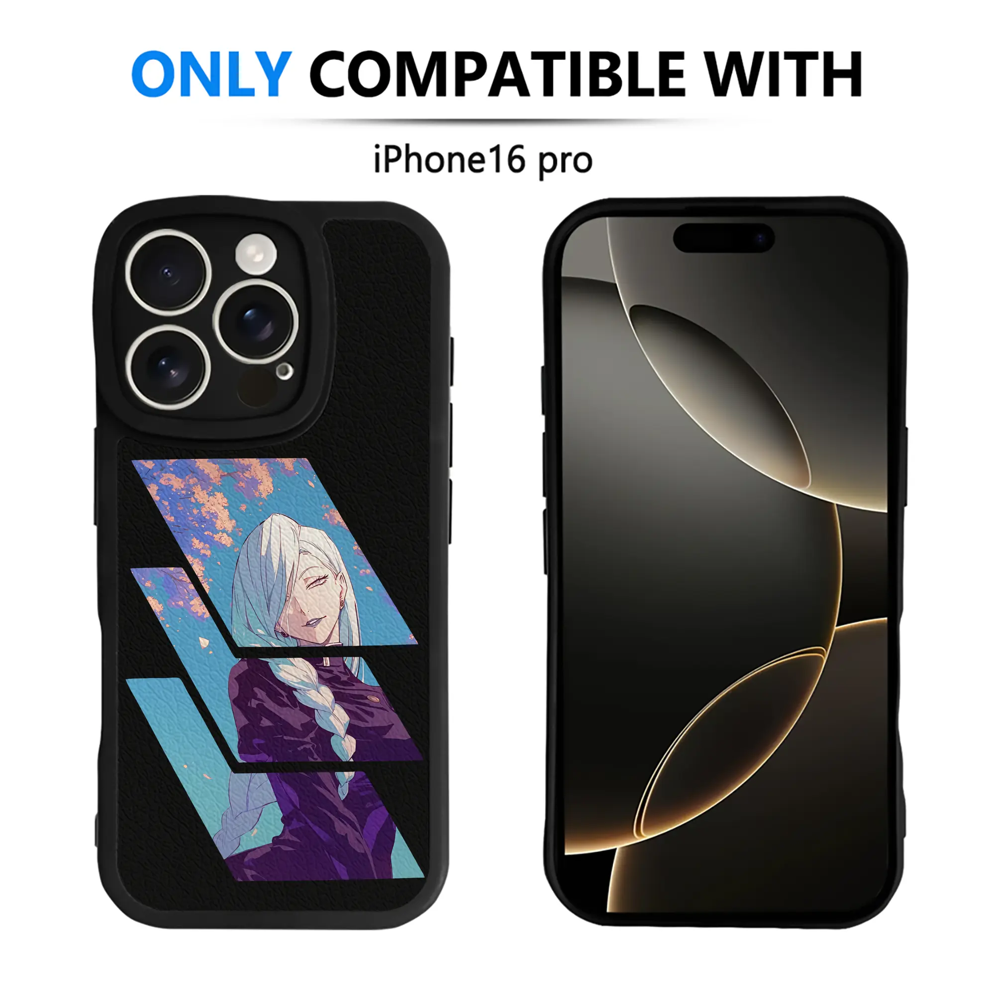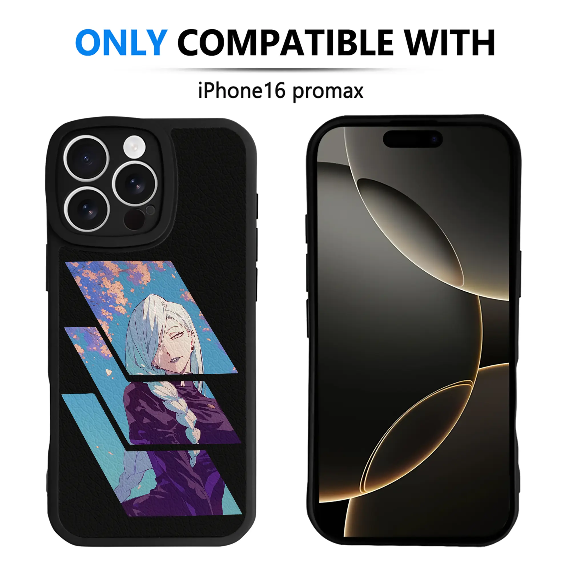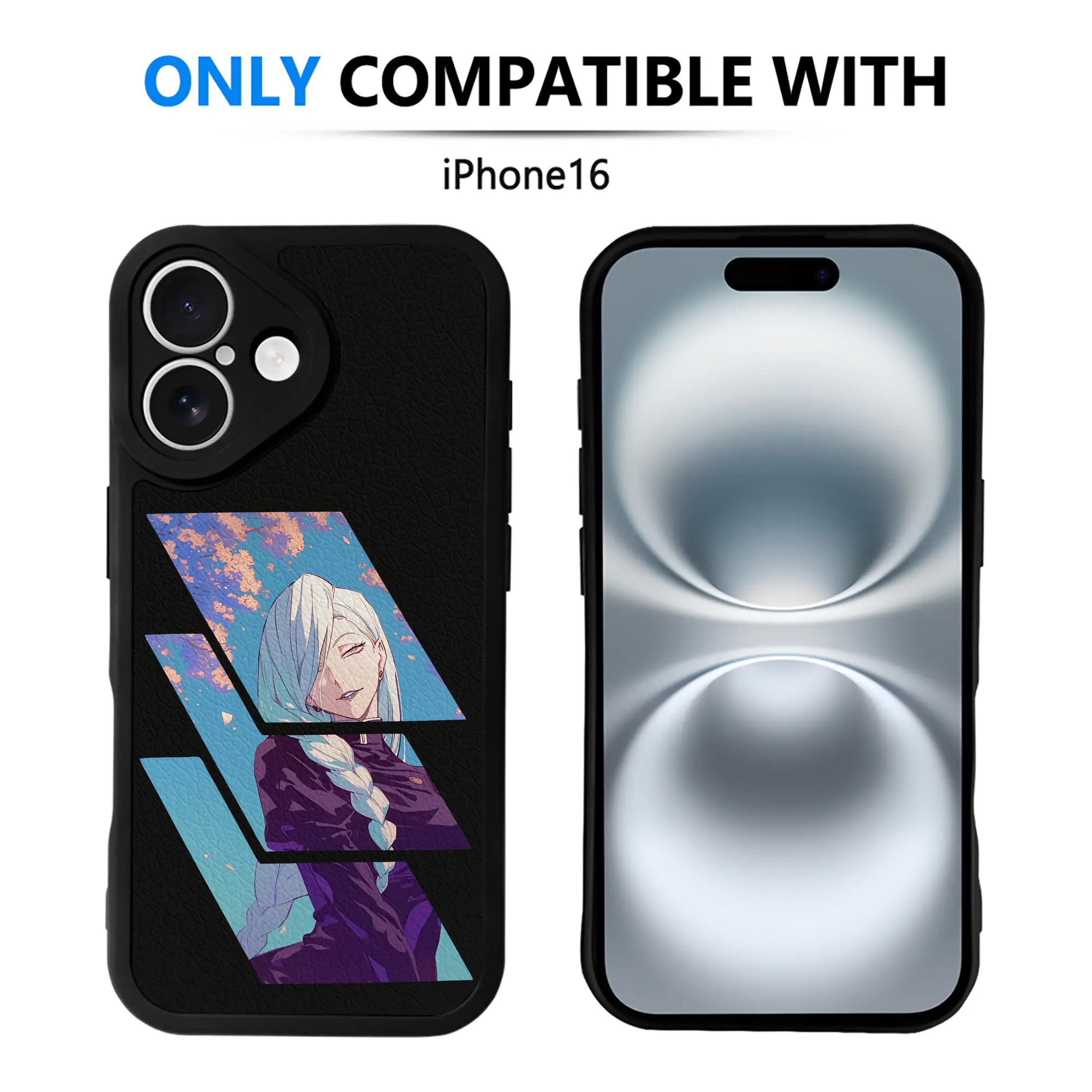 呪術廻戦 グッズ,冥冥 - IPhone 16シリーズ対応 ・ シリコンスマホケース ・ レザー調 ・ 高精度フィット ・ 耐衝撃 ・ ワイヤレス充電対応 ・ 精密カット