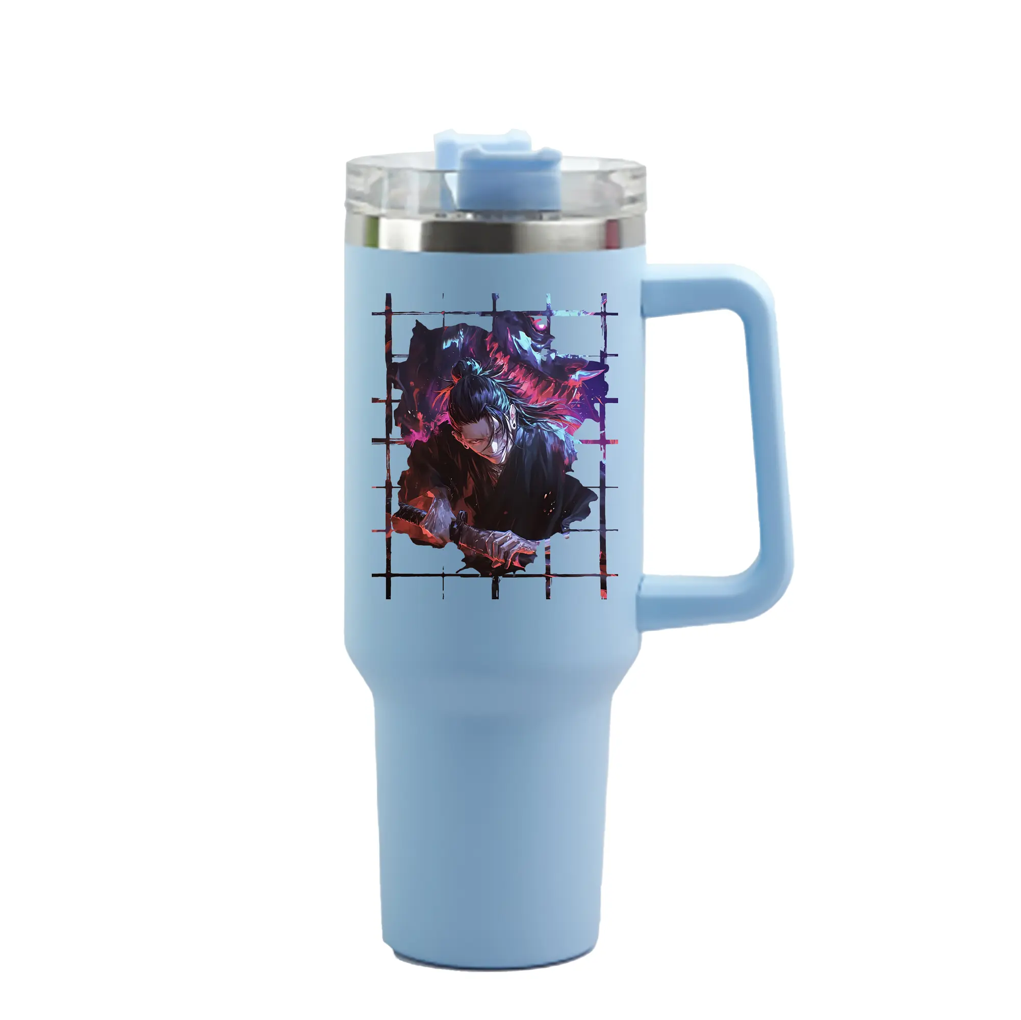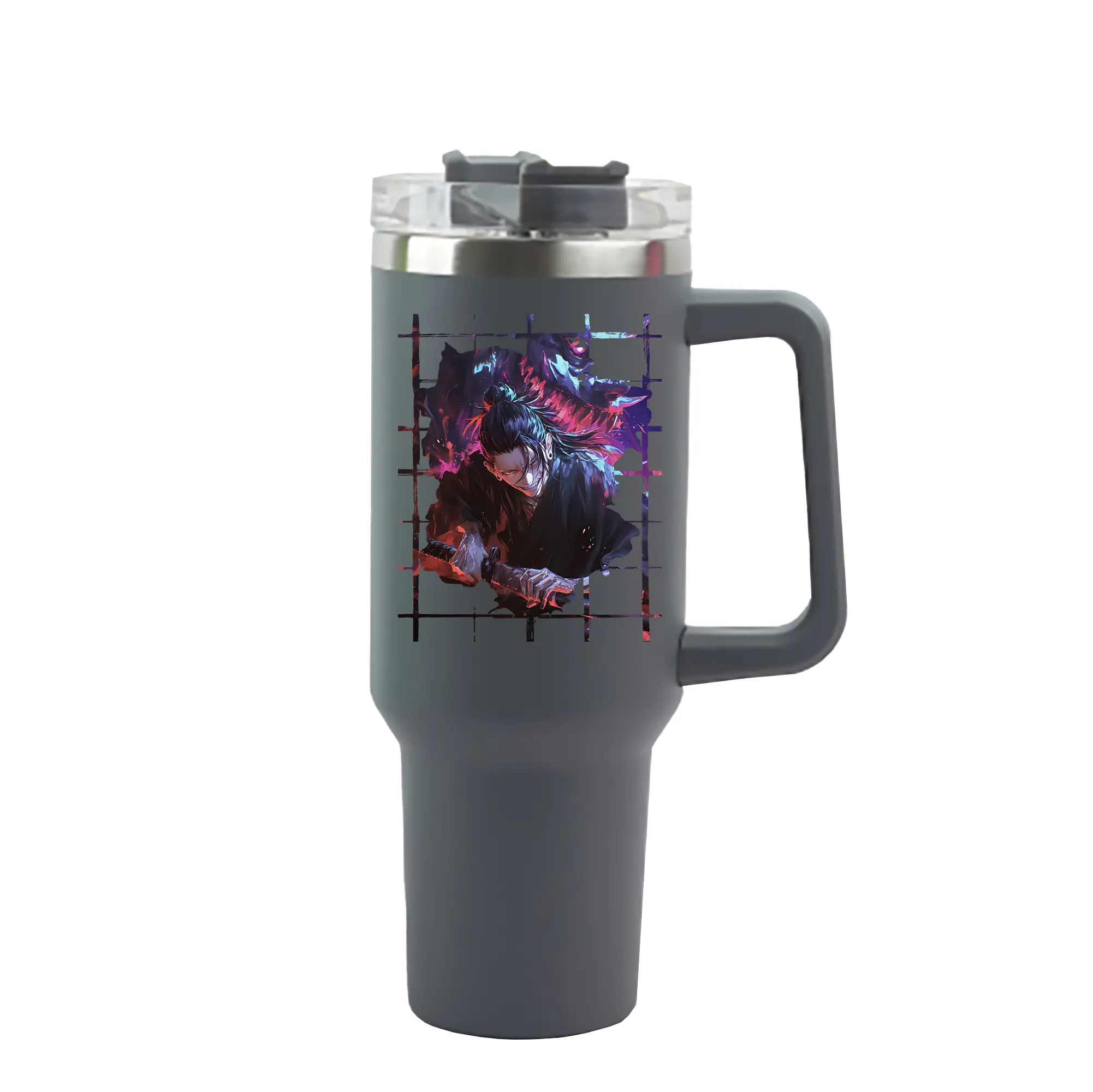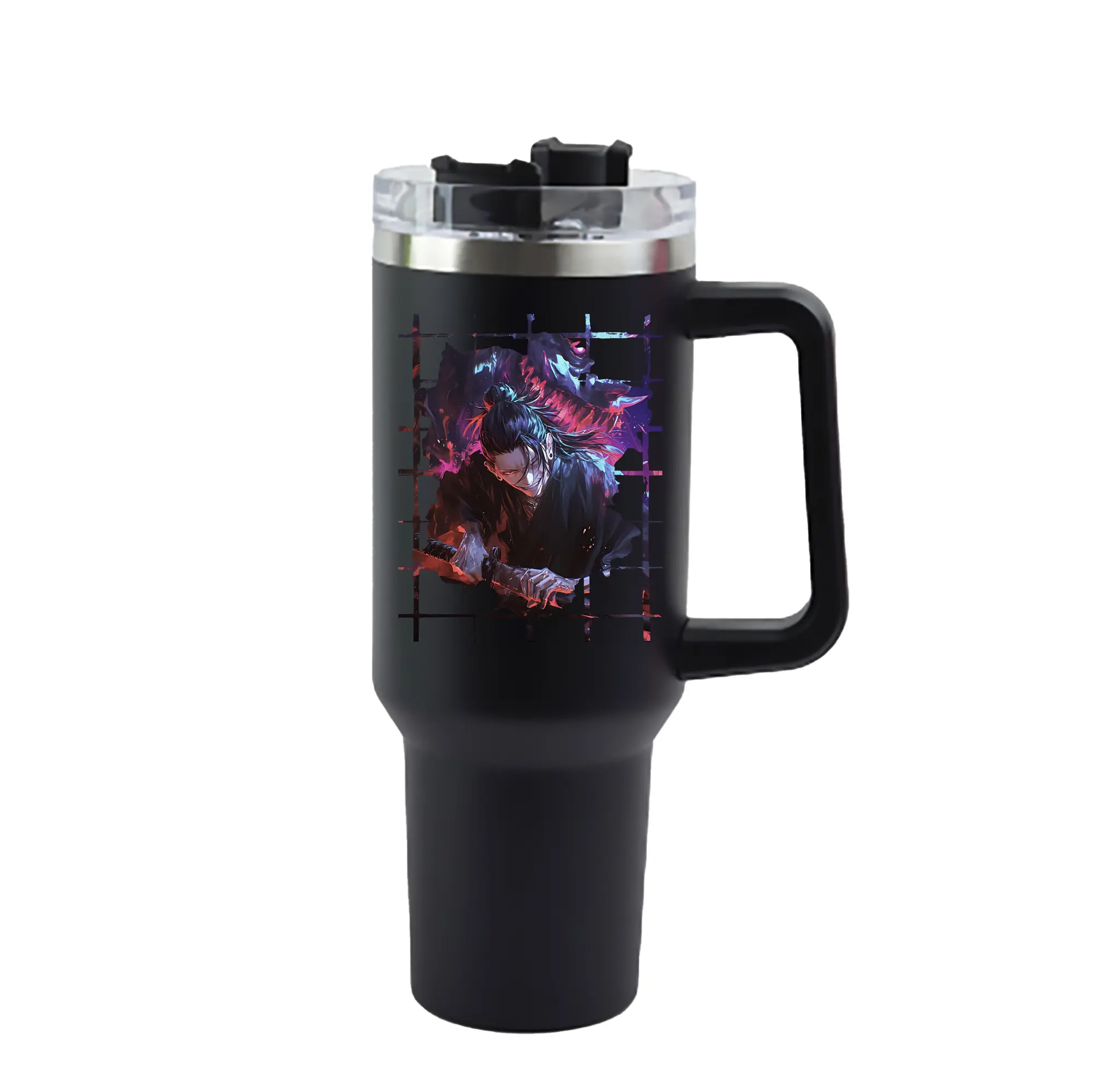 呪術廻戦 グッズ,夏油 傑 - 1200mL 車用タンブラー ・ クリスタルステッカー ・ 304ステンレス 内側 ・ 201ステンレス 外側 ・ 保温 保冷 ・ ハンドル&ストロー付き ・ 通勤 ドライブ アウトドア用