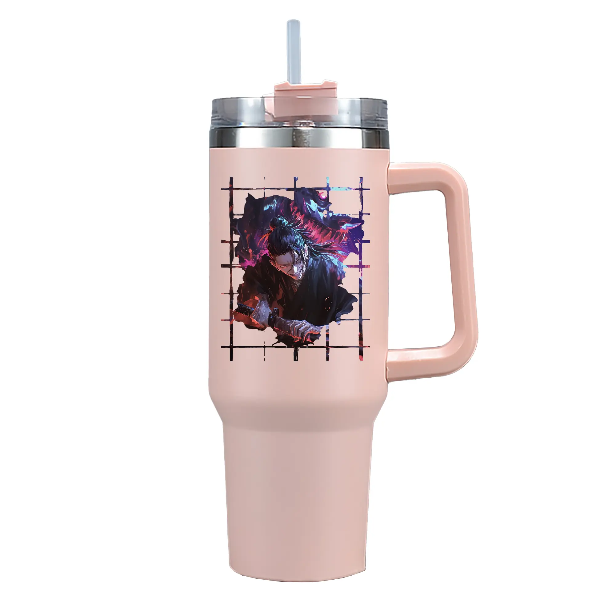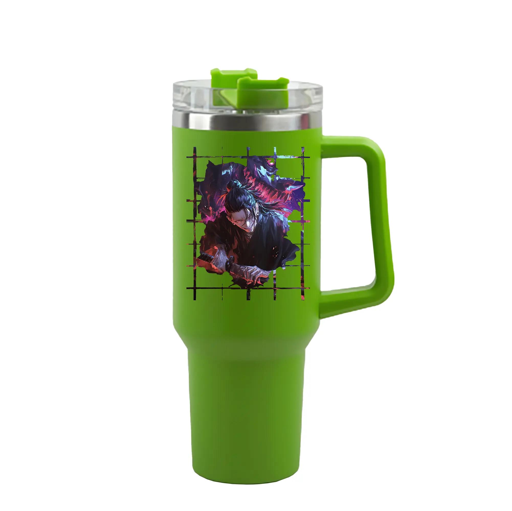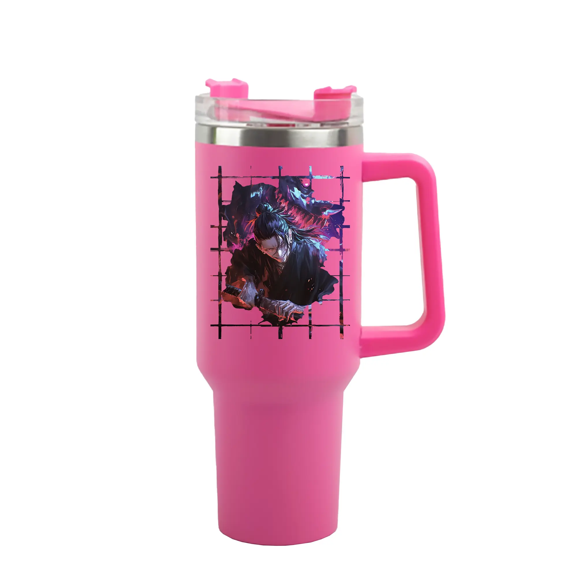 呪術廻戦 グッズ,夏油 傑 - 1200mL 車用タンブラー ・ クリスタルステッカー ・ 304ステンレス 内側 ・ 201ステンレス 外側 ・ 保温 保冷 ・ ハンドル&ストロー付き ・ 通勤 ドライブ アウトドア用