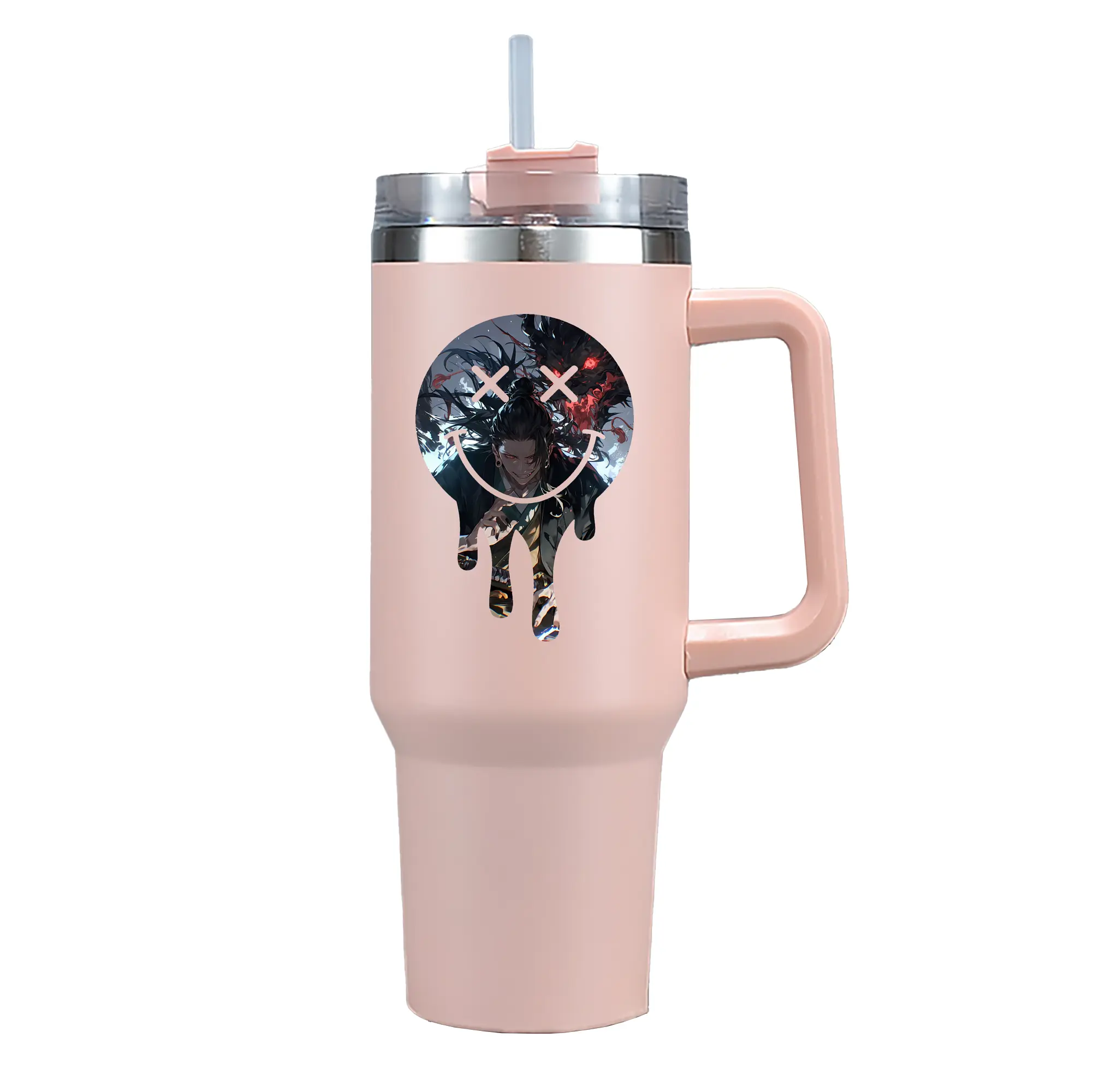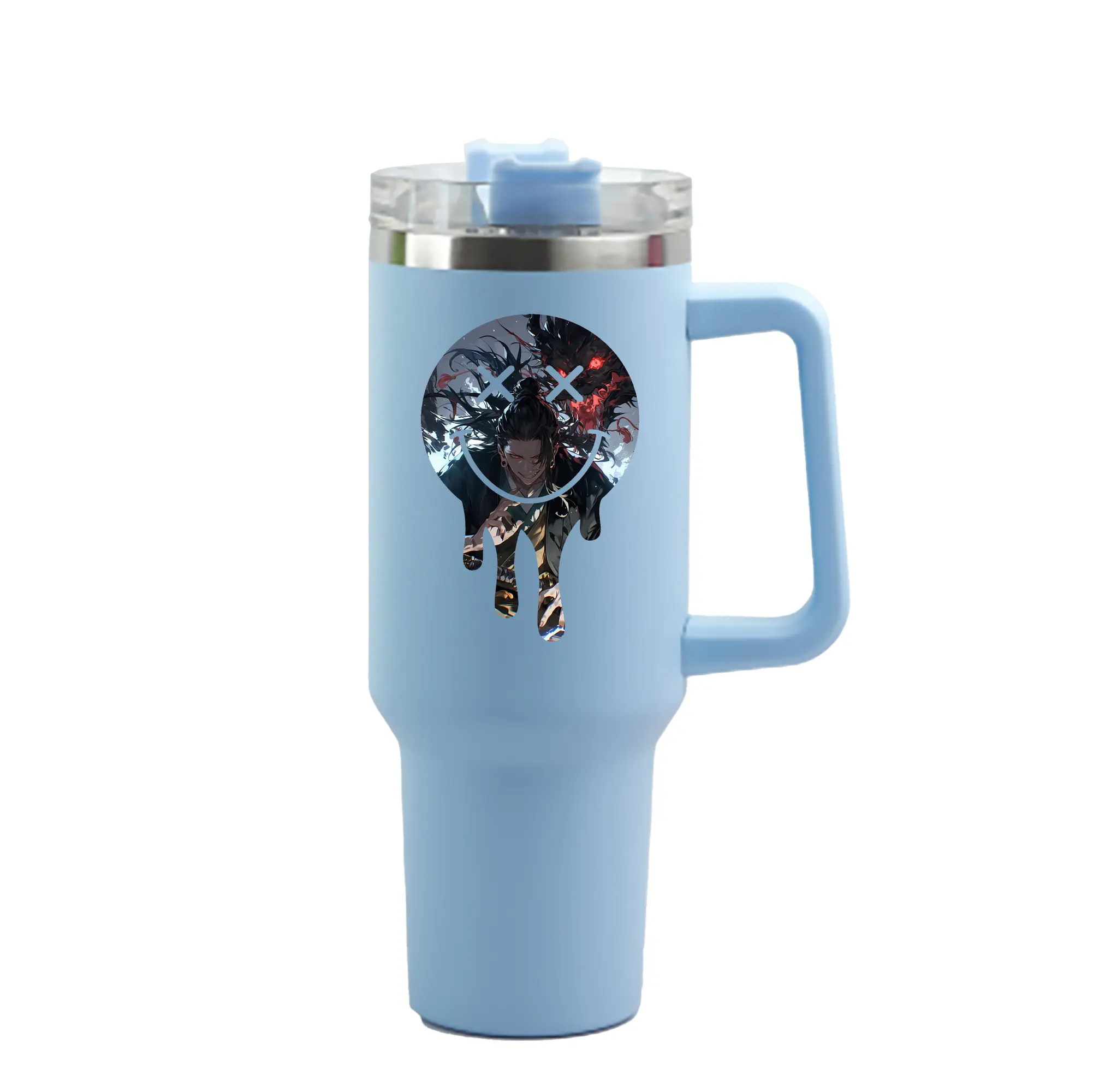 呪術廻戦 グッズ,夏油 傑 - 1200mL 車用タンブラー ・ クリスタルステッカー ・ 304ステンレス 内側 ・ 201ステンレス 外側 ・ 保温 保冷 ・ ハンドル&ストロー付き ・ 通勤 ドライブ アウトドア用