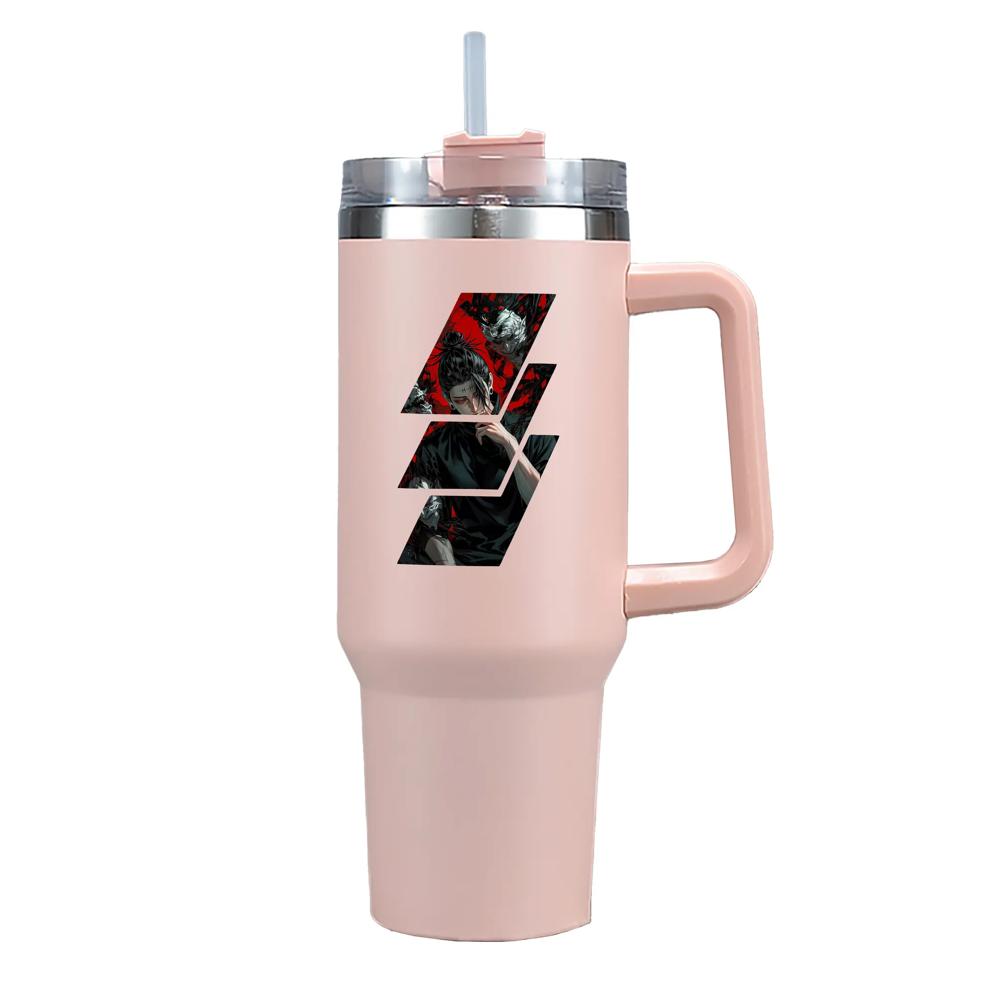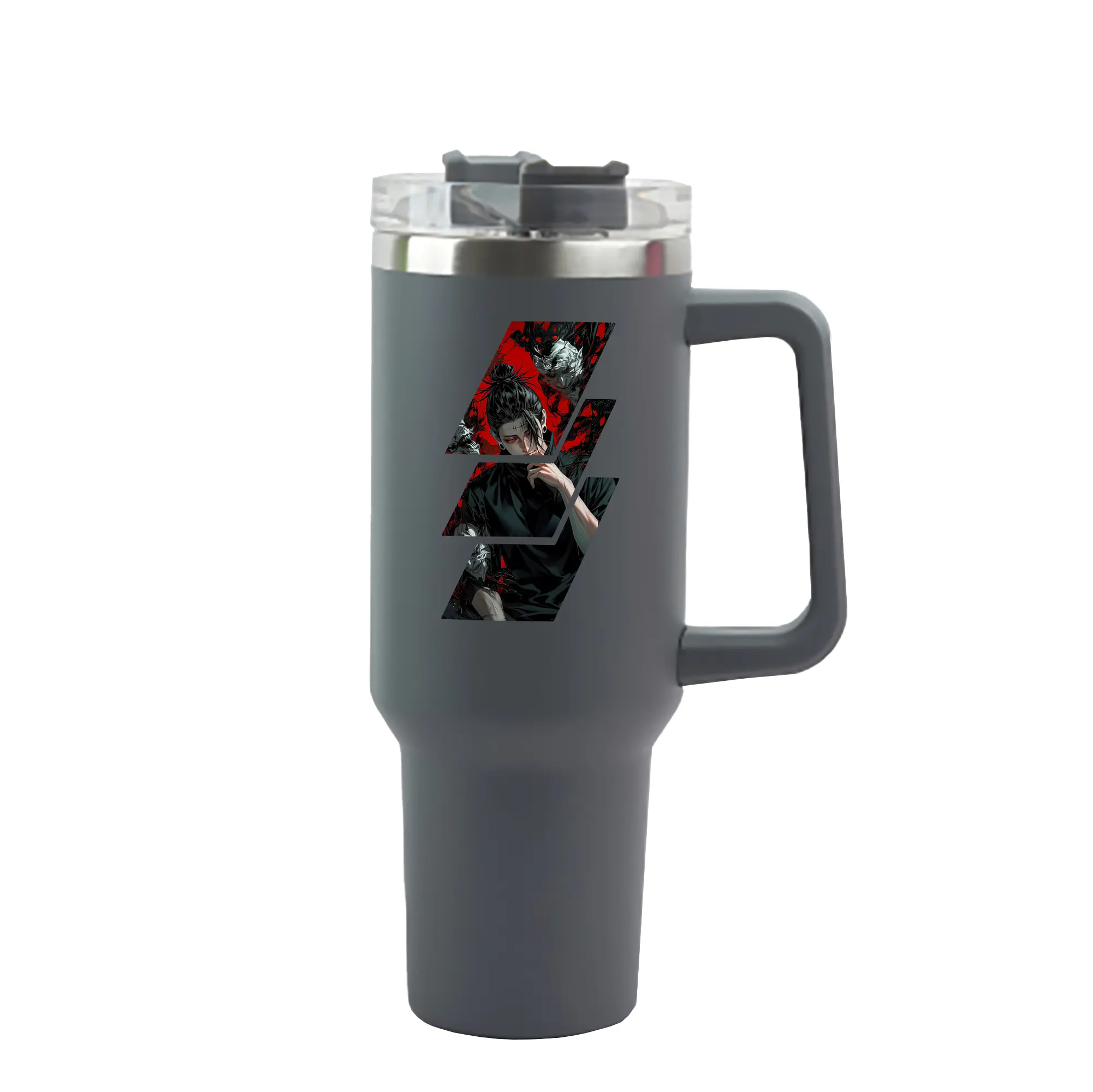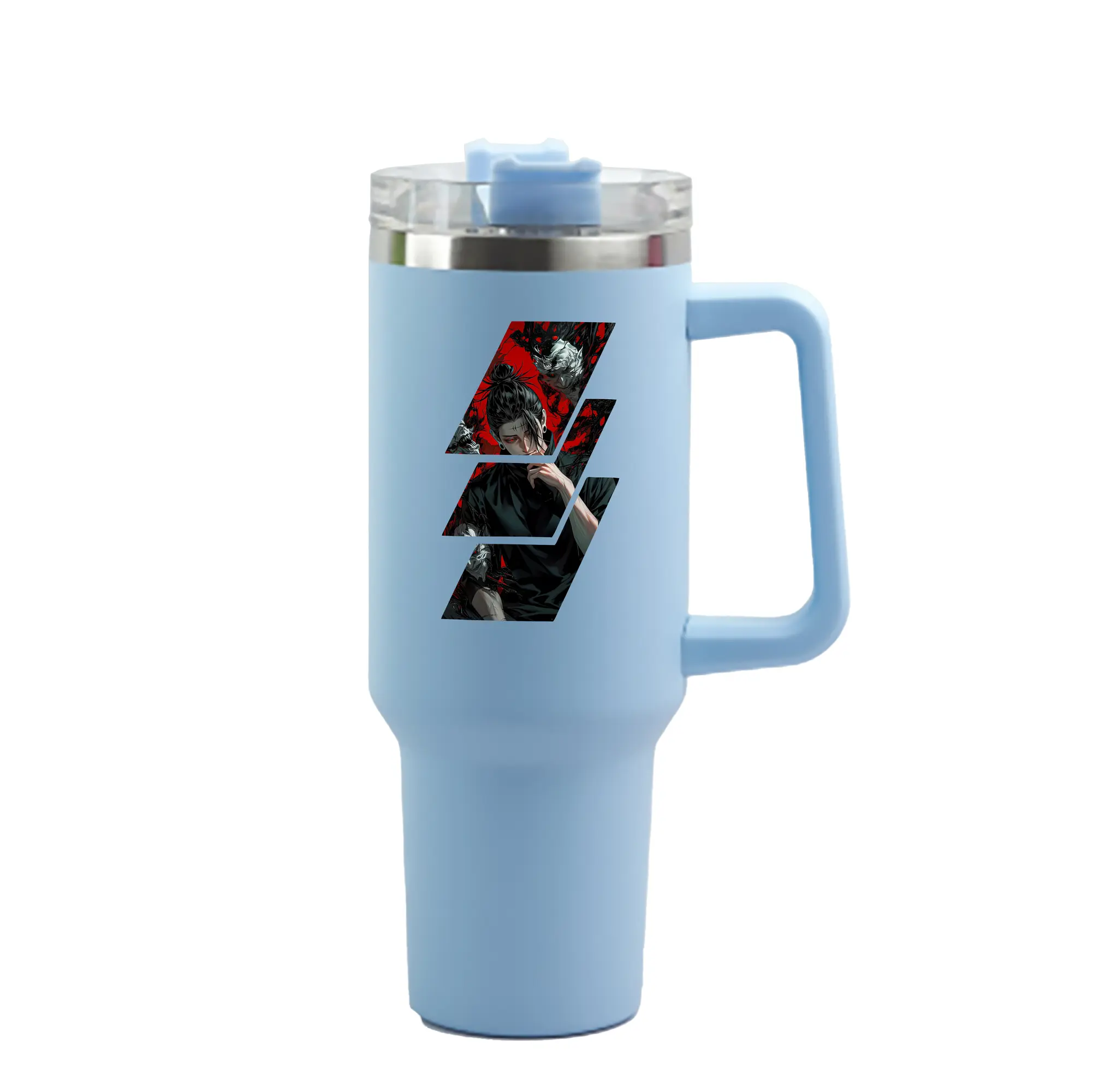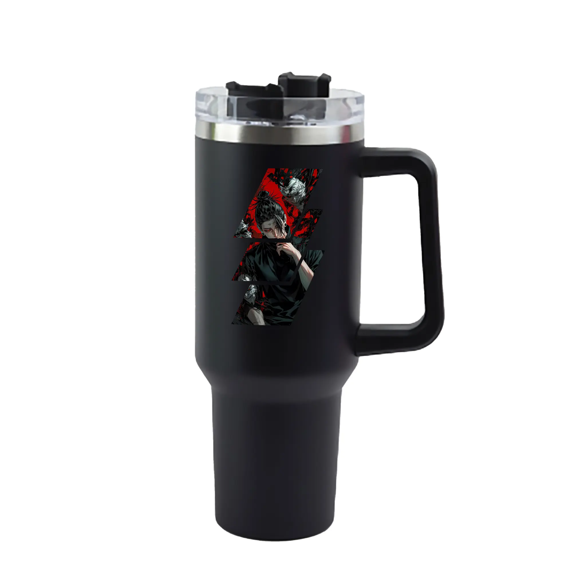 呪術廻戦 グッズ,夏油 傑 - 1200mL 車用タンブラー ・ クリスタルステッカー ・ 304ステンレス 内側 ・ 201ステンレス 外側 ・ 保温 保冷 ・ ハンドル&ストロー付き ・ 通勤 ドライブ アウトドア用