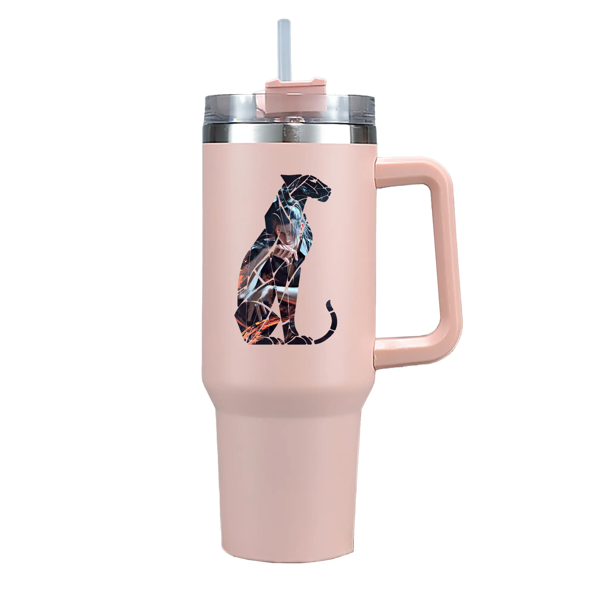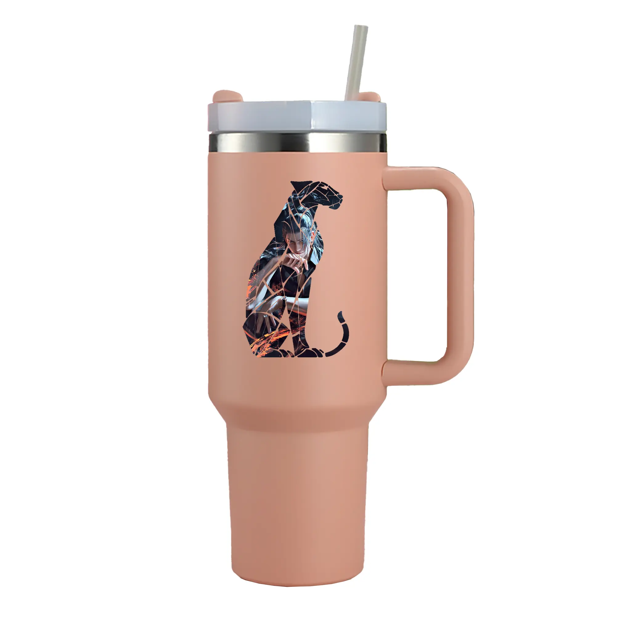 1200mL(40オンス)の大容量ハンドル付きカータンブラー。キラキラと輝くクリスタルステッカーデザインが、毎日の使用に華やかさをプラスします。食品グレード304ステンレスの内側と頑丈な201ステンレスの外側を採用し、耐久性・耐腐食性・安全性を兼ね備えています。