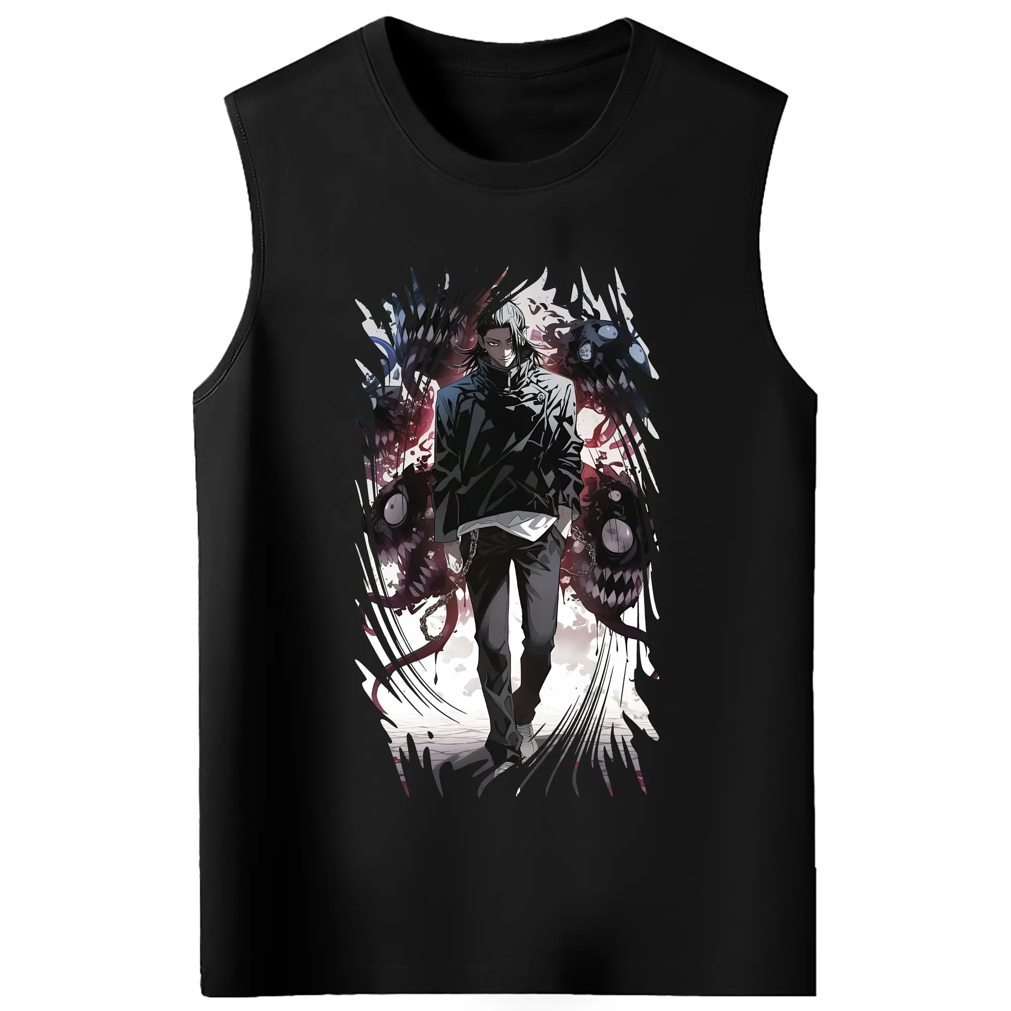 呪術廻戦 グッズ,夏油 傑 - コットン100% タンクトップ ・ フロントプリント ・ タイトフィット ・ 快適 通気性 ・ スポーツ カジュアル 散歩用