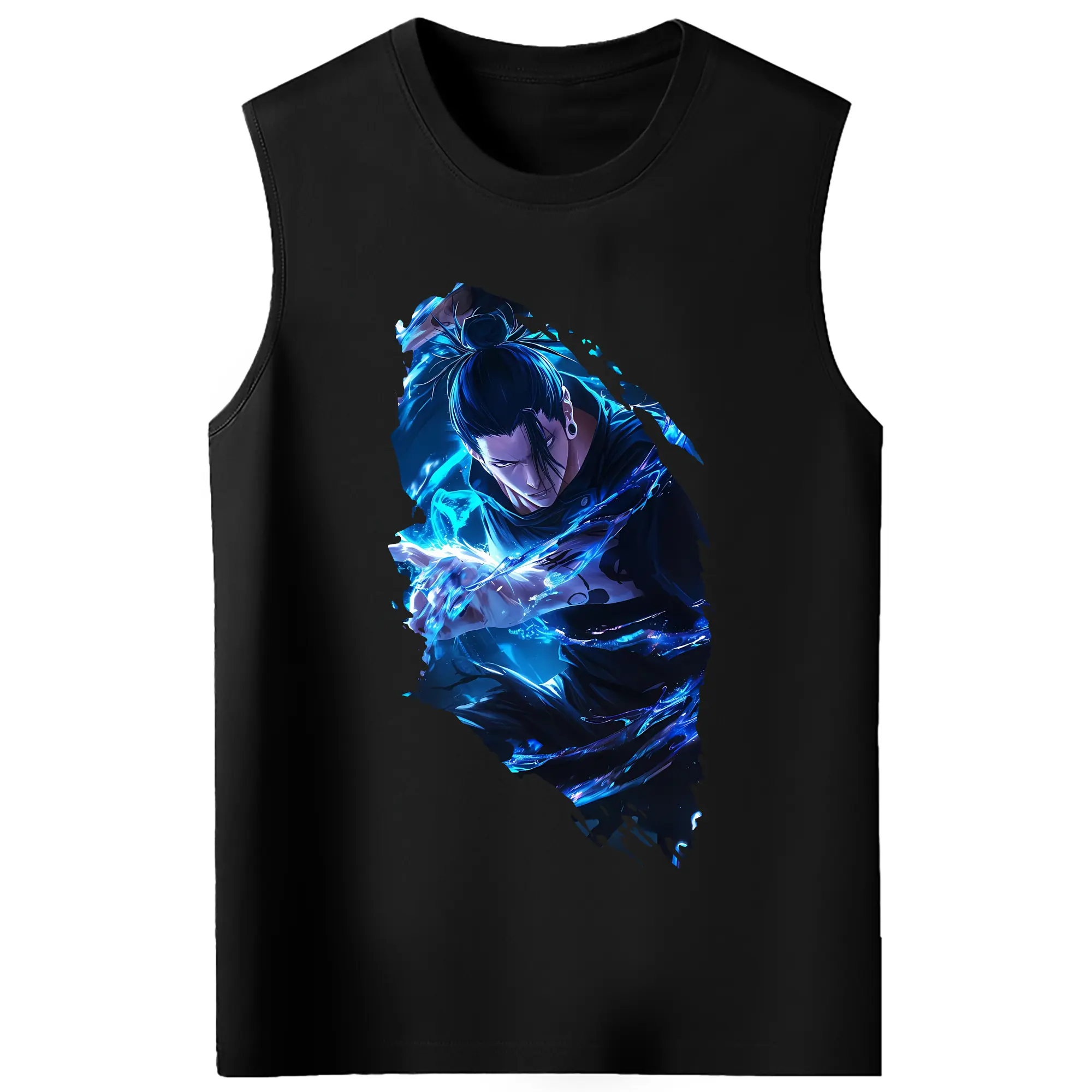 呪術廻戦 グッズ,夏油 傑 - コットン100% タンクトップ ・ フロントプリント ・ タイトフィット ・ 快適 通気性 ・ スポーツ カジュアル 散歩用