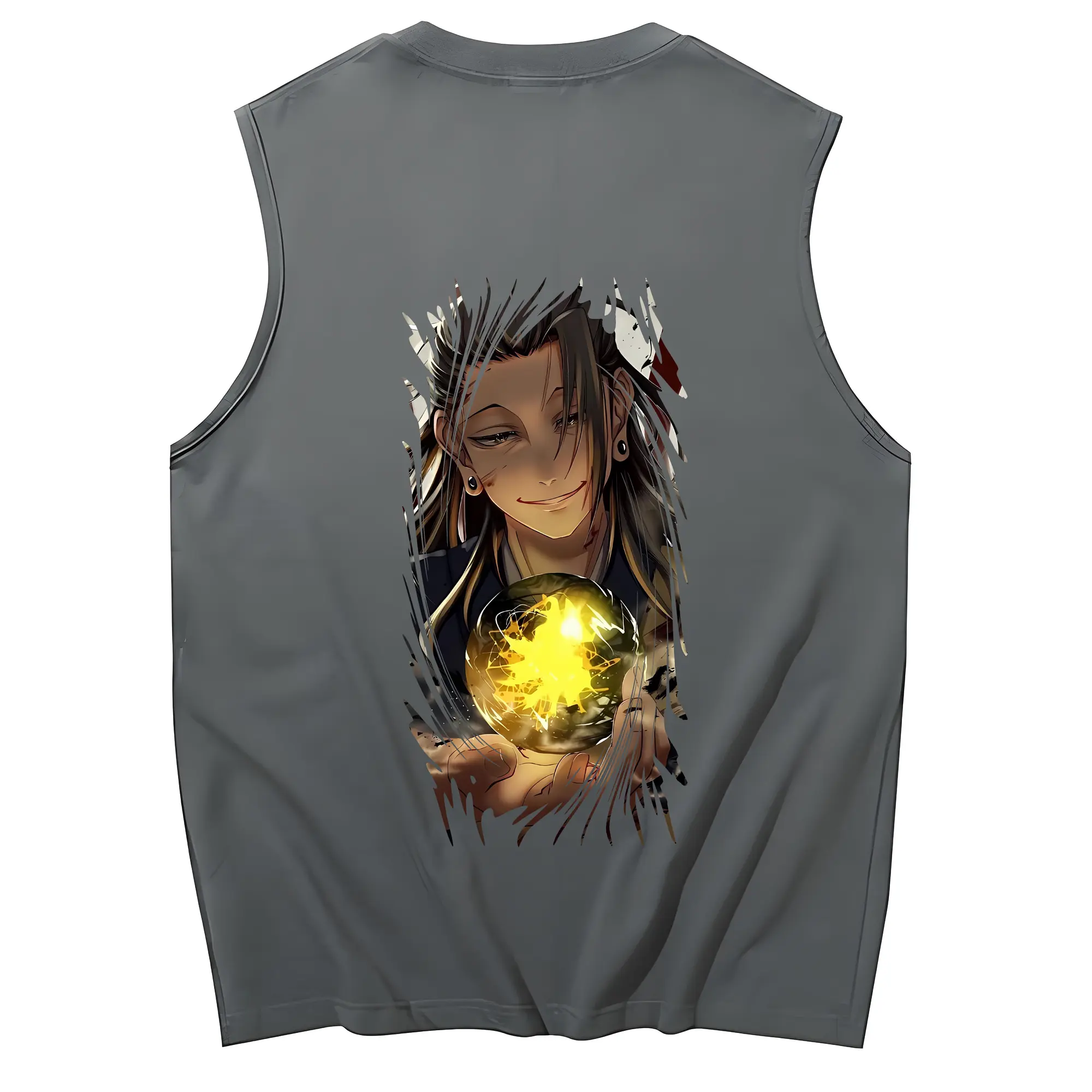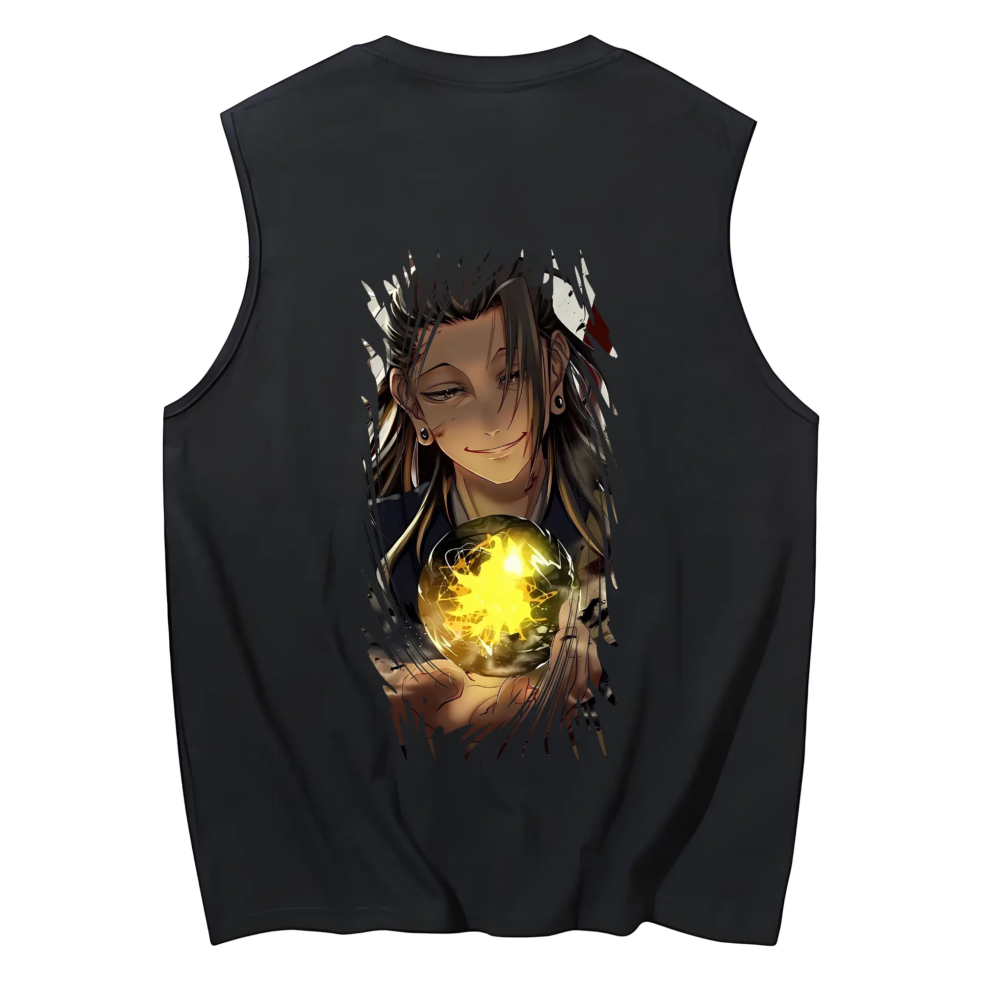 呪術廻戦 グッズ,夏油 傑 - コットン100% タンクトップ ・ 背面プリント ・ タイトシルエット ・ 快適 通気性 ・ スポーツ カジュアル 散歩用