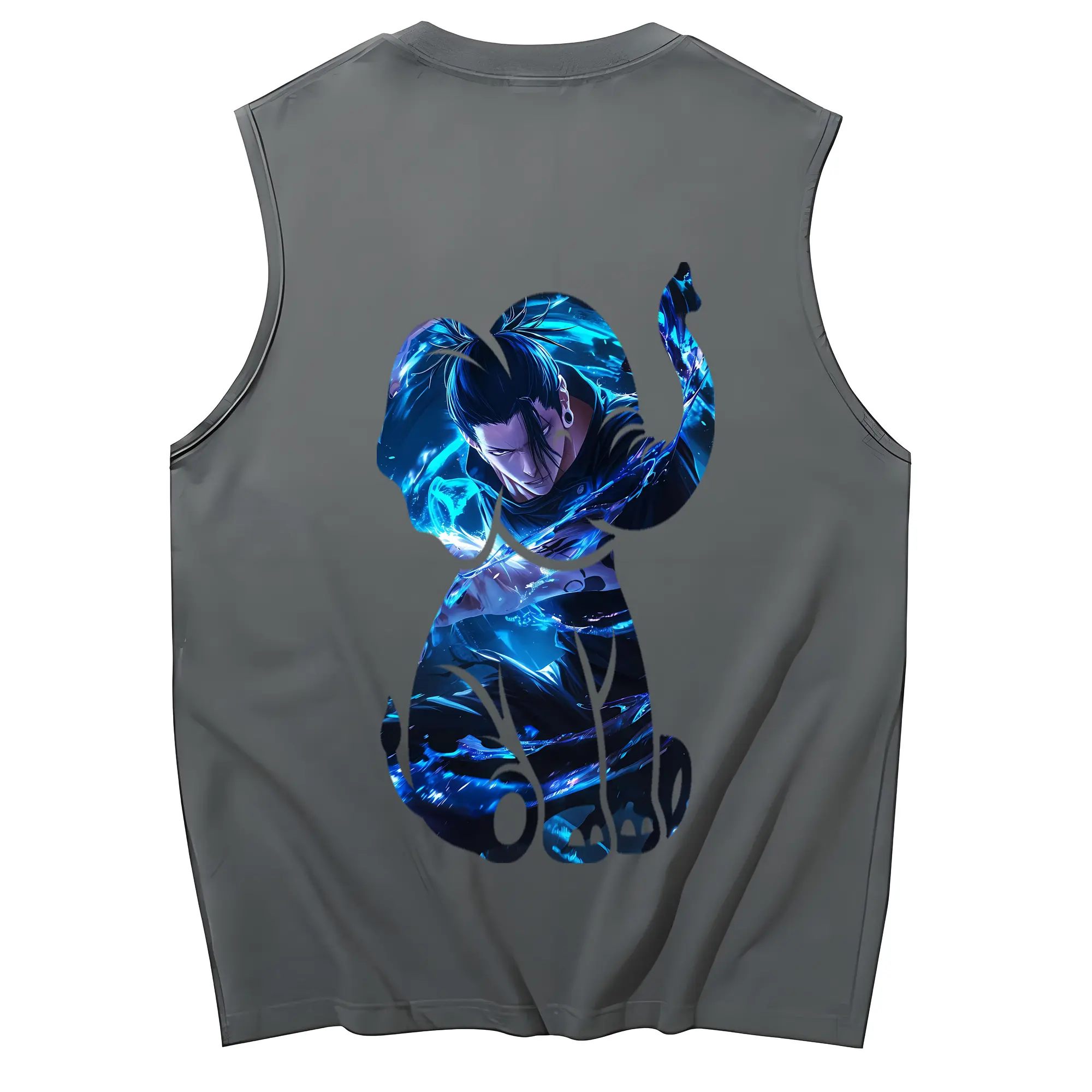 呪術廻戦 グッズ,夏油 傑 - コットン100% タンクトップ ・ 背面プリント ・ タイトシルエット ・ 快適 通気性 ・ スポーツ カジュアル 散歩用