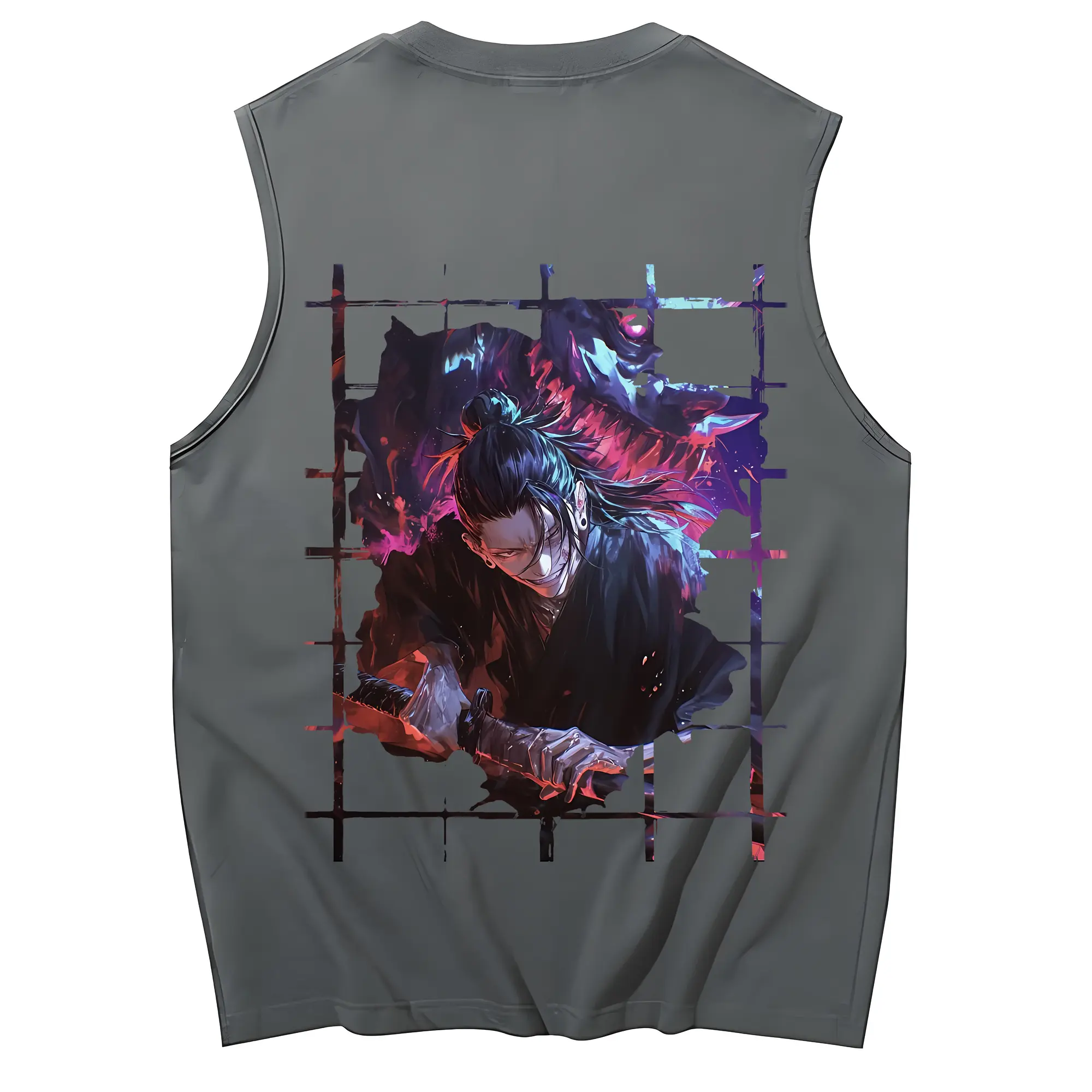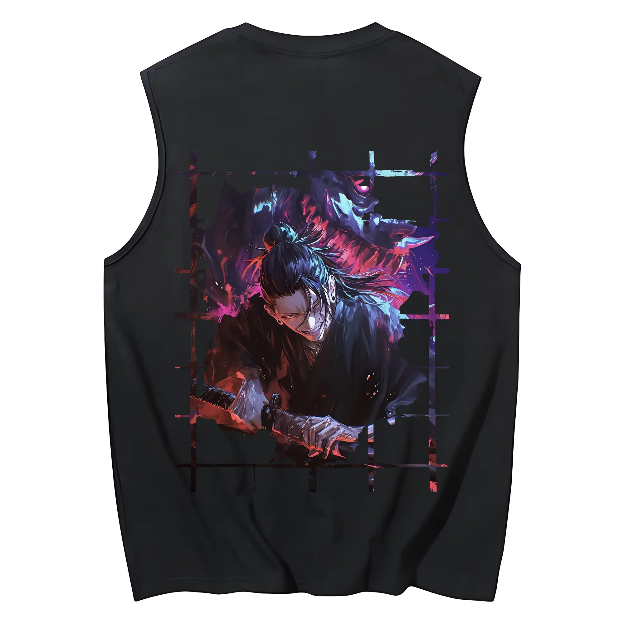 呪術廻戦 グッズ,夏油 傑 - コットン100% タンクトップ ・ 背面プリント ・ タイトシルエット ・ 快適 通気性 ・ スポーツ カジュアル 散歩用