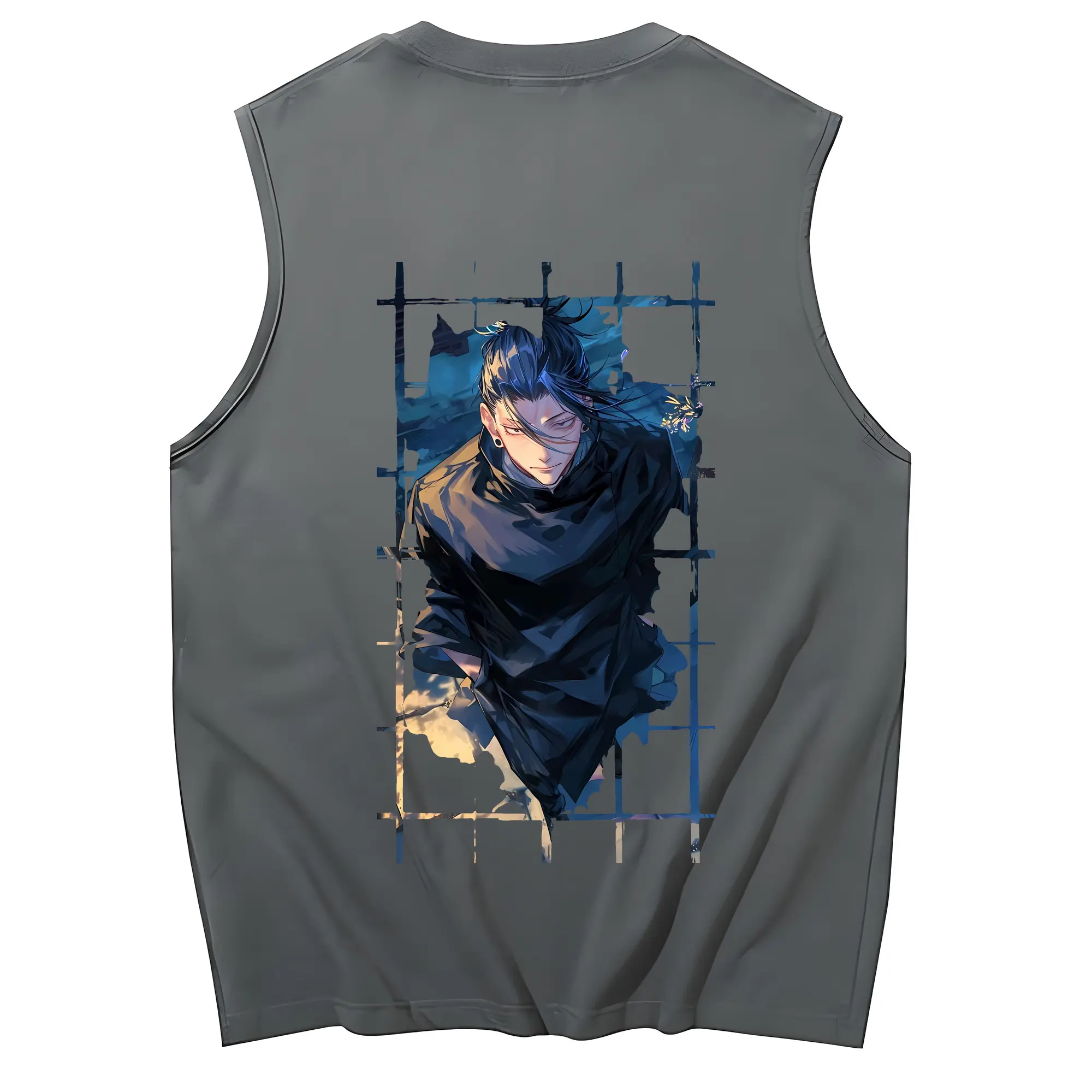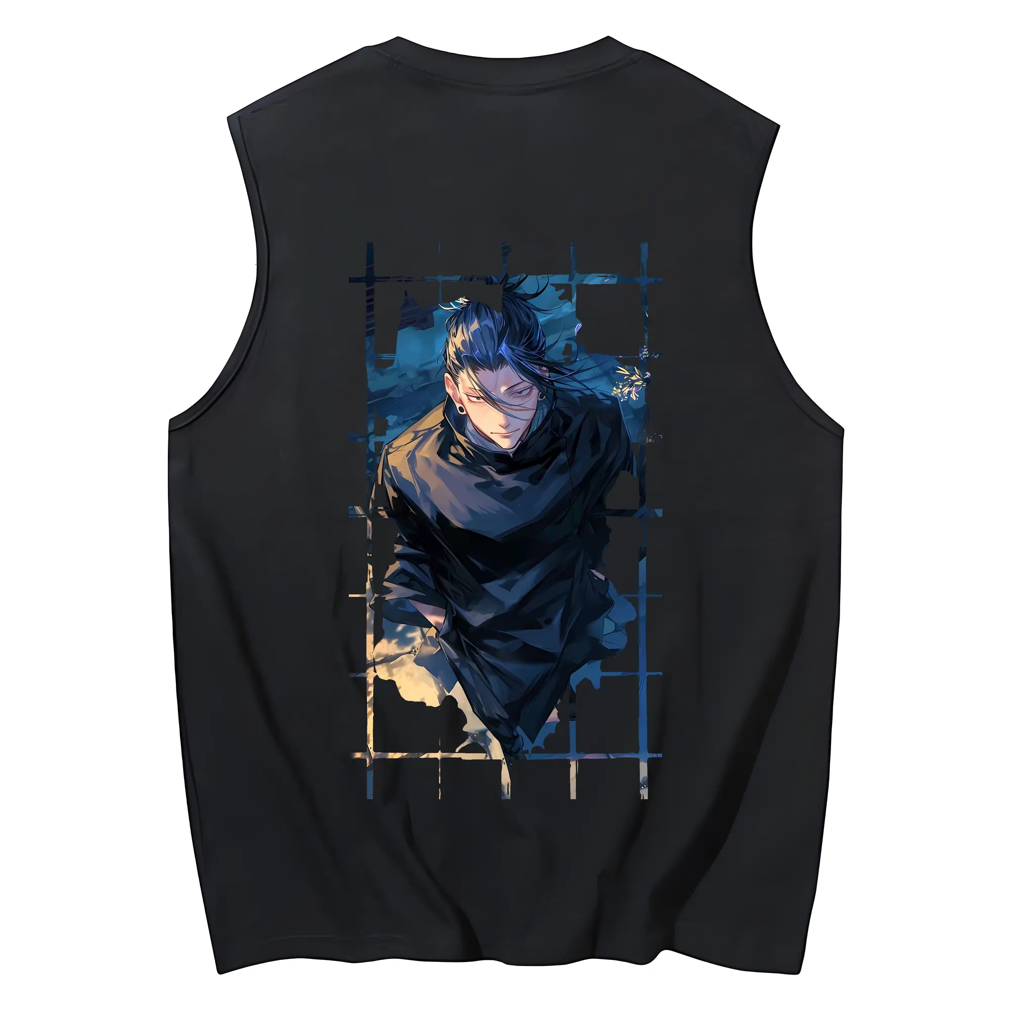 呪術廻戦 グッズ,夏油 傑 - コットン100% タンクトップ ・ 背面プリント ・ タイトシルエット ・ 快適 通気性 ・ スポーツ カジュアル 散歩用