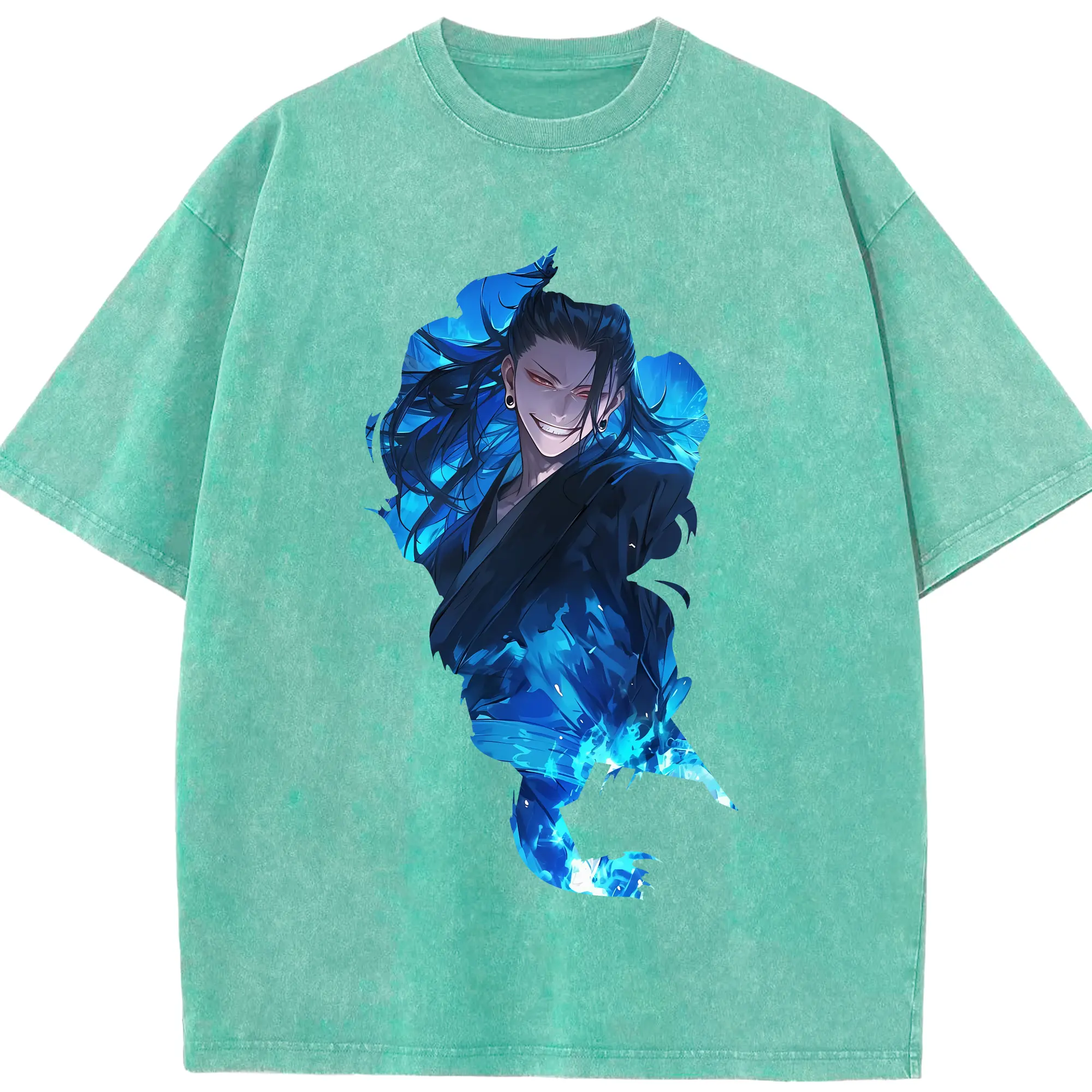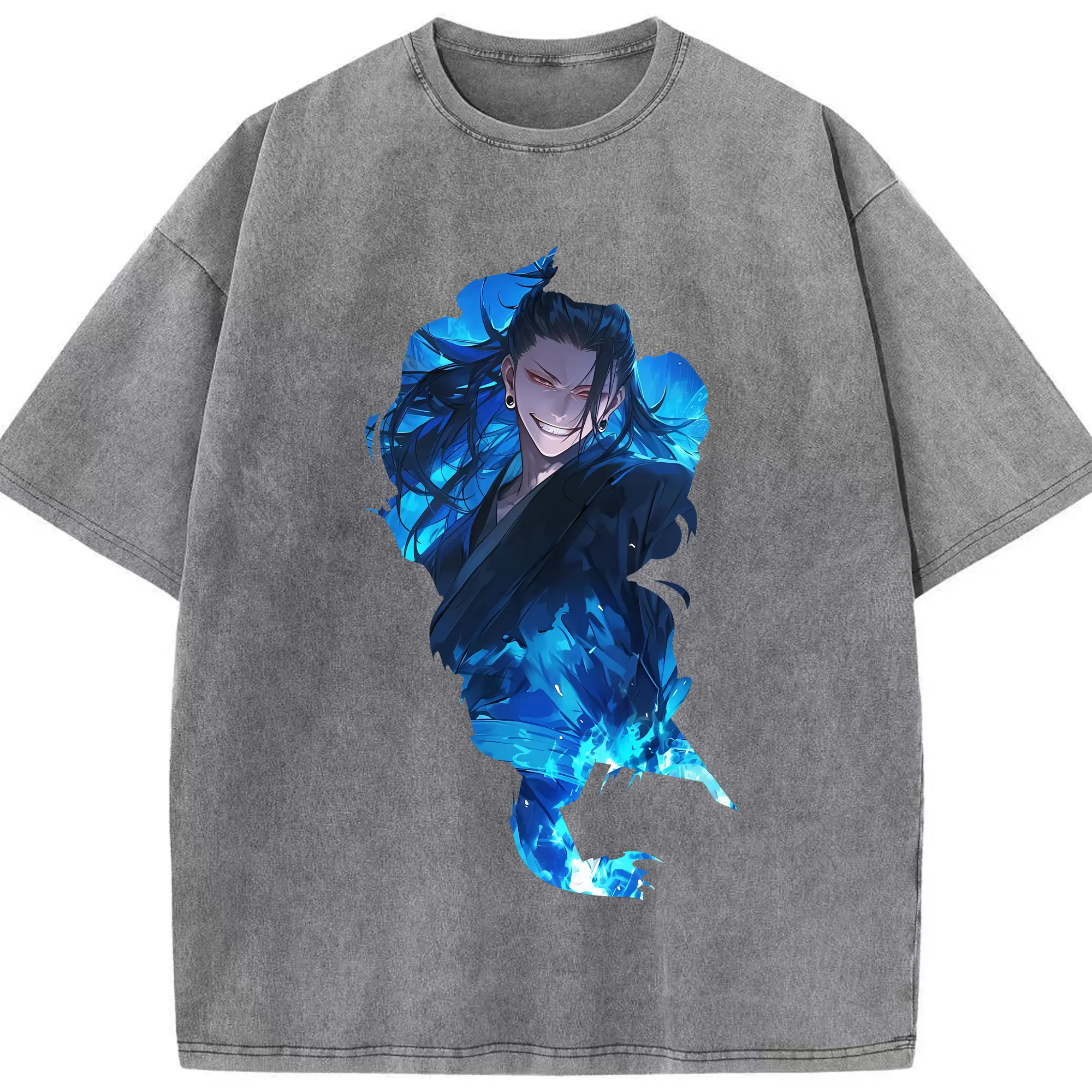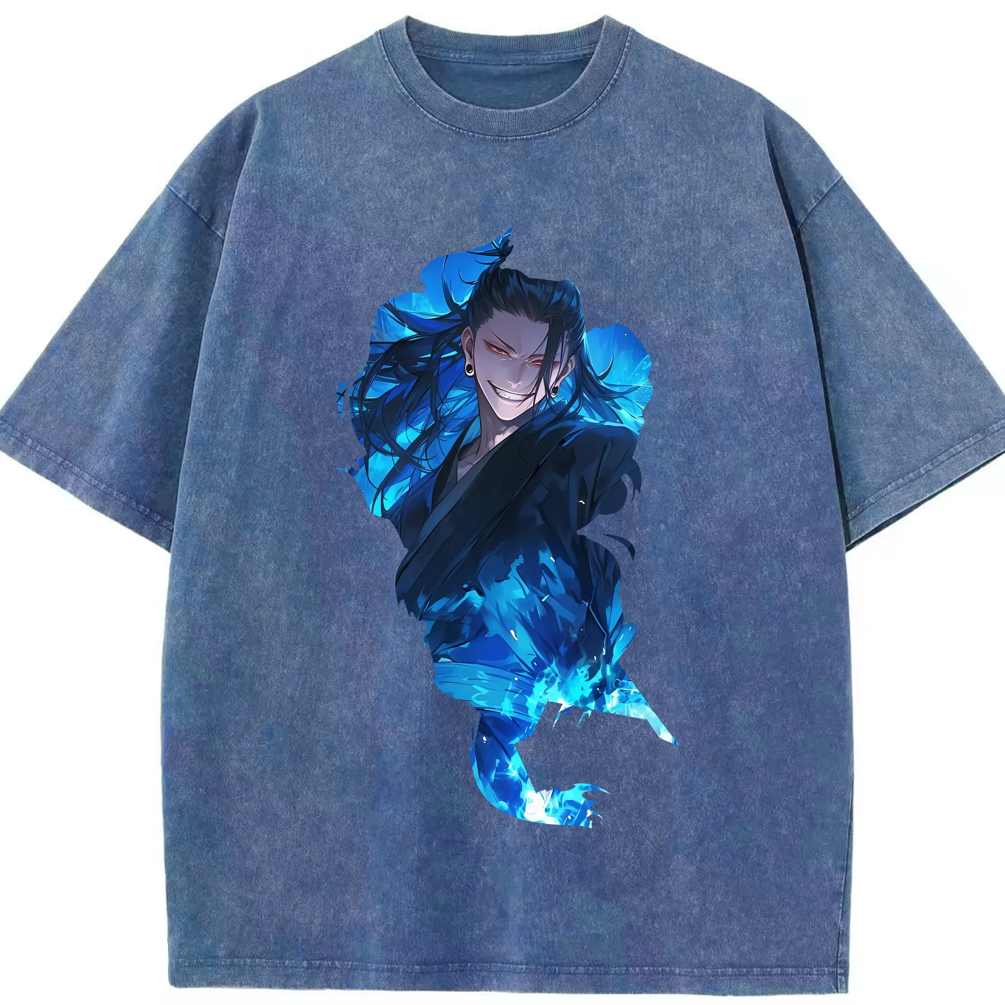 呪術廻戦 グッズ,五条 悟 - 綿100% ヴィンテージ風 半袖Tシャツ ・ フロントプリント ・ 柔らか肌触り ・ 通気性 快適 ・ スポーツ カジュアル 外出用
