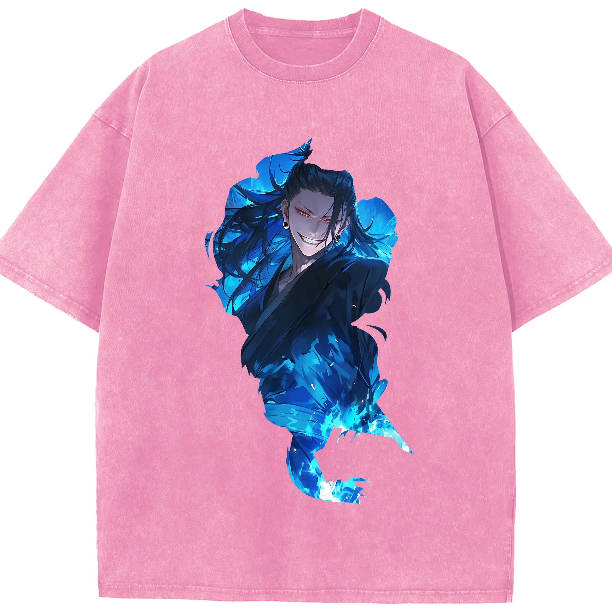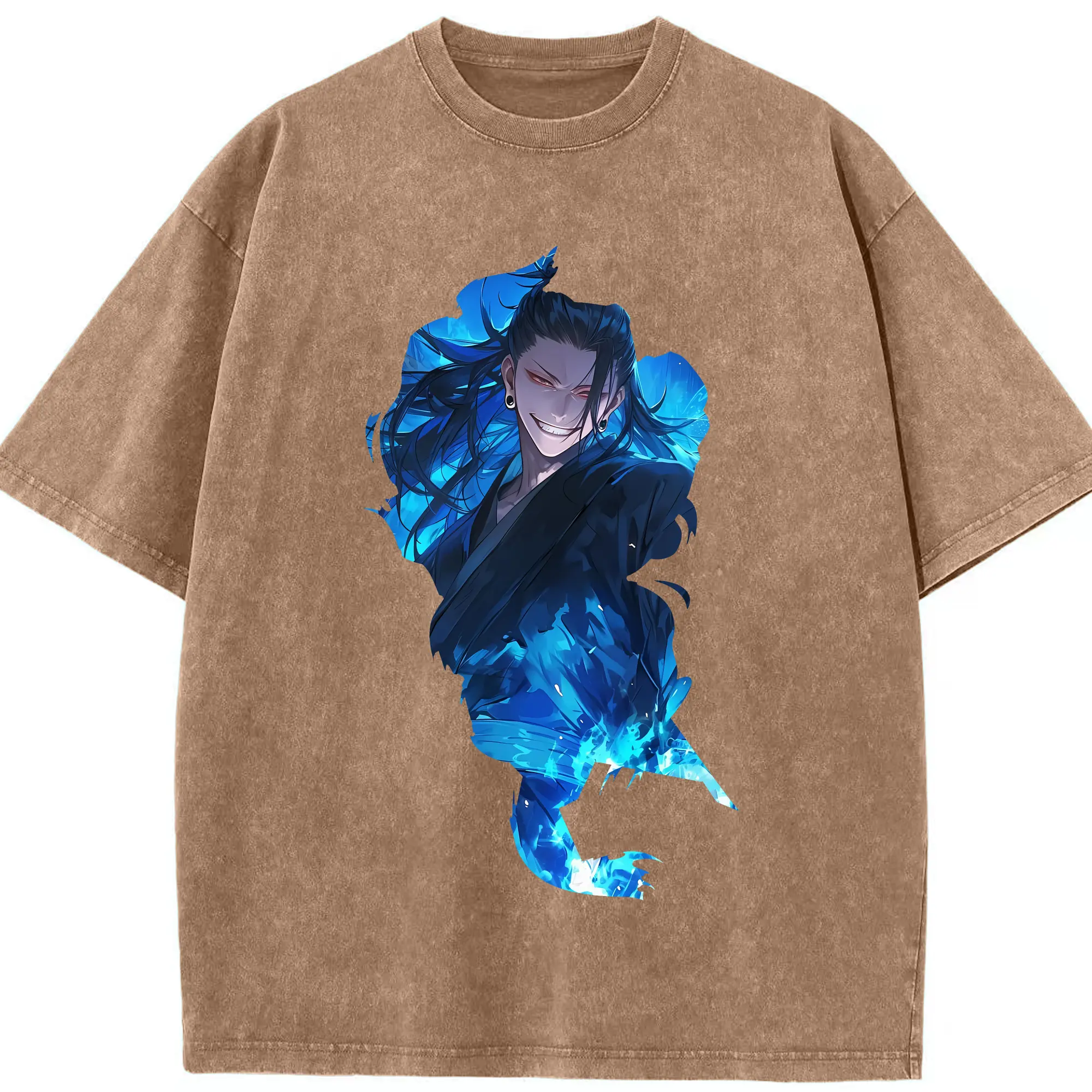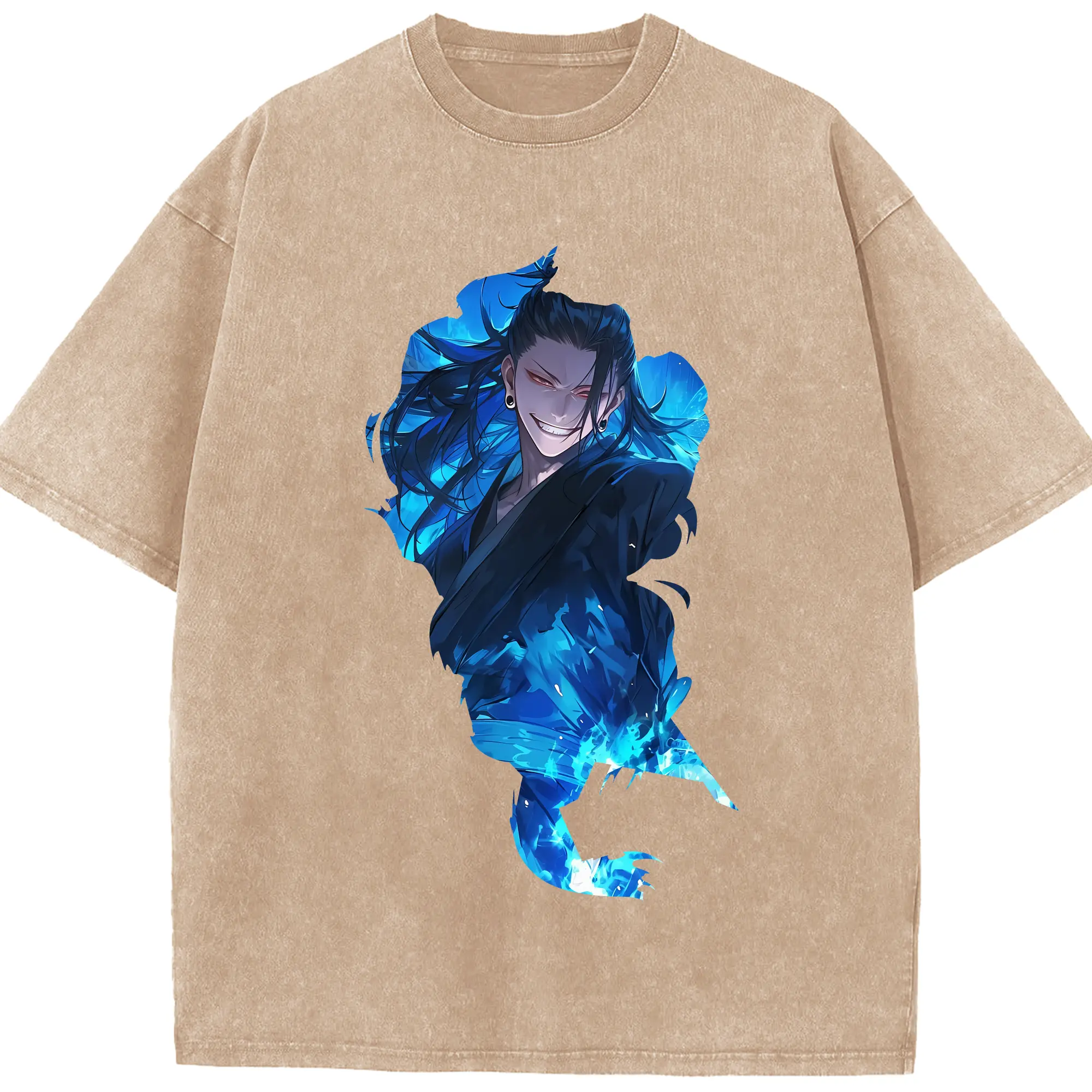 呪術廻戦 グッズ,五条 悟 - 綿100% ヴィンテージ風 半袖Tシャツ ・ フロントプリント ・ 柔らか肌触り ・ 通気性 快適 ・ スポーツ カジュアル 外出用