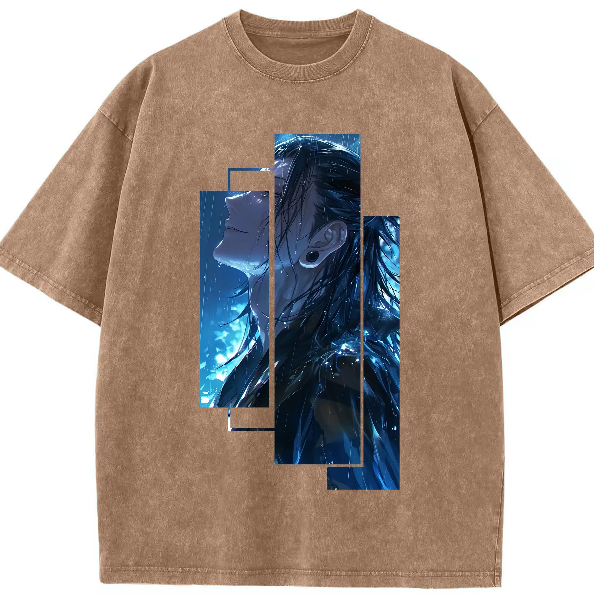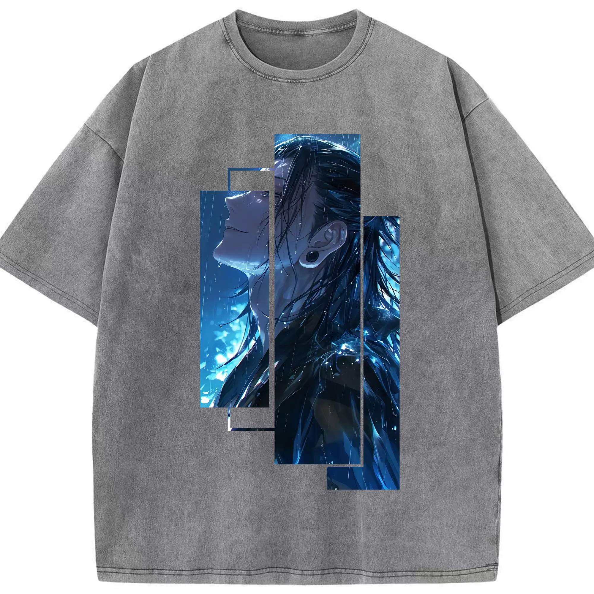 鬼滅の刃 グッズ,不死川 実弥 - 綿100% ヴィンテージ風 半袖Tシャツ ・ フロントプリント ・ 柔らか肌触り ・ 通気性 快適 ・ スポーツ カジュアル 外出用