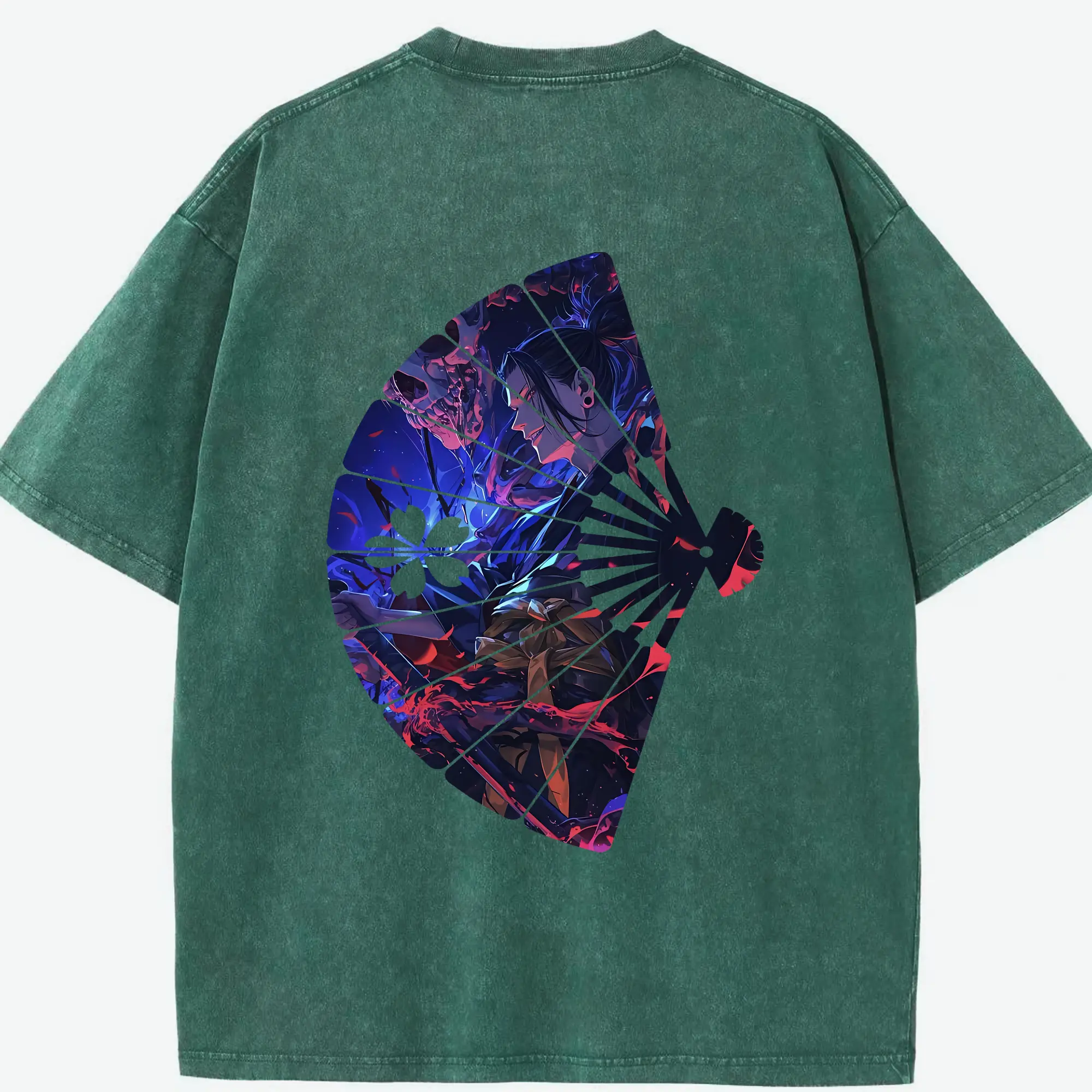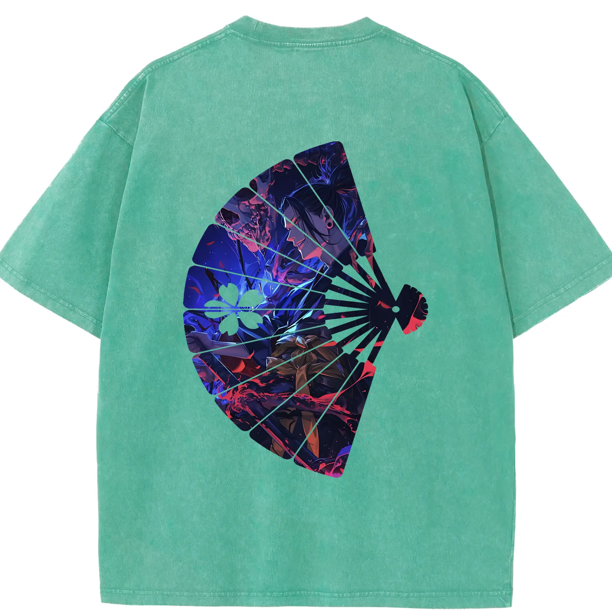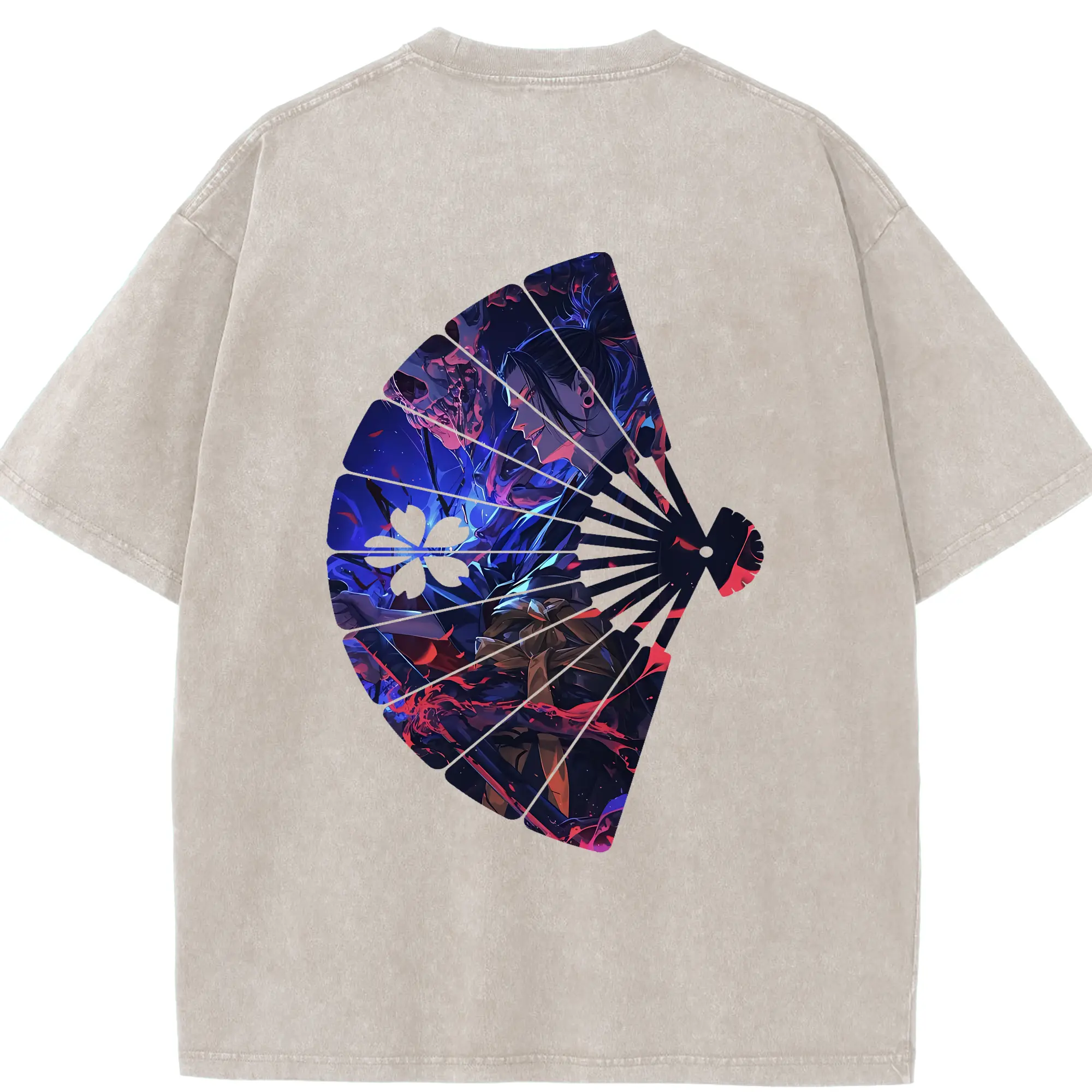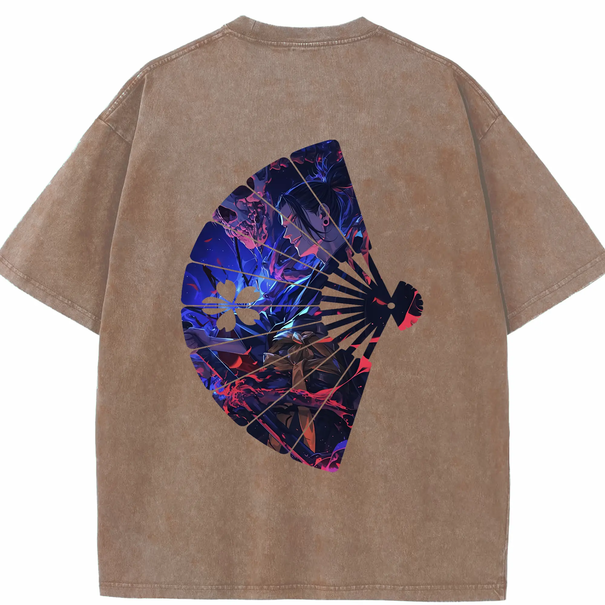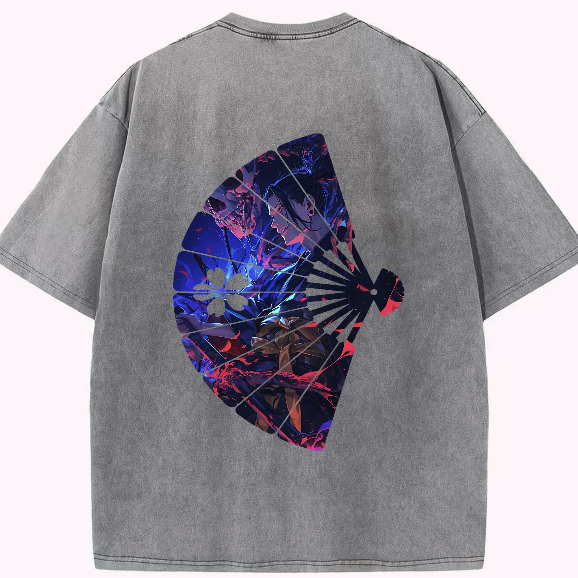ナルト グッズ 綱手 - 綿100% ヴィンテージ風 半袖Tシャツ ・ 背面プリント ・ 柔らか肌触り ・ 通気性 快適 ・ スポーツ カジュアル 外出用