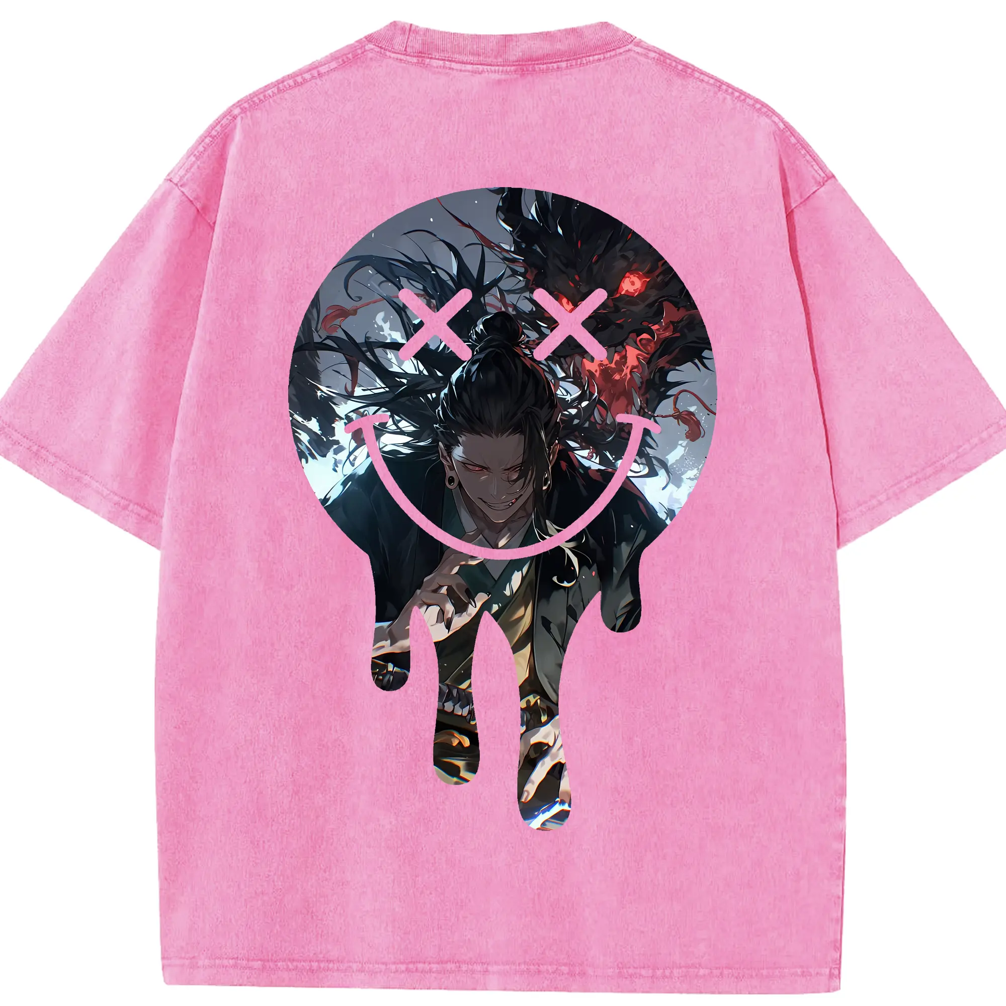 鬼滅の刃 グッズ,童磨 - 綿100% ヴィンテージ風 半袖Tシャツ ・ 背面プリント ・ 柔らか肌触り ・ 通気性 快適 ・ スポーツ カジュアル 外出用