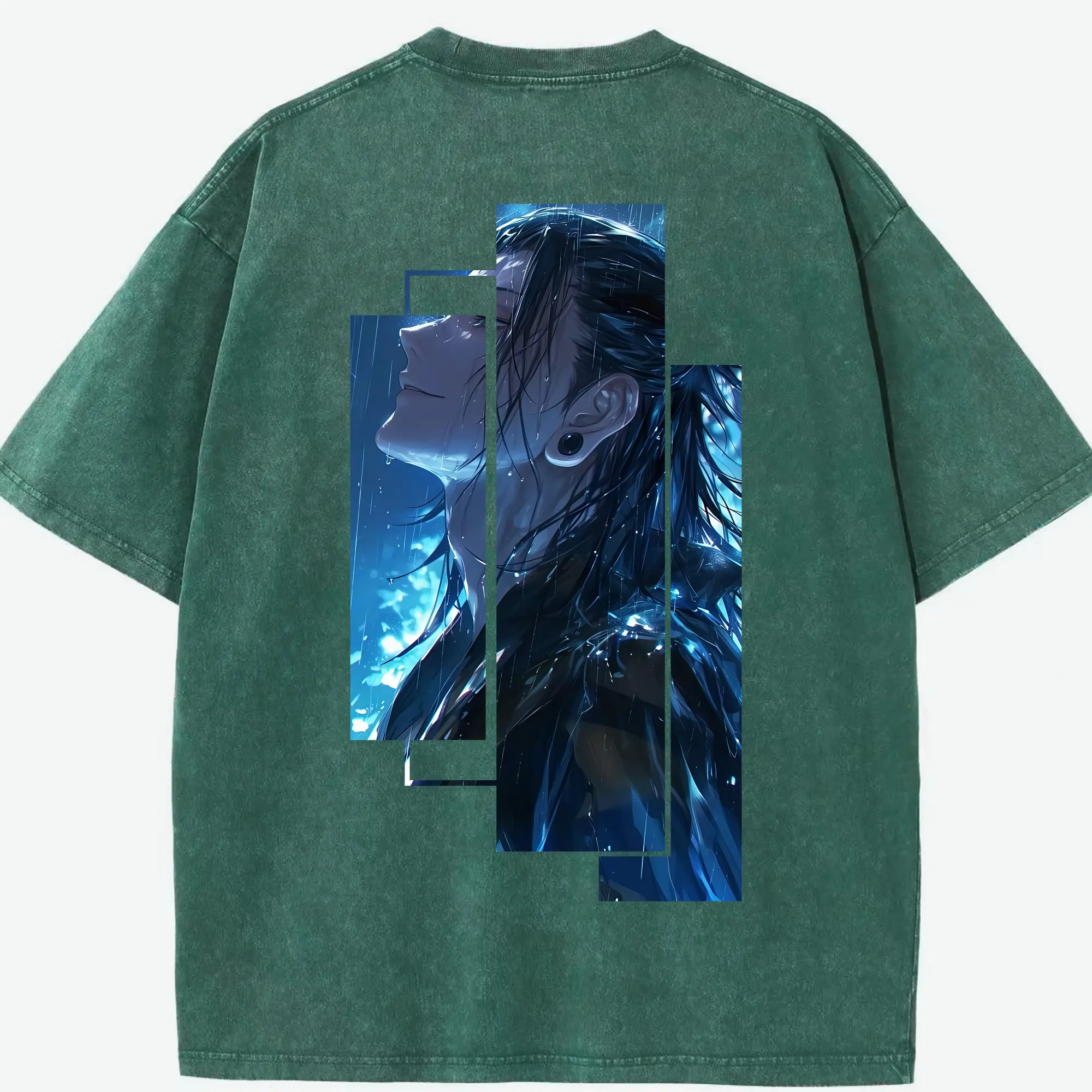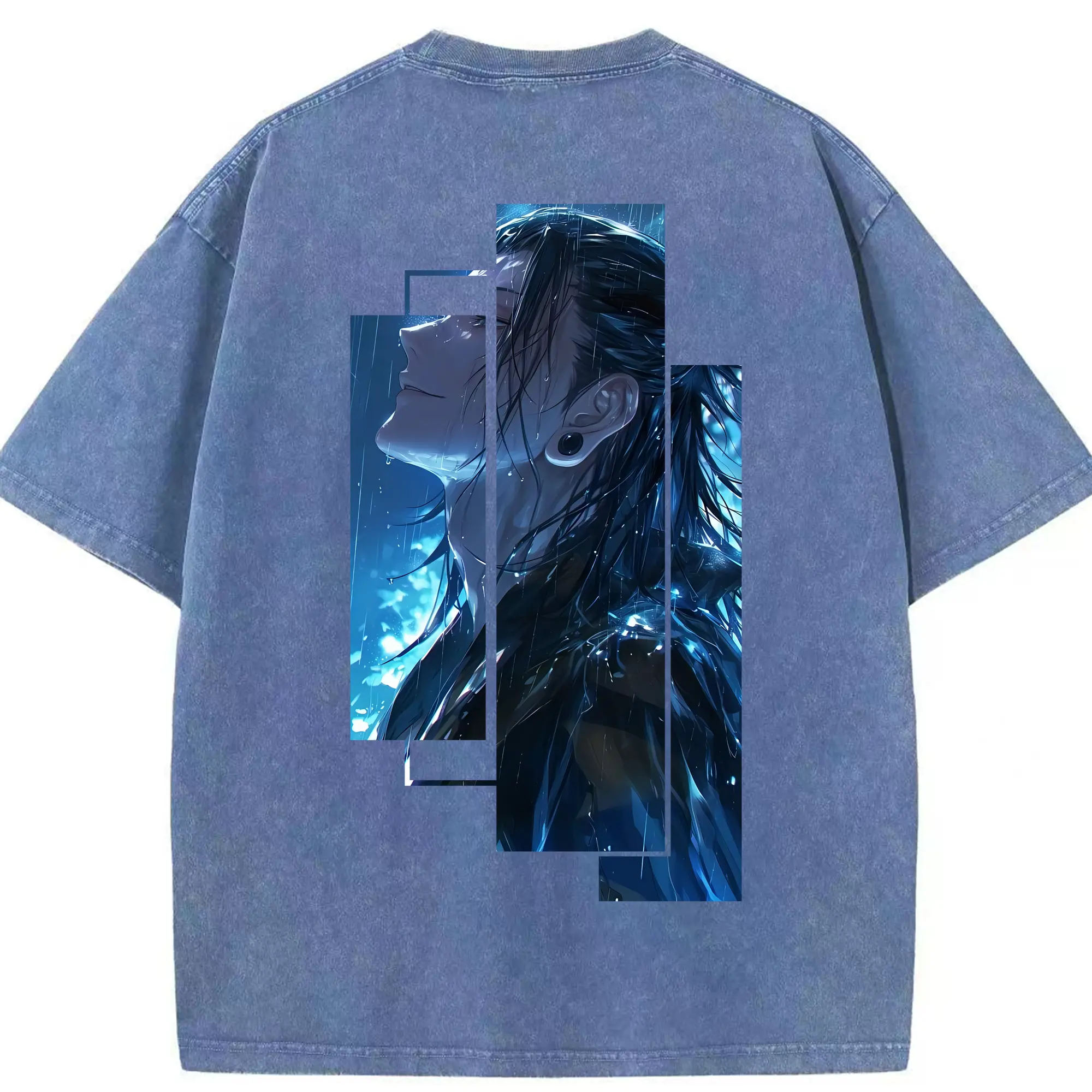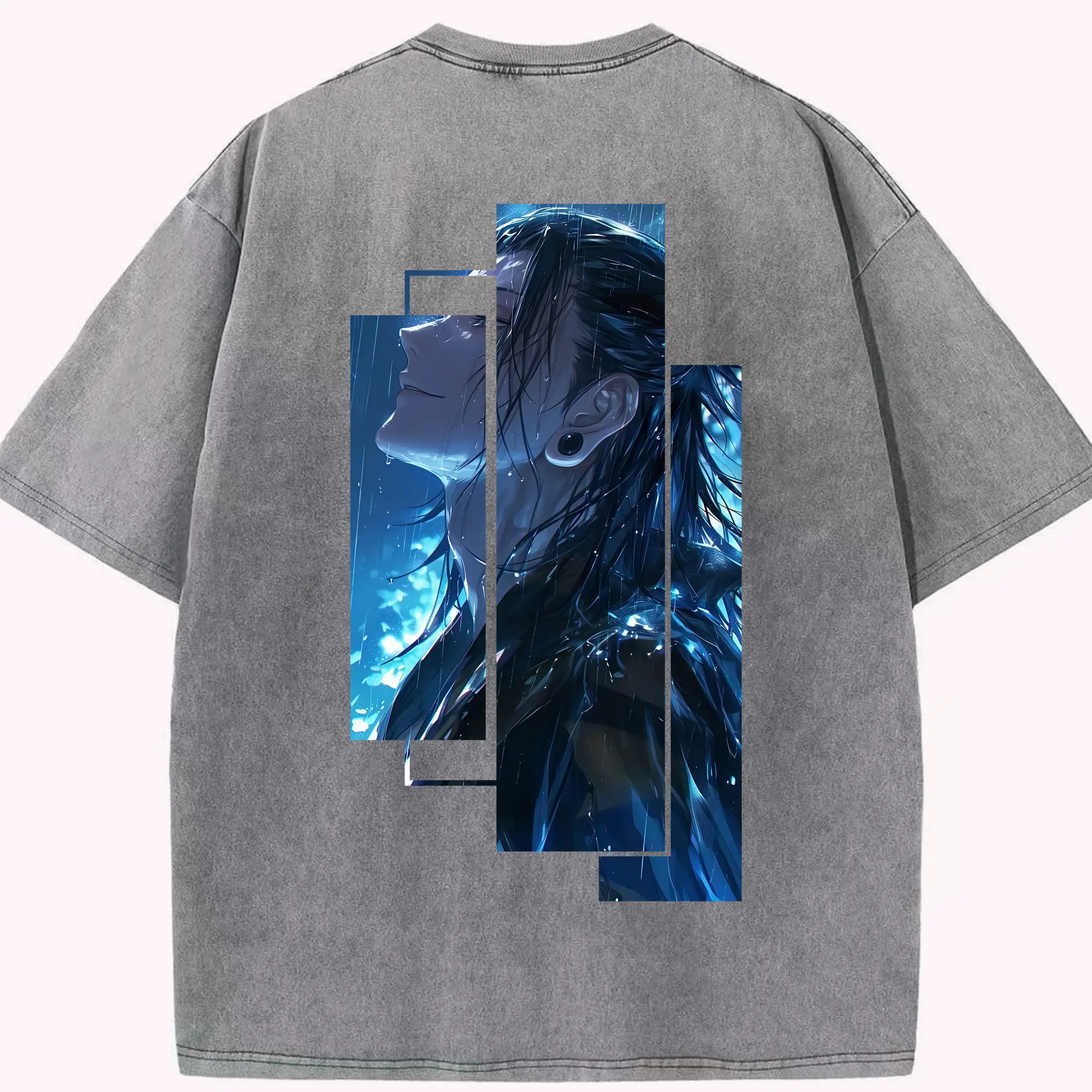ハンター×ハンター グッズ キルア=ゾルディック - 綿100% ヴィンテージ風 半袖Tシャツ ・ 背面プリント ・ 柔らか肌触り ・ 通気性 快適 ・ スポーツ カジュアル 外出用
