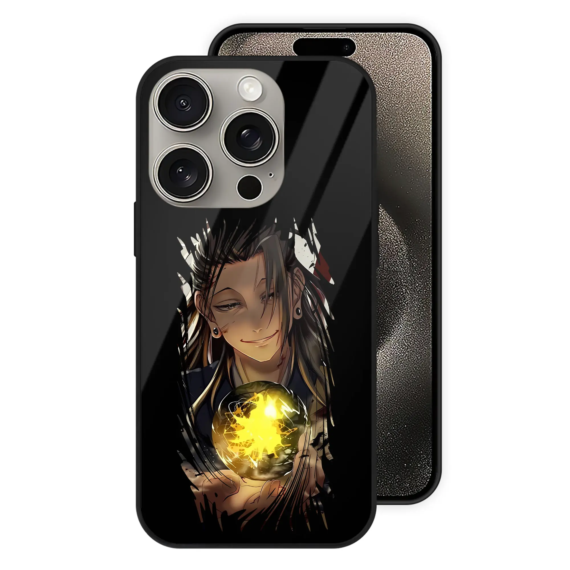 呪術廻戦 グッズ,夏油 傑 - IPhone15Pro対応 ・ スマホケース ・ 背面ガラス ・ TPU+強化ガラス ・ 耐衝撃 ・ 黄変防止 ・ ワイヤレス充電対応 ・ 3D立体ボタン