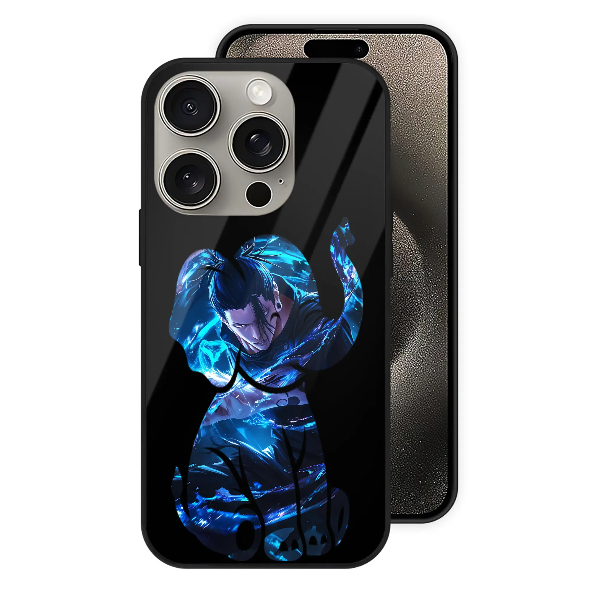 呪術廻戦 グッズ,夏油 傑 - IPhone15Pro対応 ・ スマホケース ・ 背面ガラス ・ TPU+強化ガラス ・ 耐衝撃 ・ 黄変防止 ・ ワイヤレス充電対応 ・ 3D立体ボタン