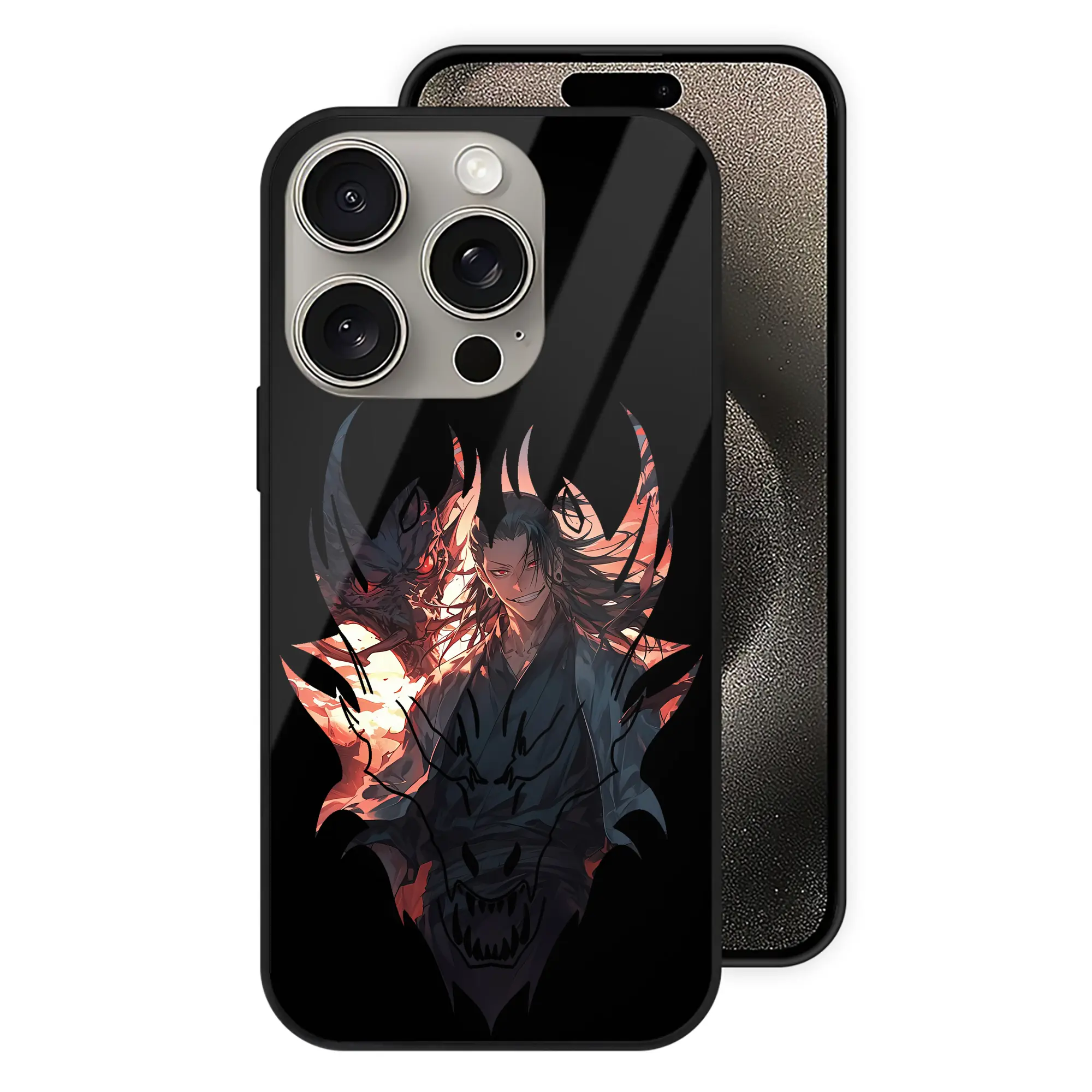 呪術廻戦 グッズ,夏油 傑 - IPhone15Pro対応 ・ スマホケース ・ 背面ガラス ・ TPU+強化ガラス ・ 耐衝撃 ・ 黄変防止 ・ ワイヤレス充電対応 ・ 3D立体ボタン