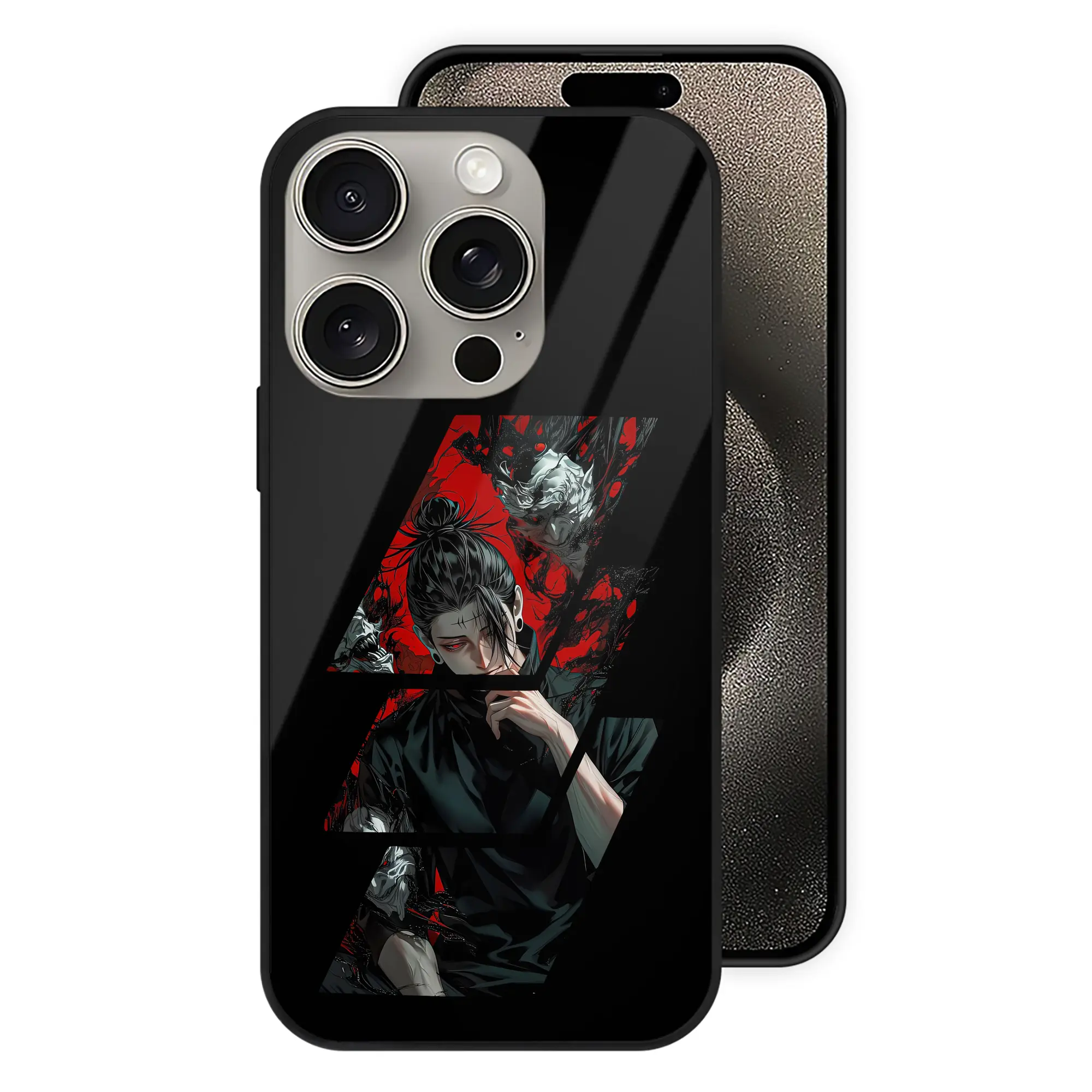 呪術廻戦 グッズ,夏油 傑 - IPhone15Pro対応 ・ スマホケース ・ 背面ガラス ・ TPU+強化ガラス ・ 耐衝撃 ・ 黄変防止 ・ ワイヤレス充電対応 ・ 3D立体ボタン