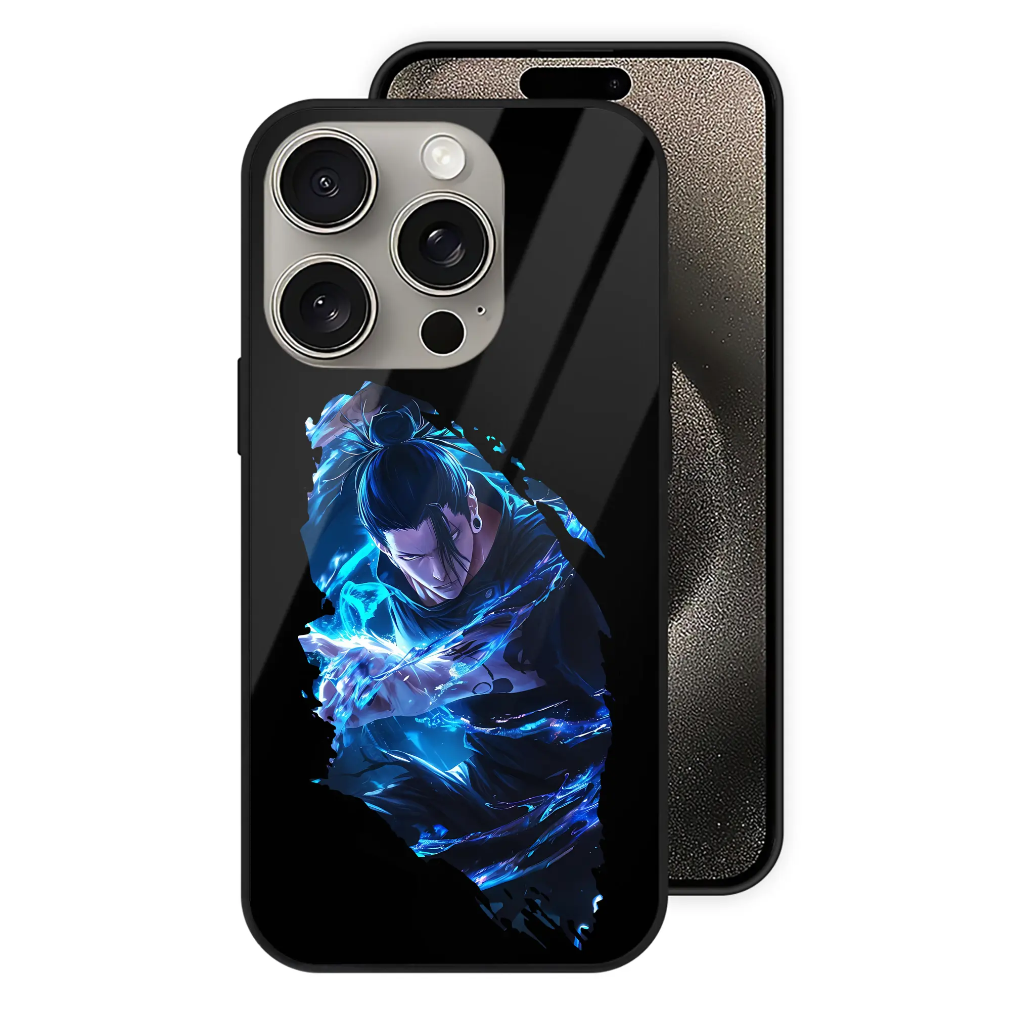 呪術廻戦 グッズ,夏油 傑 - IPhone15Pro対応 ・ スマホケース ・ 背面ガラス ・ TPU+強化ガラス ・ 耐衝撃 ・ 黄変防止 ・ ワイヤレス充電対応 ・ 3D立体ボタン