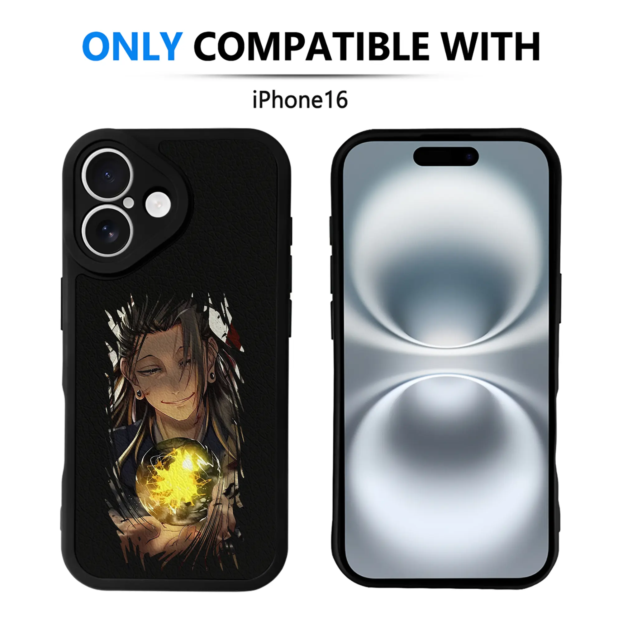 呪術廻戦 グッズ,夏油 傑 - IPhone 16シリーズ対応 ・ シリコンスマホケース ・ レザー調 ・ 高精度フィット ・ 耐衝撃 ・ ワイヤレス充電対応 ・ 精密カット