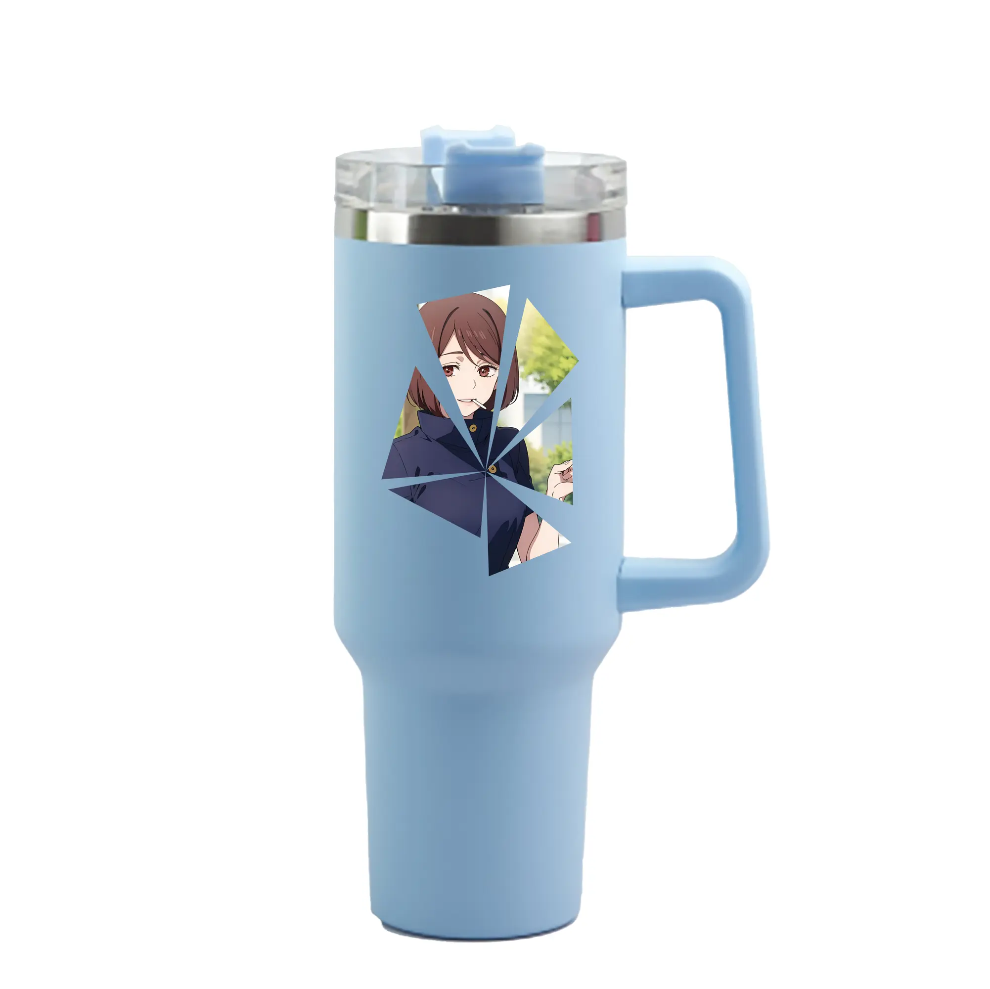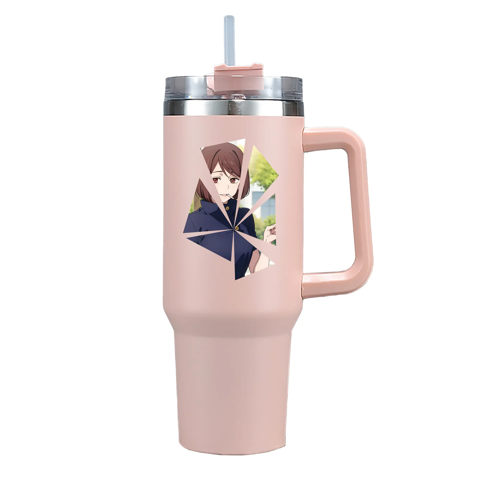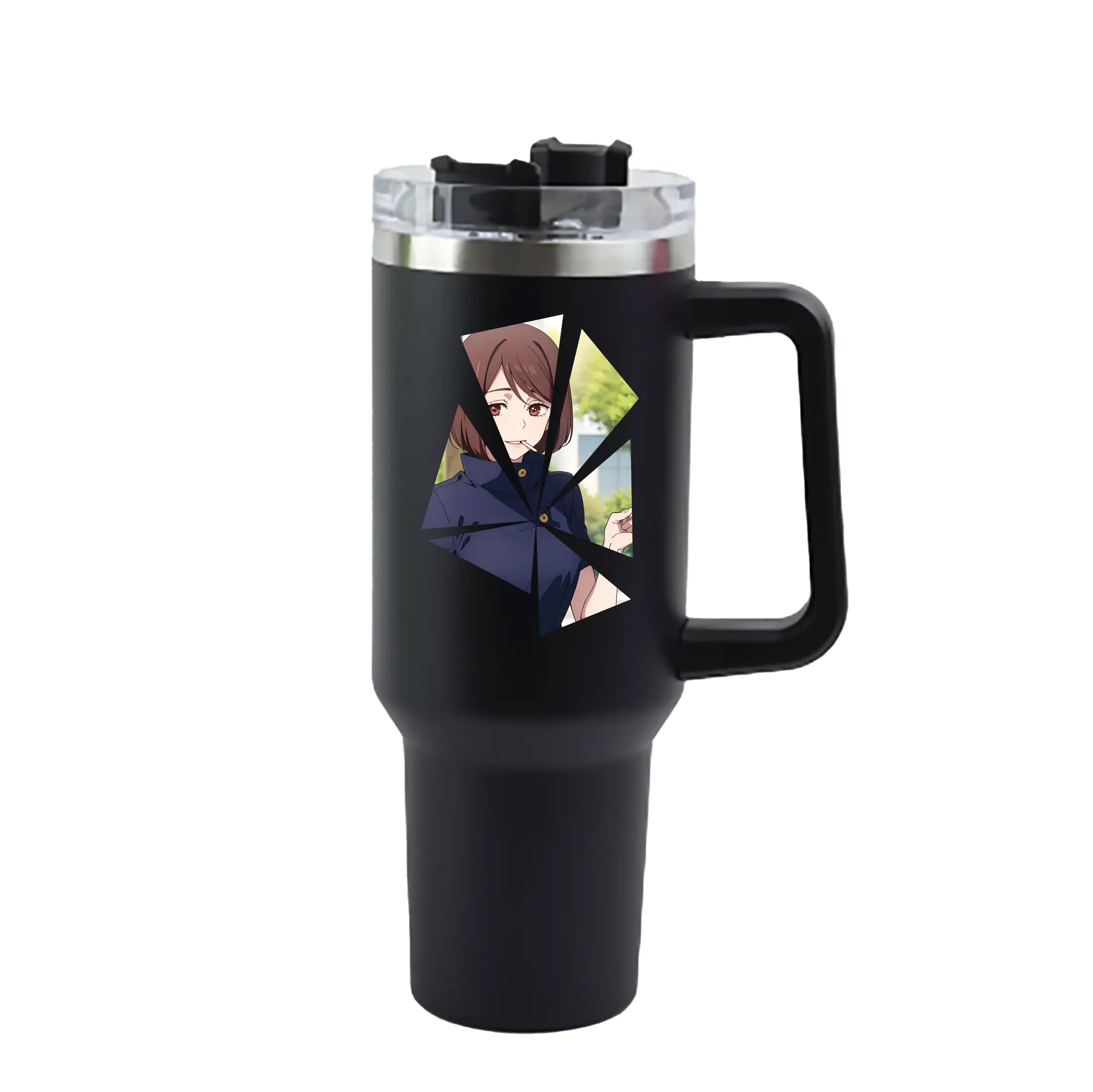 呪術廻戦 グッズ,家入 硝子 - 1200mL 車用タンブラー ・ クリスタルステッカー ・ 304ステンレス 内側 ・ 201ステンレス 外側 ・ 保温 保冷 ・ ハンドル&ストロー付き ・ 通勤 ドライブ アウトドア用