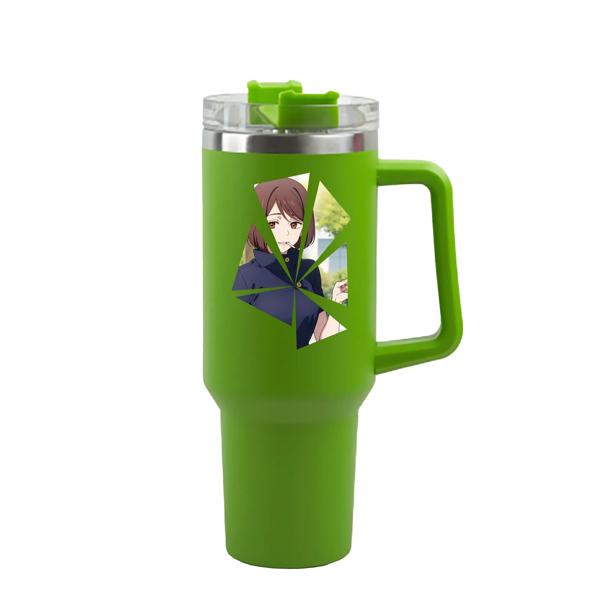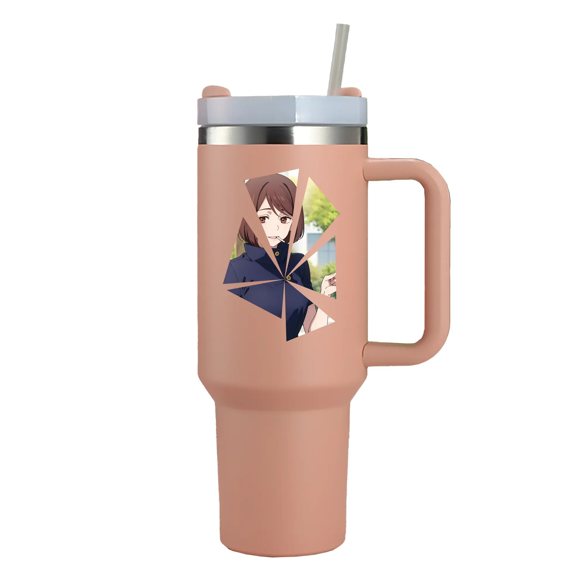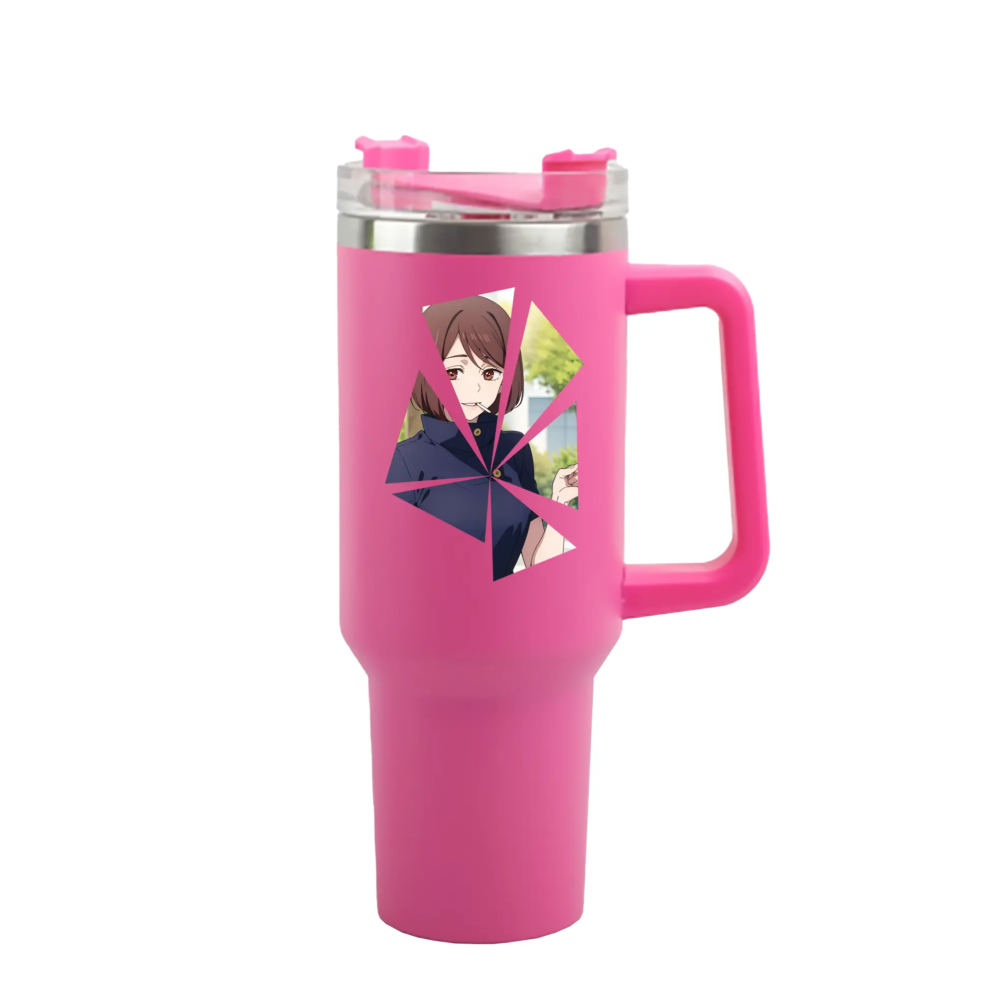 呪術廻戦 グッズ,家入 硝子 - 1200mL 車用タンブラー ・ クリスタルステッカー ・ 304ステンレス 内側 ・ 201ステンレス 外側 ・ 保温 保冷 ・ ハンドル&ストロー付き ・ 通勤 ドライブ アウトドア用