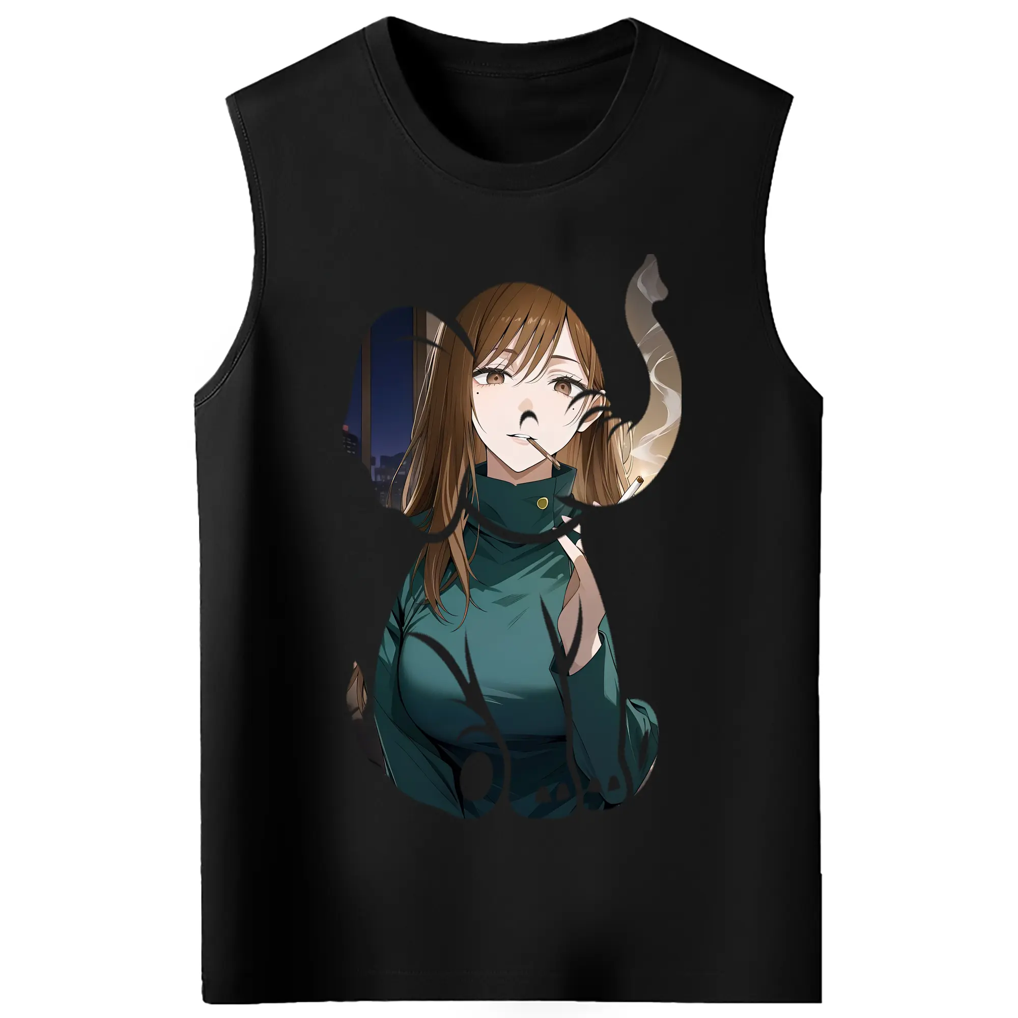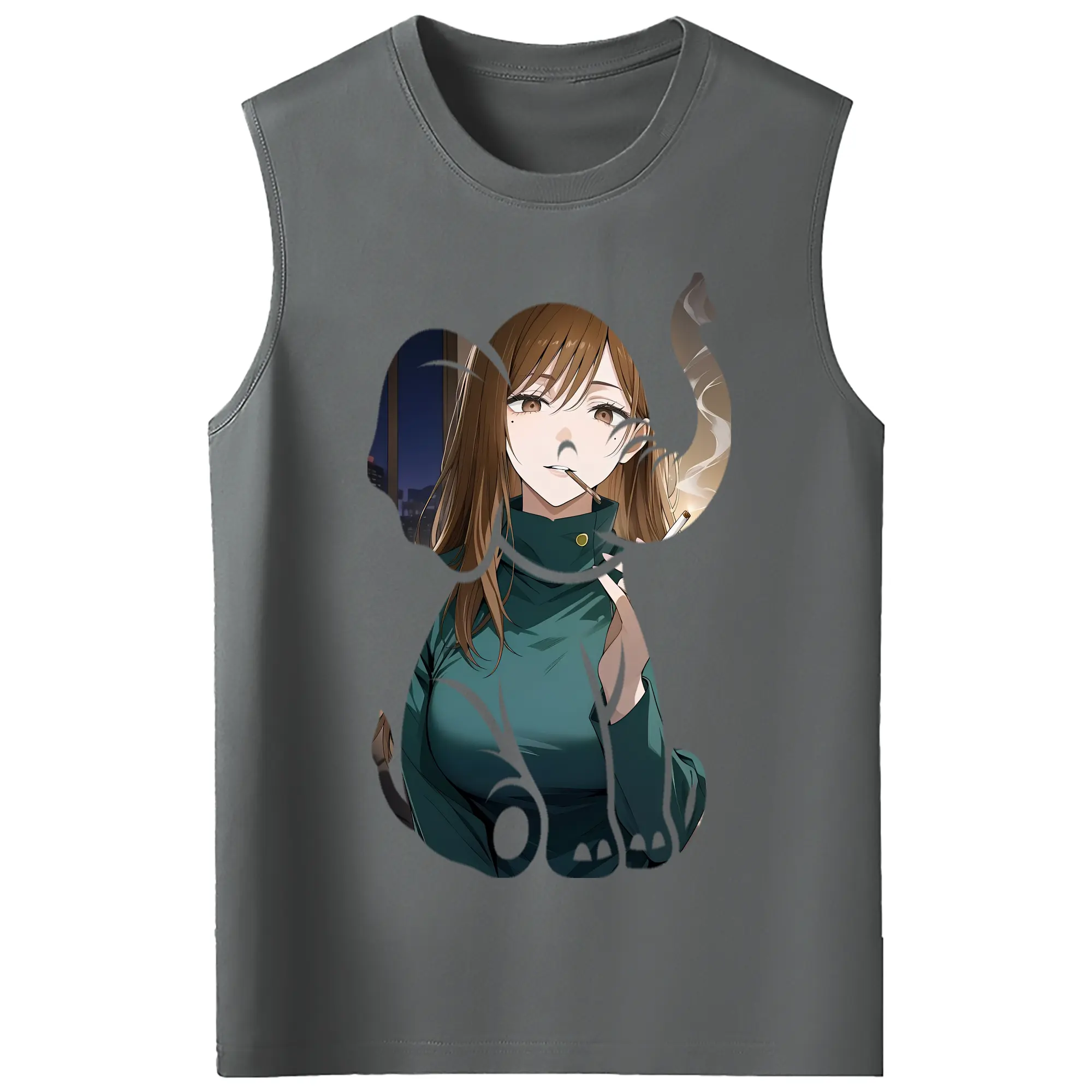 呪術廻戦 グッズ,家入 硝子 - コットン100% タンクトップ ・ フロントプリント ・ タイトフィット ・ 快適 通気性 ・ スポーツ カジュアル 散歩用