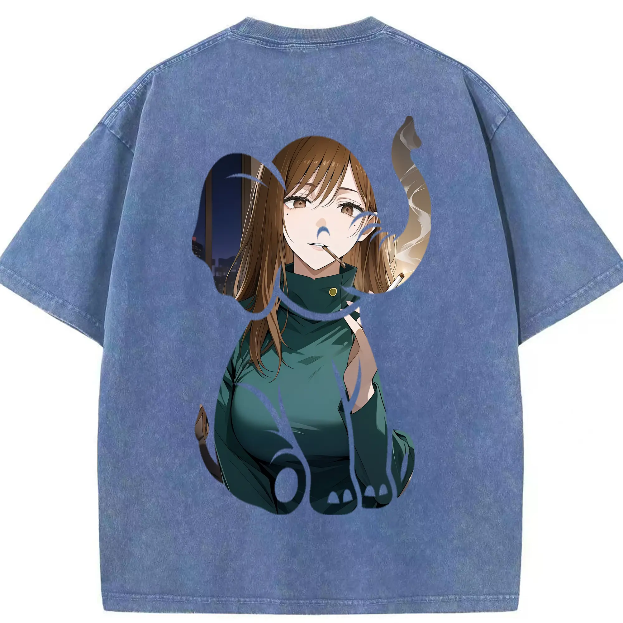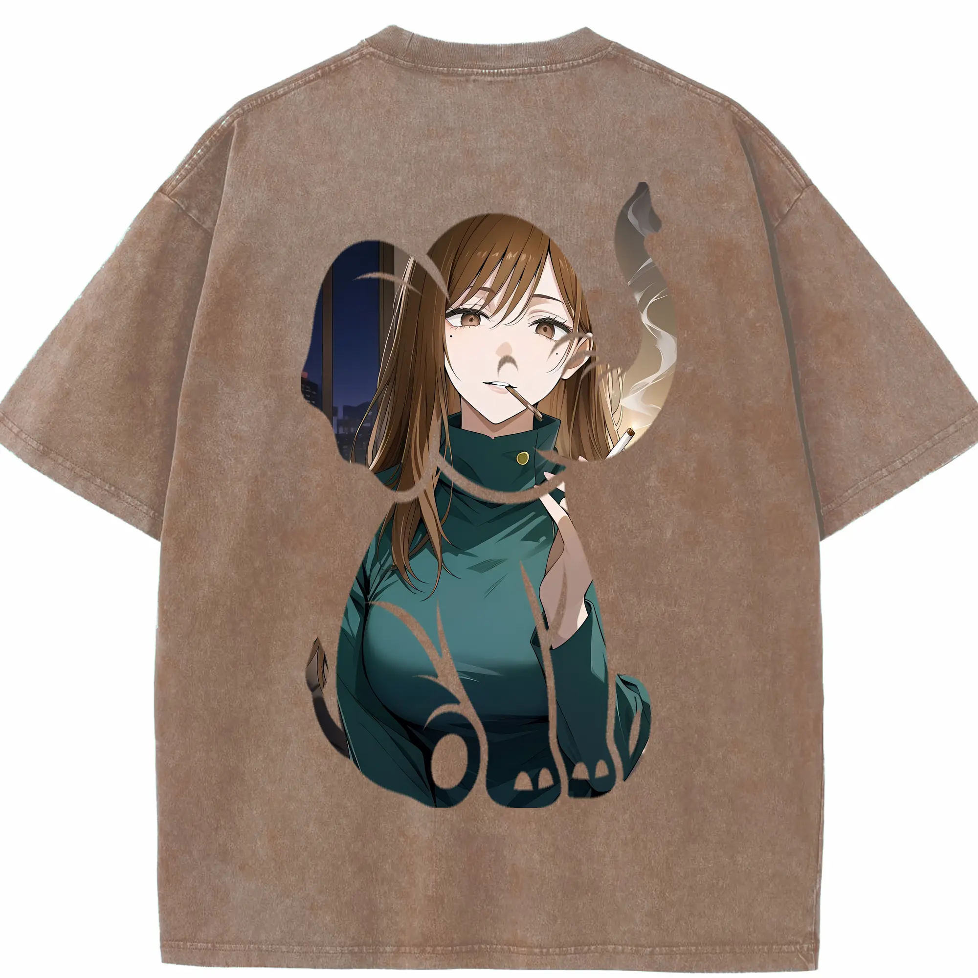 鳴潮 グッズ アンコ - 綿100% ヴィンテージ風 半袖Tシャツ ・ 背面プリント ・ 柔らか肌触り ・ 通気性 快適 ・ スポーツ カジュアル 外出用
