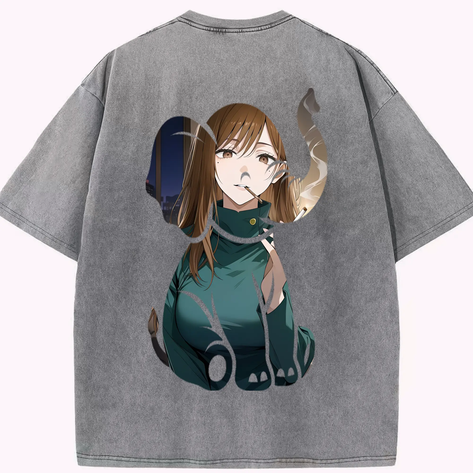 呪術廻戦 グッズ,家入 硝子 - 綿100% 半袖Tシャツ ・ バックプリント ・ 快適 通気性 ・ 日常使い 散歩 スポーツ用