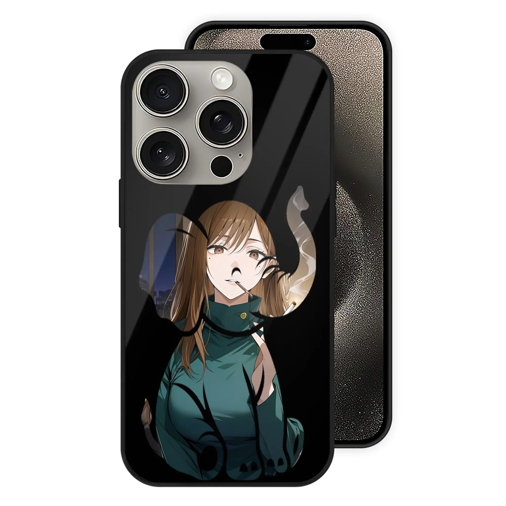 呪術廻戦 グッズ,家入 硝子 - IPhone15Pro対応 ・ スマホケース ・ 背面ガラス ・ TPU+強化ガラス ・ 耐衝撃 ・ 黄変防止 ・ ワイヤレス充電対応 ・ 3D立体ボタン