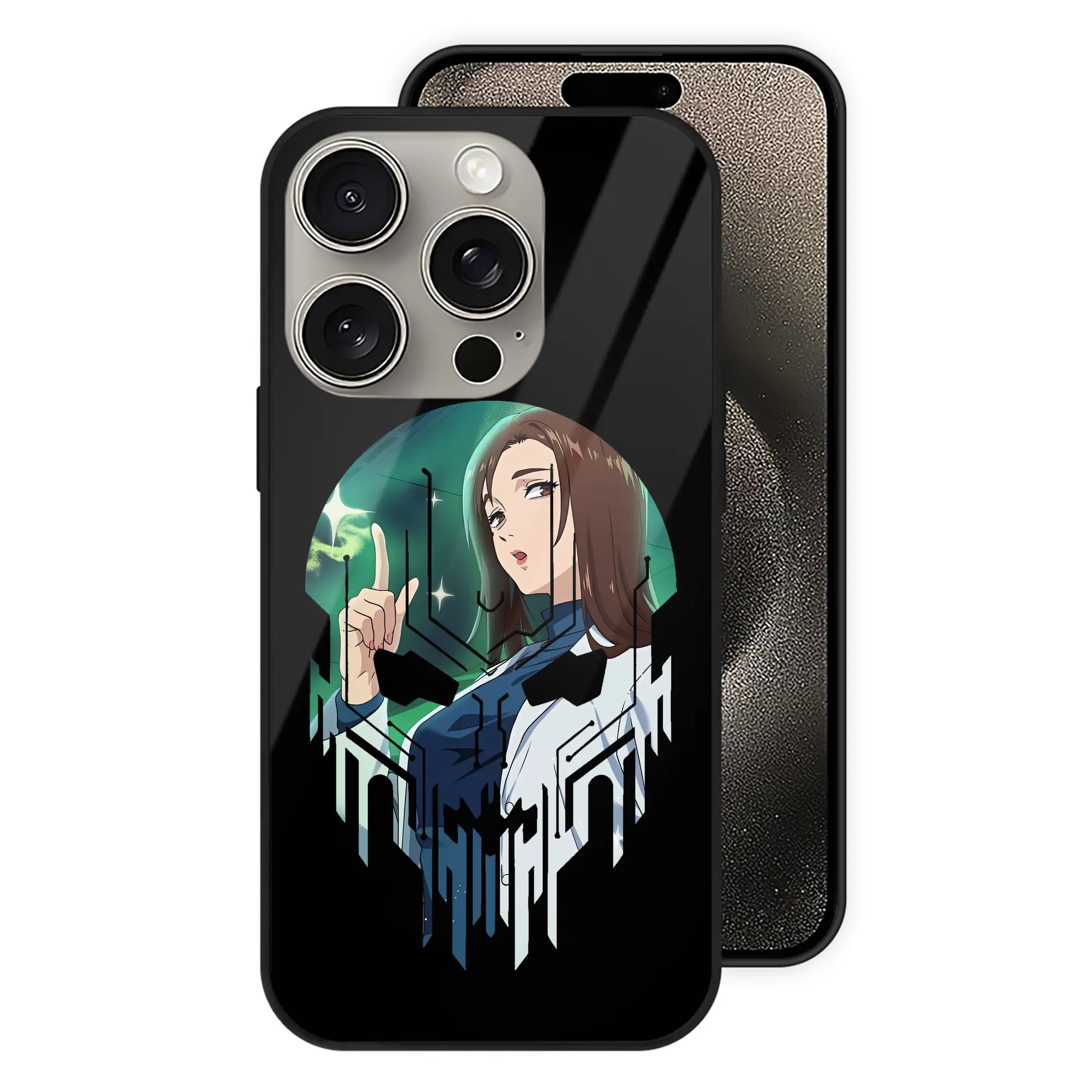 呪術廻戦 グッズ,家入 硝子 - IPhone15Pro対応 ・ スマホケース ・ 背面ガラス ・ TPU+強化ガラス ・ 耐衝撃 ・ 黄変防止 ・ ワイヤレス充電対応 ・ 3D立体ボタン