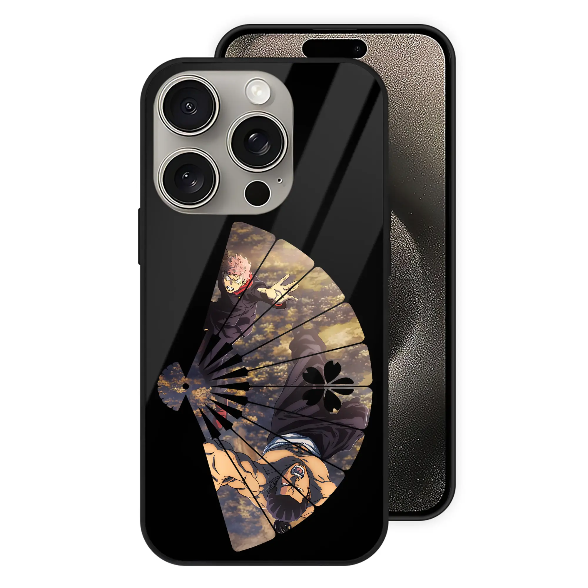 呪術廻戦 グッズ,東堂 葵 - IPhone15Pro対応 ・ スマホケース ・ 背面ガラス ・ TPU+強化ガラス ・ 耐衝撃 ・ 黄変防止 ・ ワイヤレス充電対応 ・ 3D立体ボタン