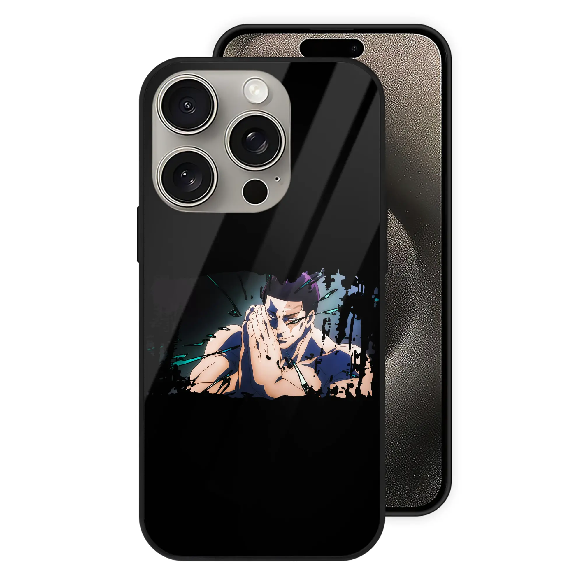 呪術廻戦 グッズ,東堂 葵 - IPhone15Pro対応 ・ スマホケース ・ 背面ガラス ・ TPU+強化ガラス ・ 耐衝撃 ・ 黄変防止 ・ ワイヤレス充電対応 ・ 3D立体ボタン