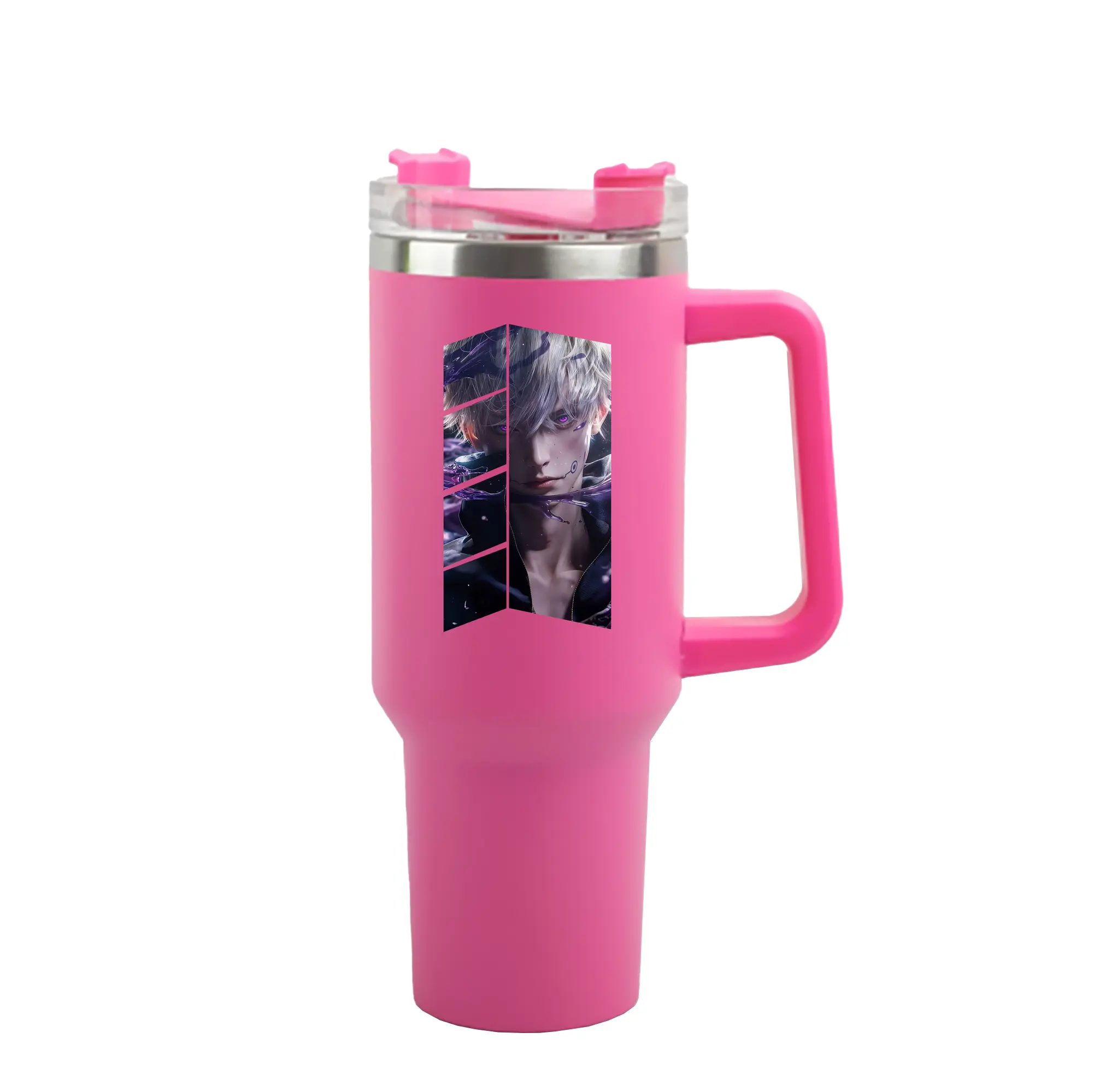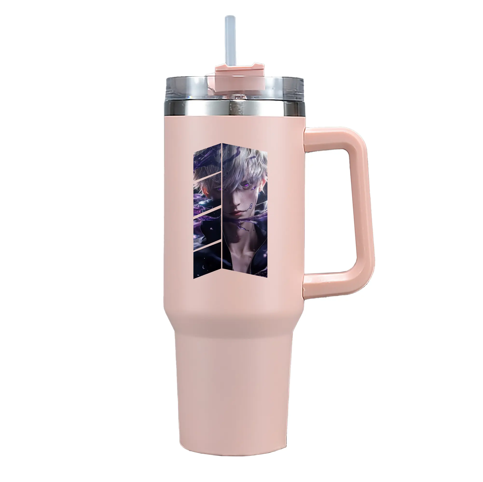 呪術廻戦 グッズ,狗巻 棘 - 1200mL 車用タンブラー ・ クリスタルステッカー ・ 304ステンレス 内側 ・ 201ステンレス 外側 ・ 保温 保冷 ・ ハンドル&ストロー付き ・ 通勤 ドライブ アウトドア用