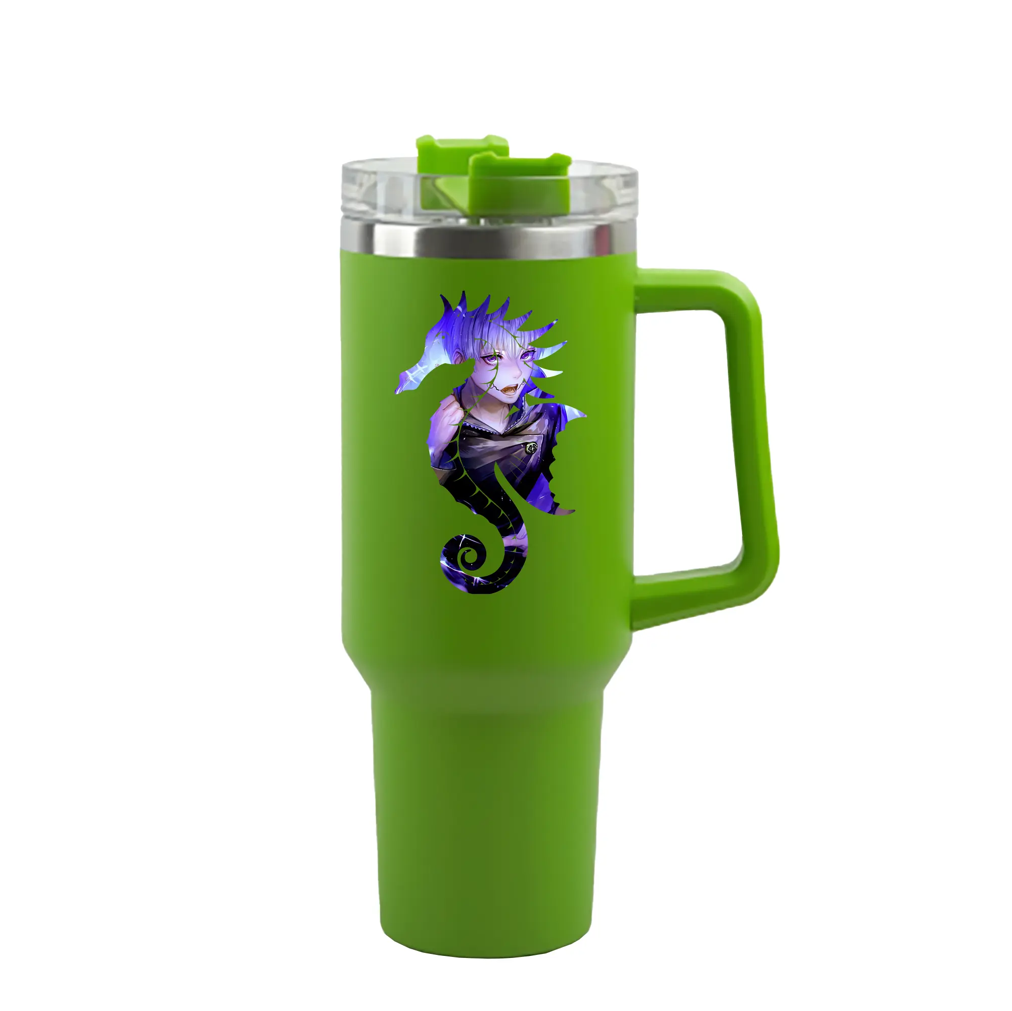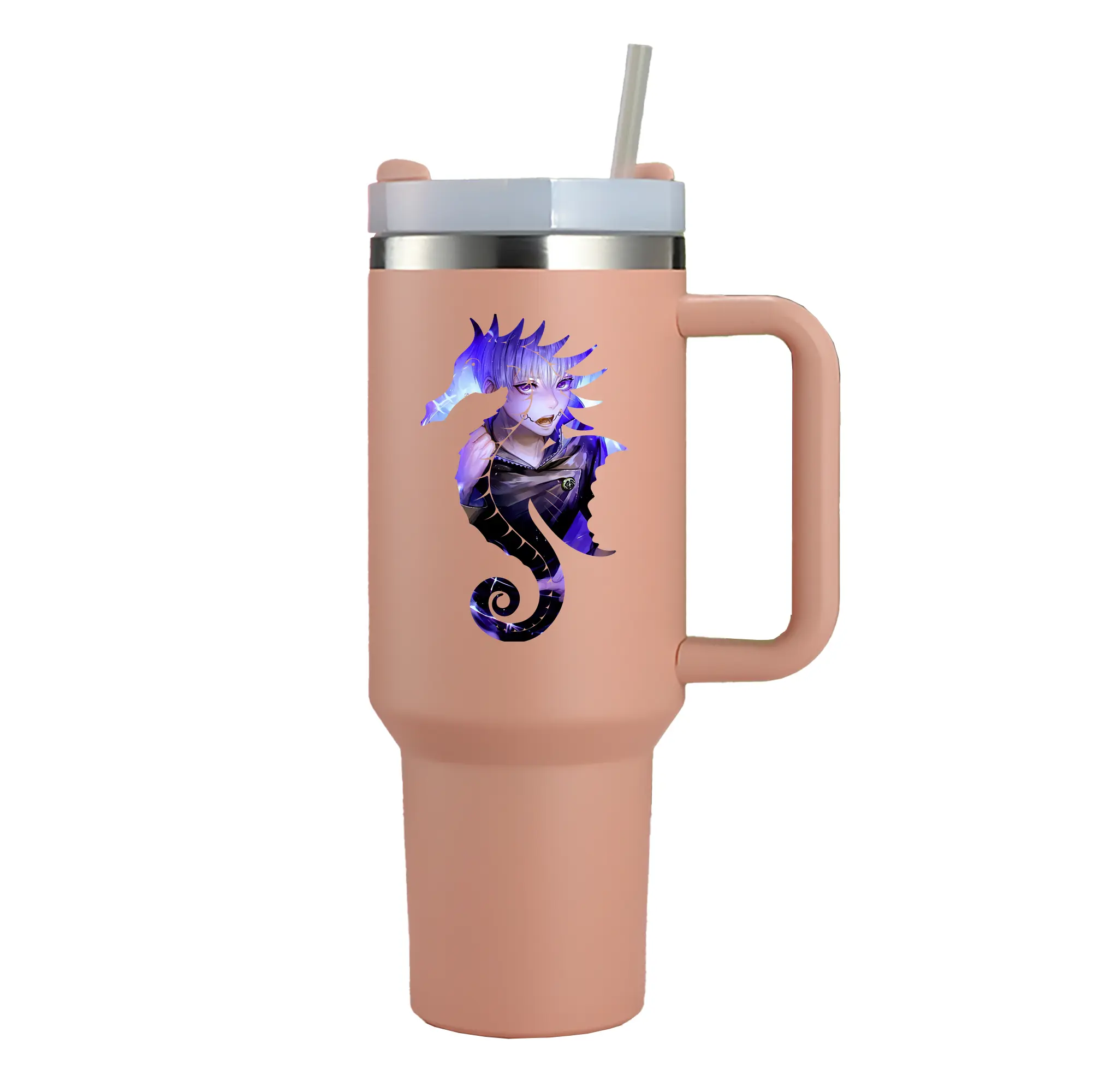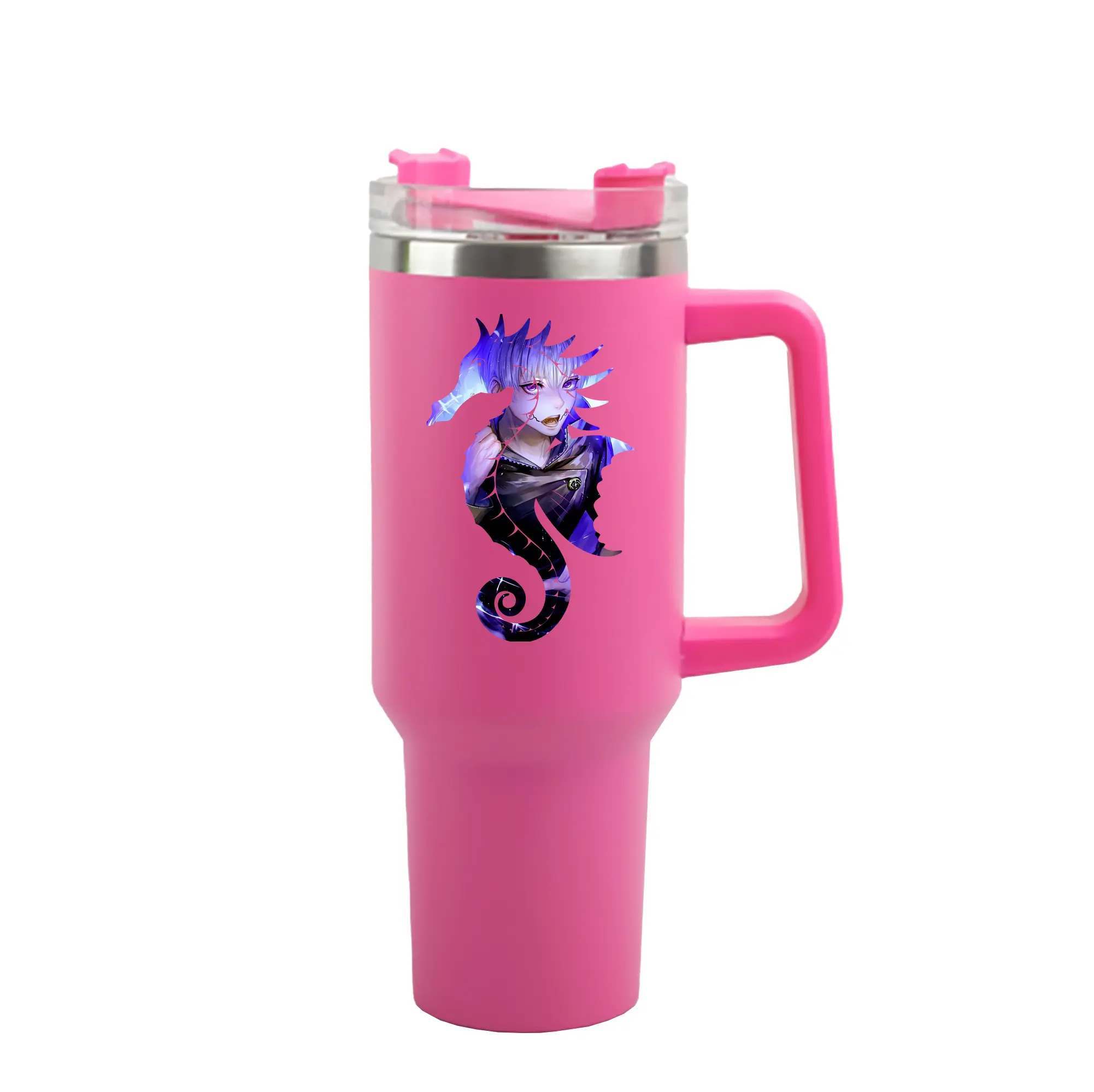 1200mL(40オンス)の大容量ハンドル付きカータンブラー。キラキラと輝くクリスタルステッカーデザインが、毎日の使用に華やかさをプラスします。食品グレード304ステンレスの内側と頑丈な201ステンレスの外側を採用し、耐久性・耐腐食性・安全性を兼ね備えています。