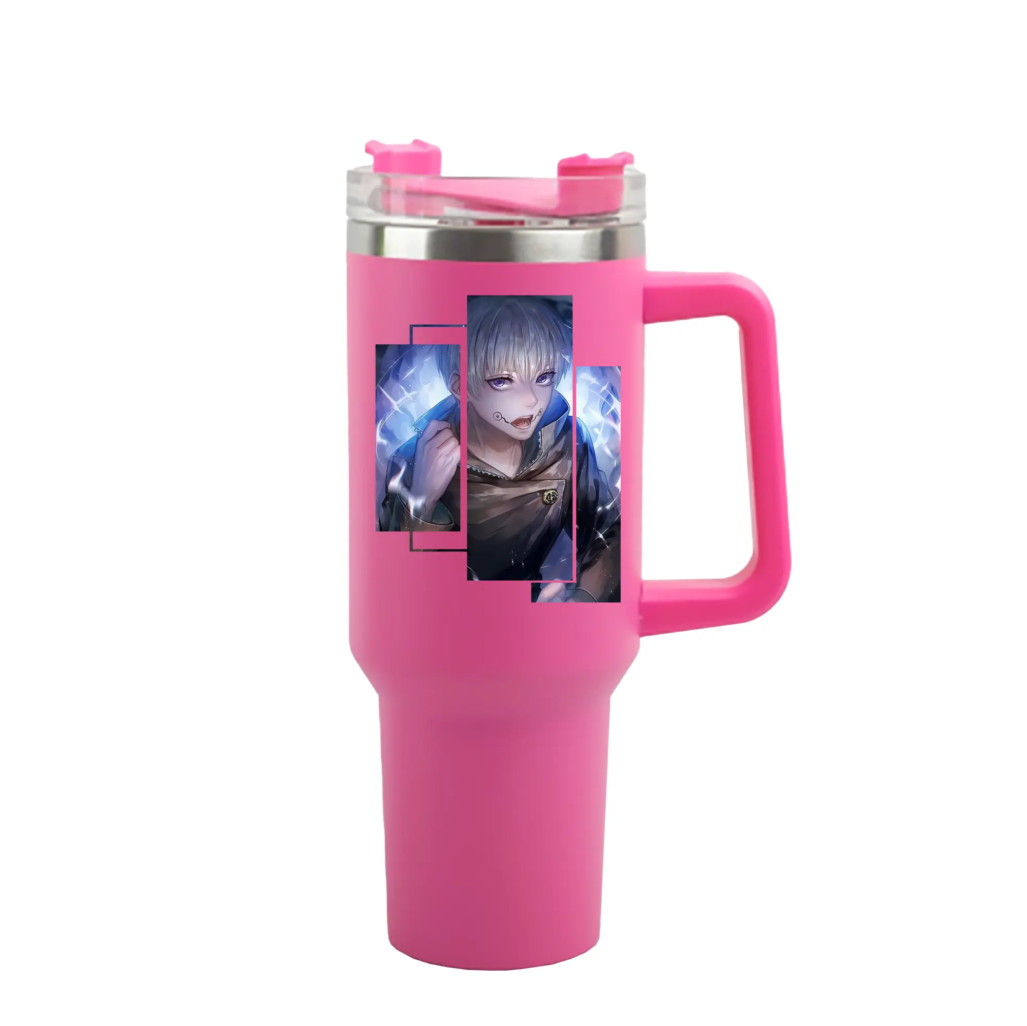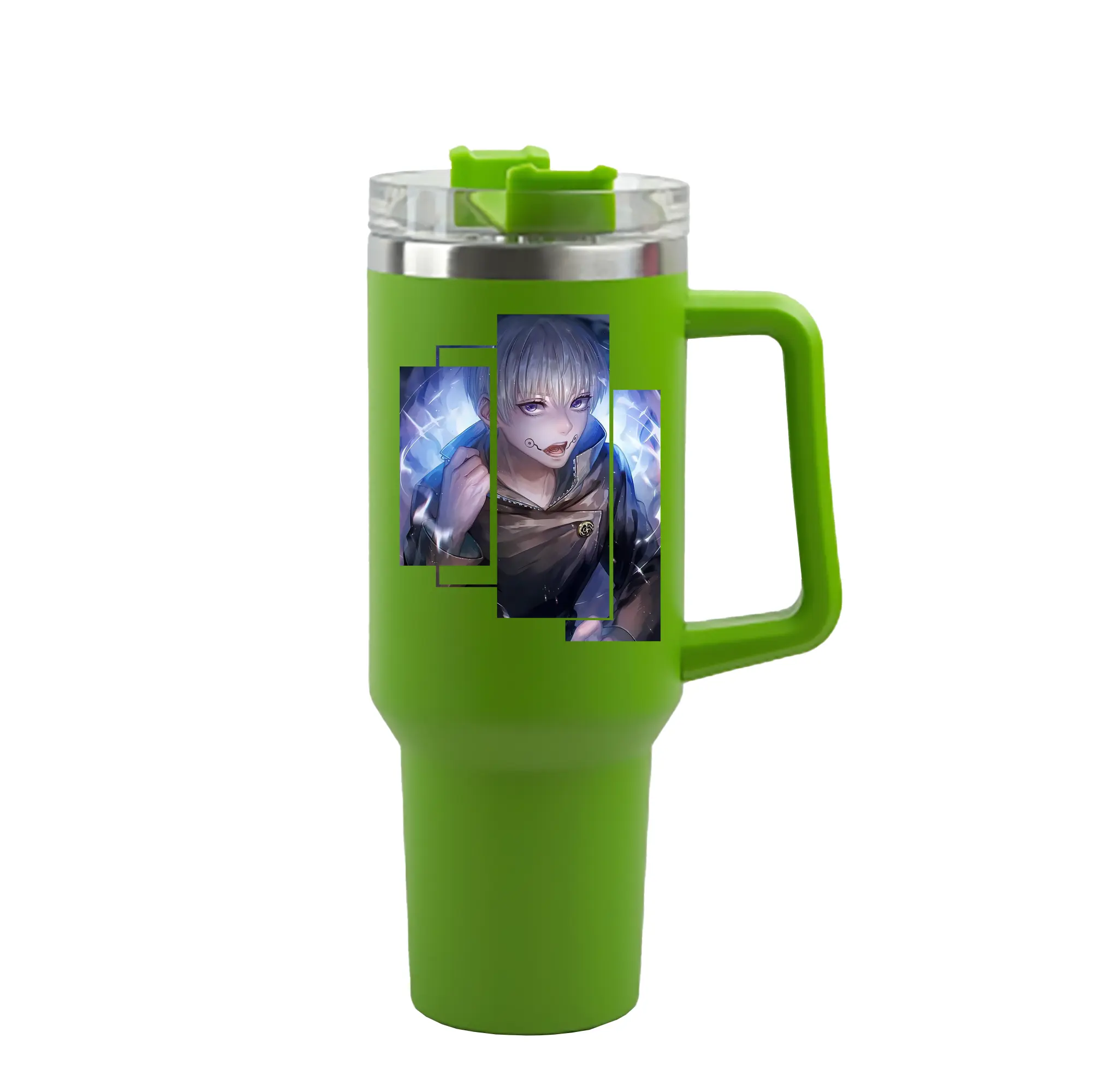 呪術廻戦 グッズ,狗巻 棘 - 1200mL 車用タンブラー ・ クリスタルステッカー ・ 304ステンレス 内側 ・ 201ステンレス 外側 ・ 保温 保冷 ・ ハンドル&ストロー付き ・ 通勤 ドライブ アウトドア用